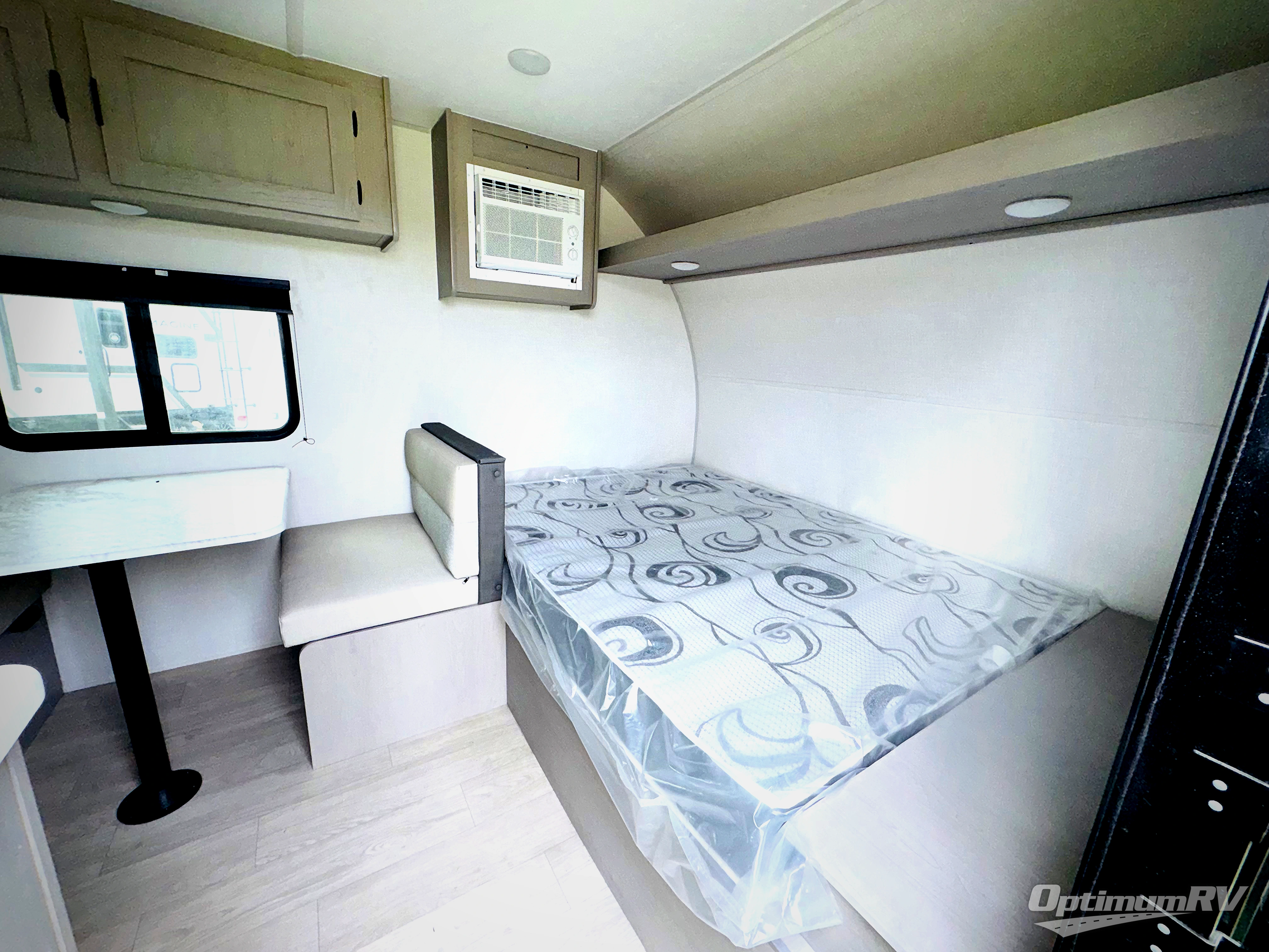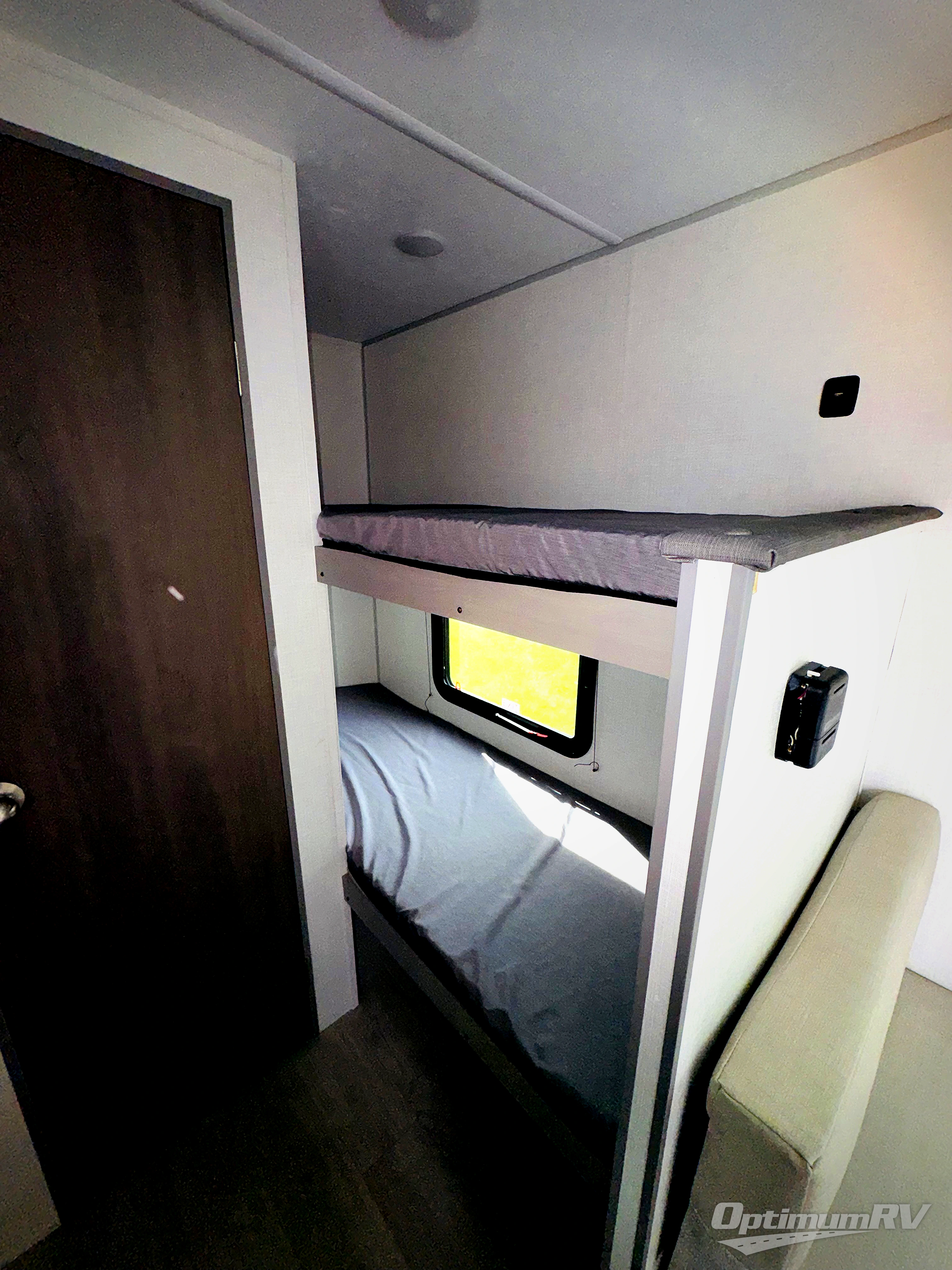 This is the perfect travel trailer for a family of four or five since it includes bunk beds for the kids, and a queen bed up front as well as a booth dinette that can be converted to sleep one more. There is an induction cooktop to cook meals on, and a sink to easily clean up each day. You can dine at the booth dinette or take your plate outdoors to sit under the 10' power awning with LED lighting. This model also includes a 24" x 36" shower to get cleaned up each day. Get an early start on family vacations with this travel trailer in tow!