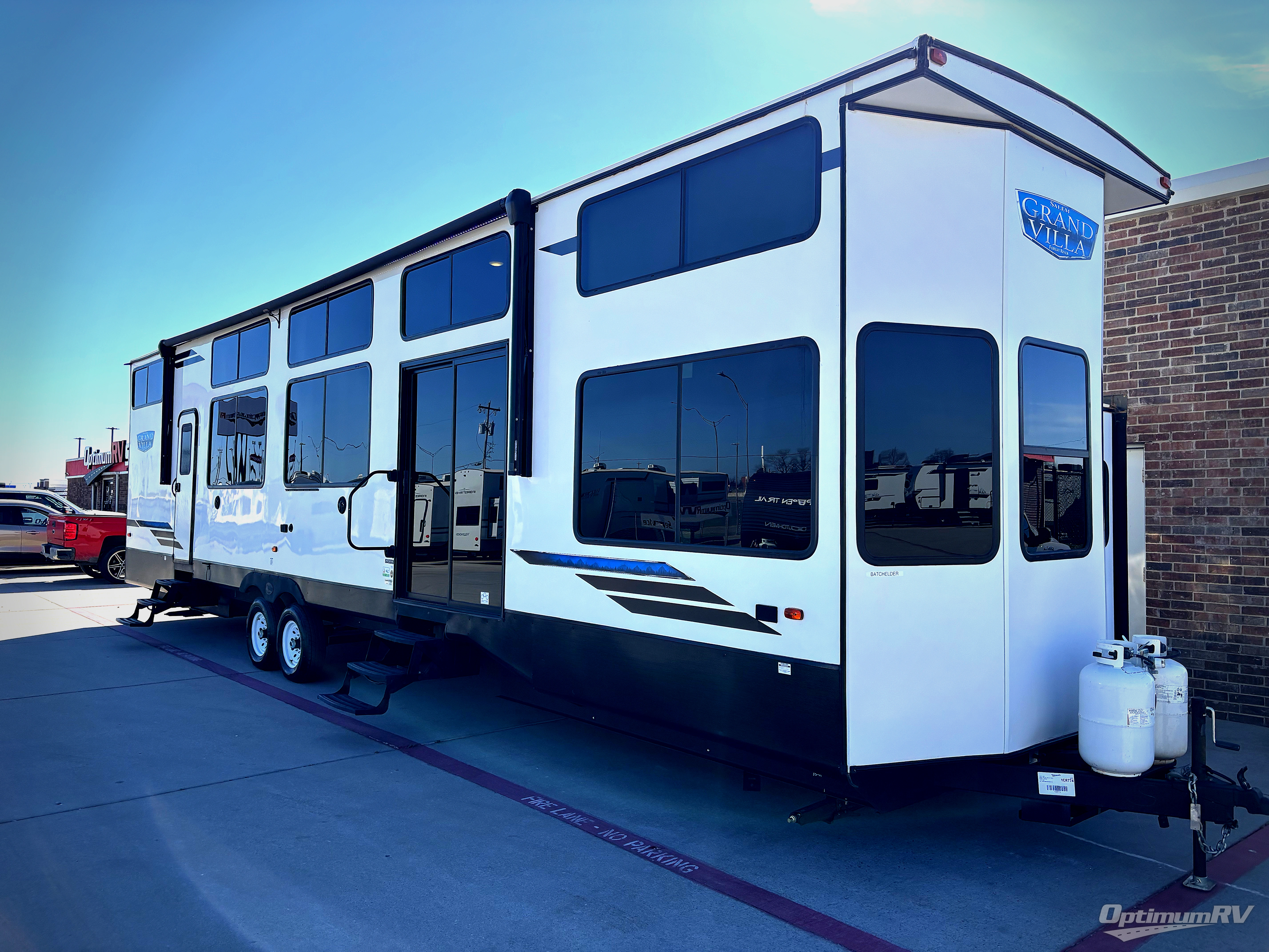 You will experience a home away from home with any one of these Forest River Salem Grand Villa destination trailers! Their construction consists of a 12" forged I-beam frame, a cambered chassis, and plywood floor decking, as well as 5" bowed truss roof rafters, 3/8" roof decking, and color coded water lines to make life easier. The one-piece, seamless slides and 106" interior living room height makes for more walking around space. A Best in Class Value package includes upgraded designer furniture, a central vacuum with sweep attachment, and stainless steel kitchen appliances to keep your bellies full. Plus, it has a heated and enclosed Accesssi-Belly with removable panels and an exterior LED light strip under the awning. Come choose your favorite model today!