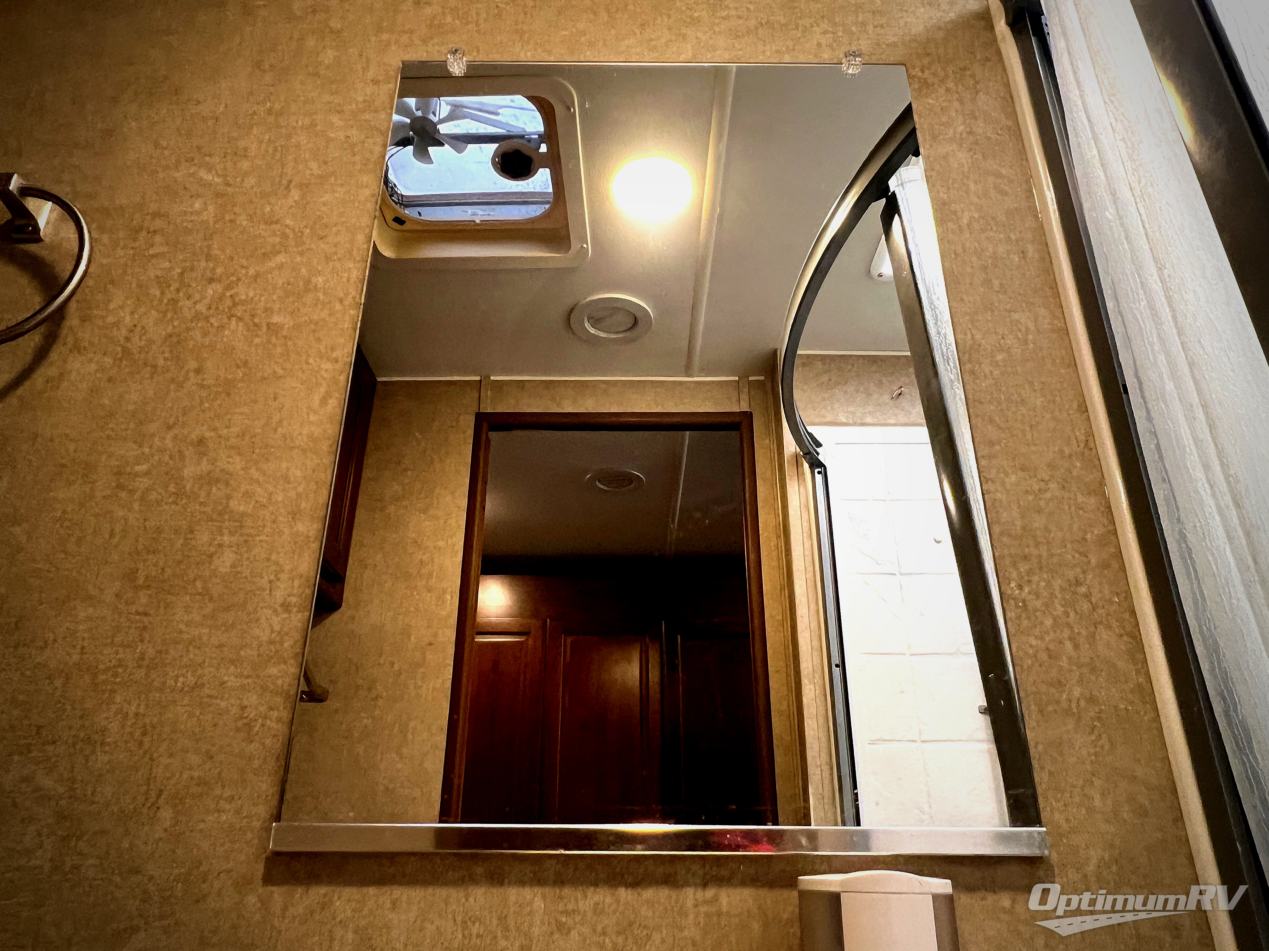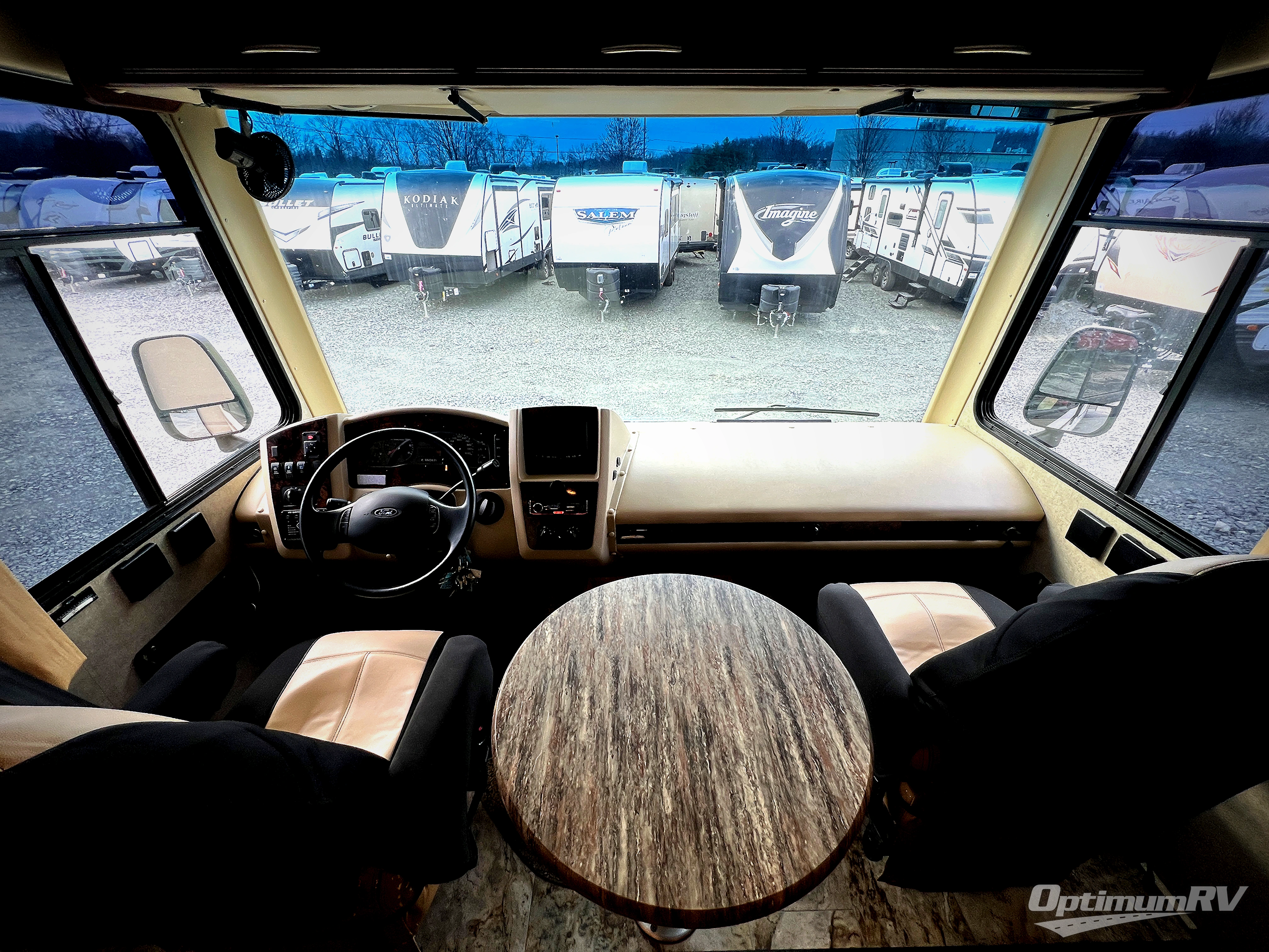 Step inside model 33BH and see just how convenient this motor home is. To the right of the entrance there is a booth dinette with overhead storage. There is a 47" x 81" electric drop down bunk above the cab area for more sleeping space if you need it at night. You will also find a cockpit table and computer workstation.