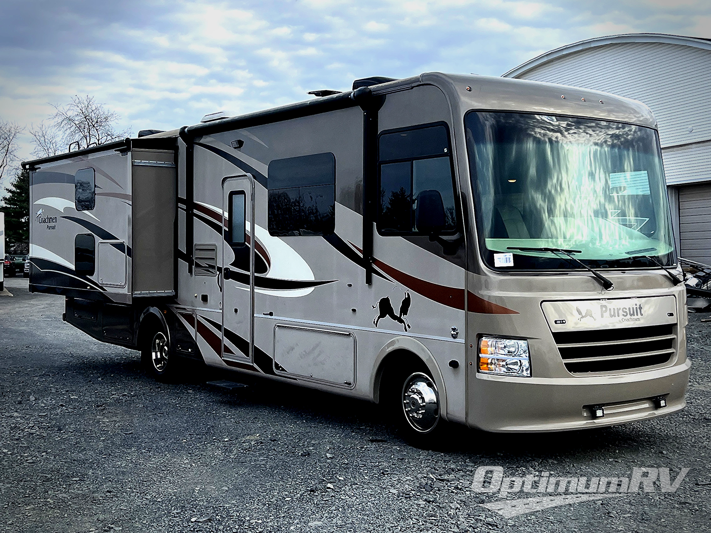 This class A Pursuit by Coachmen RV features two large slide outs for added interior space, a set of bunk beds for the kids, plus all the amenities you might need to enjoy traveling.