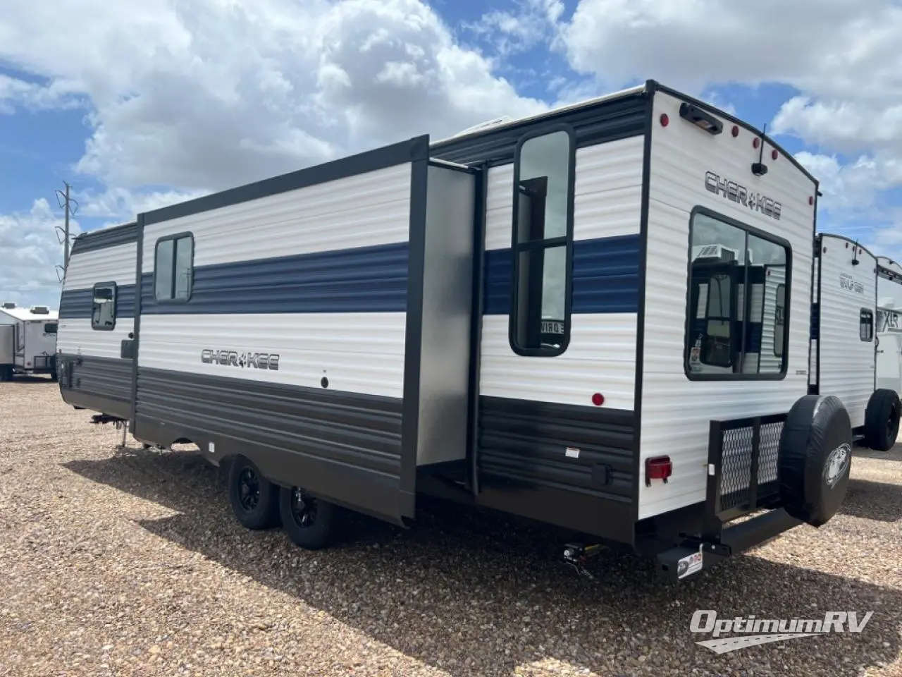 If the open road is calling your name, then answer it with one of these Forest River Cherokee travel trailers or toy haulers! A seamless roofing membrane with heat reflectivity covers these units and an armored underbelly tank enclosure protects it from road debris. The Power Gear frame technology holds them together and also comes with a space saver rail design. An outside shower with hot and cold water helps to keep the dirt outside where it belongs. With the Campfire package, you will get an air fryer/convection microwave oven, an on demand tankless water heater, bedroom cabinets, and more convenient features. A few other features you will appreciate include a super kitchen, USB charging station, and light filtering sheer shading premium blackout zebra shades for added privacy. Come find your favorite model today!