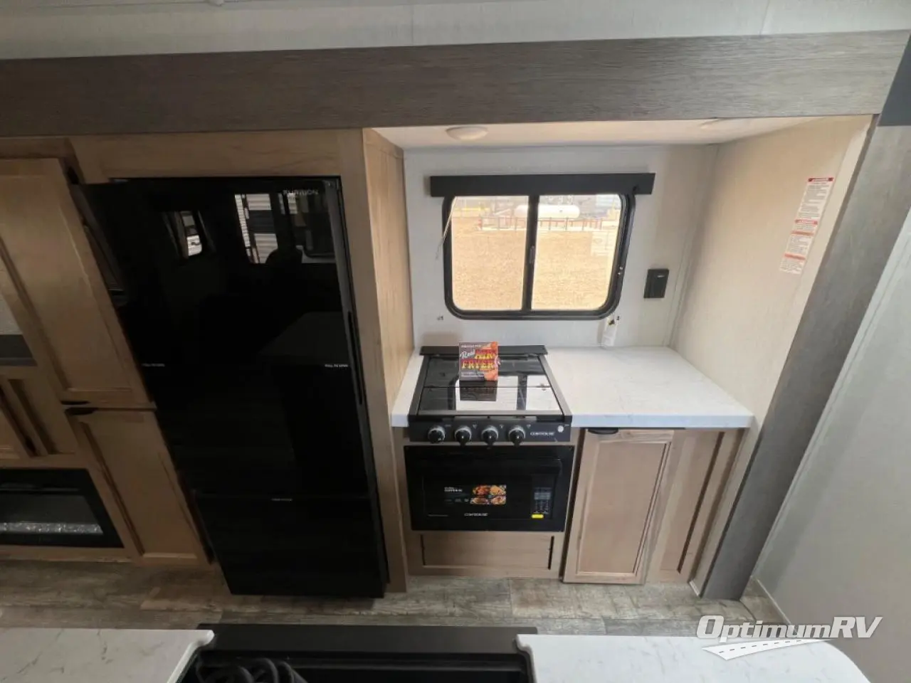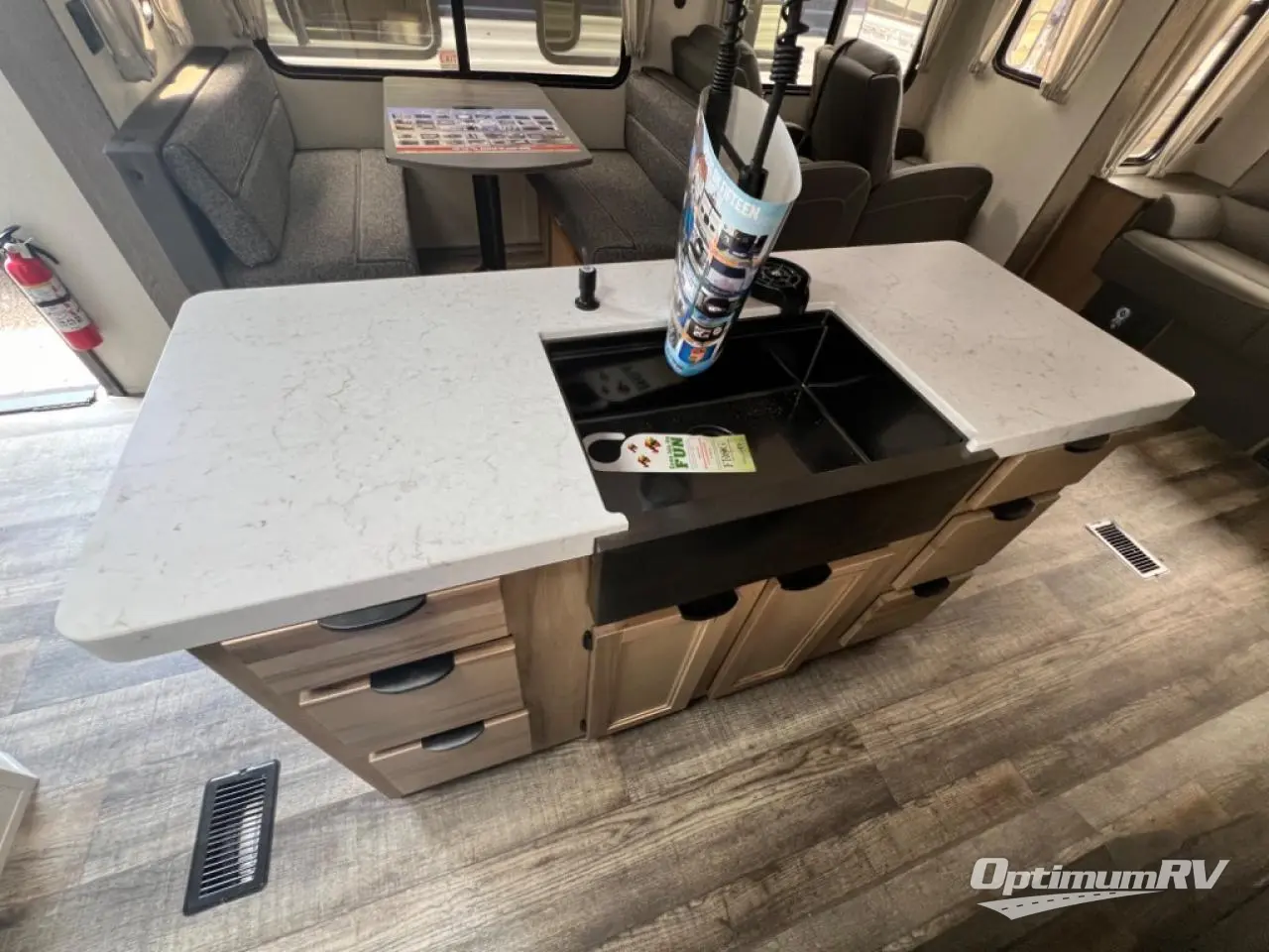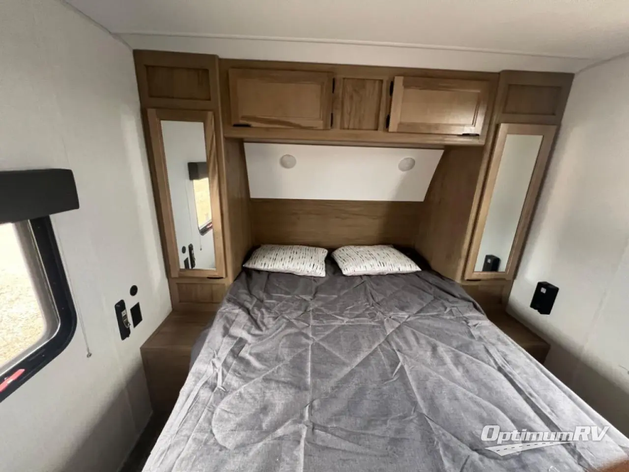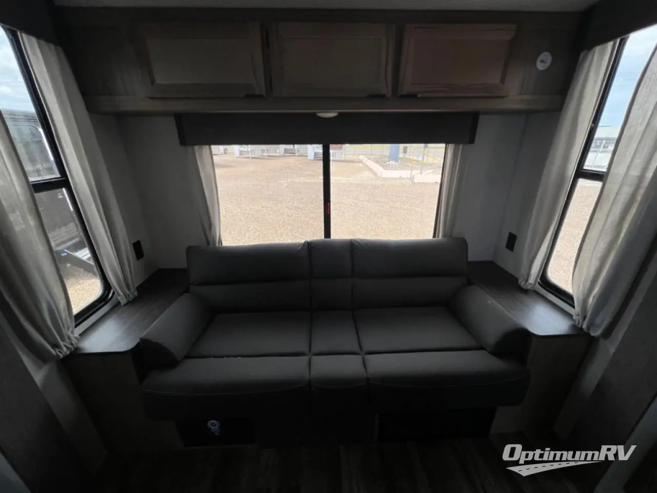 With two large slides opposing each other, you will have plenty of interior space in this travel trailer! The rear living area has a sofa with end tables to set your drink on and two recliner chairs across from the fireplace with a TV mount above it. Meal prepping will be easier with the kitchen island and you can enjoy your meals at the booth dinette then play a card game or two. The front private bedroom has a walk around queen bed to lay your head on at night with wardrobes on either side to hang your clothes and an entrance into the dual entry bathroom which has a neo-angled shower to freshen up in each morning!