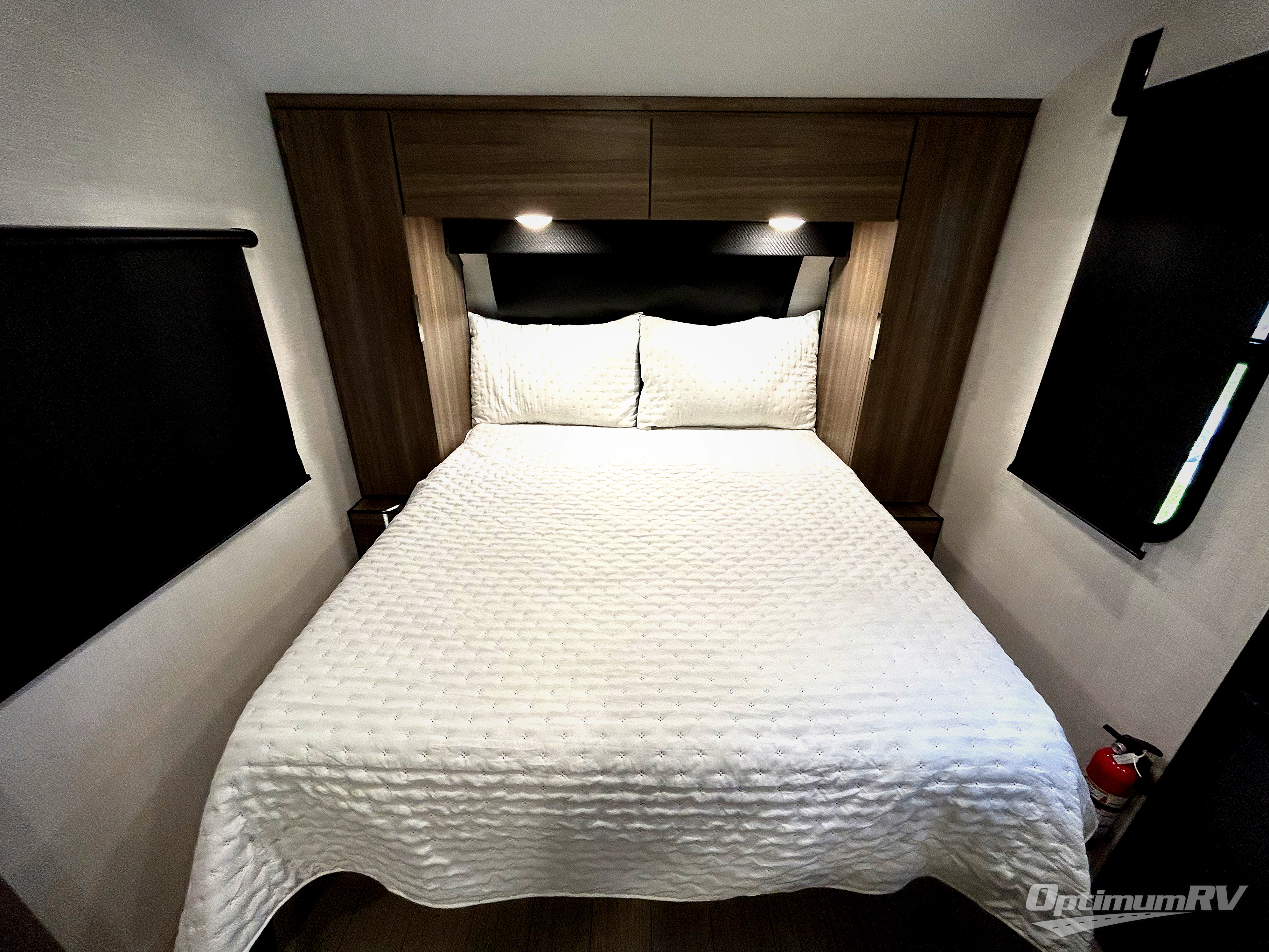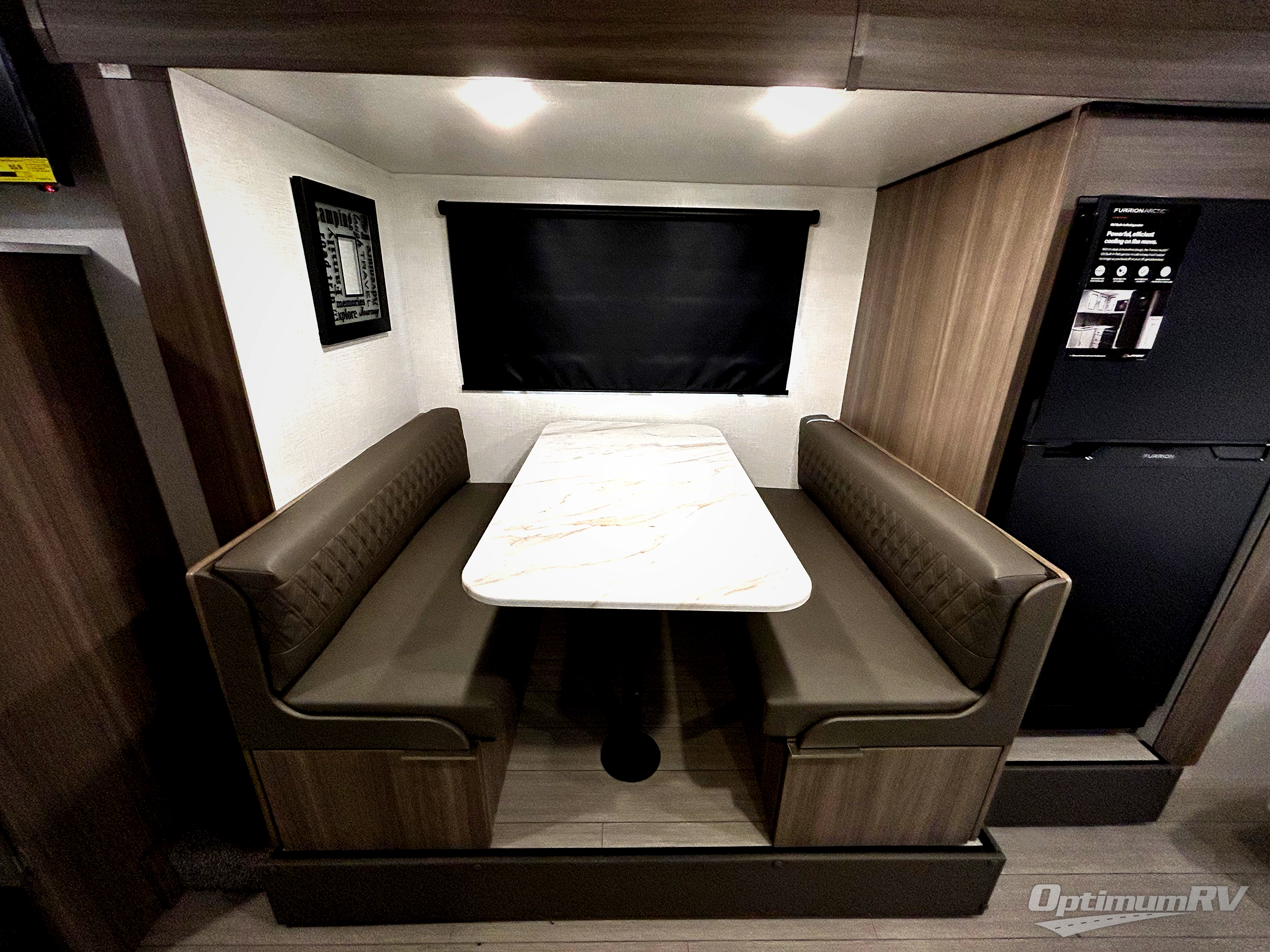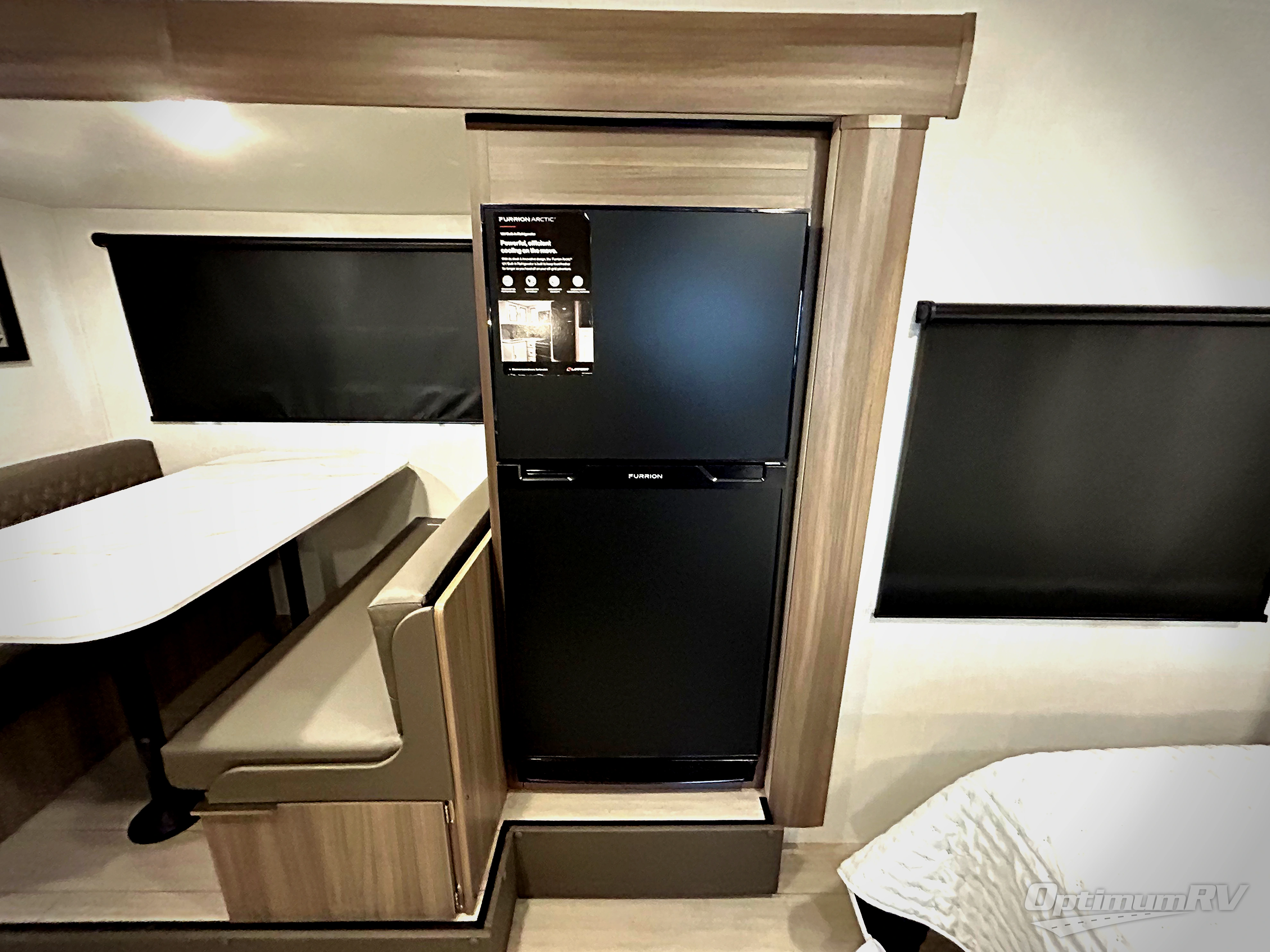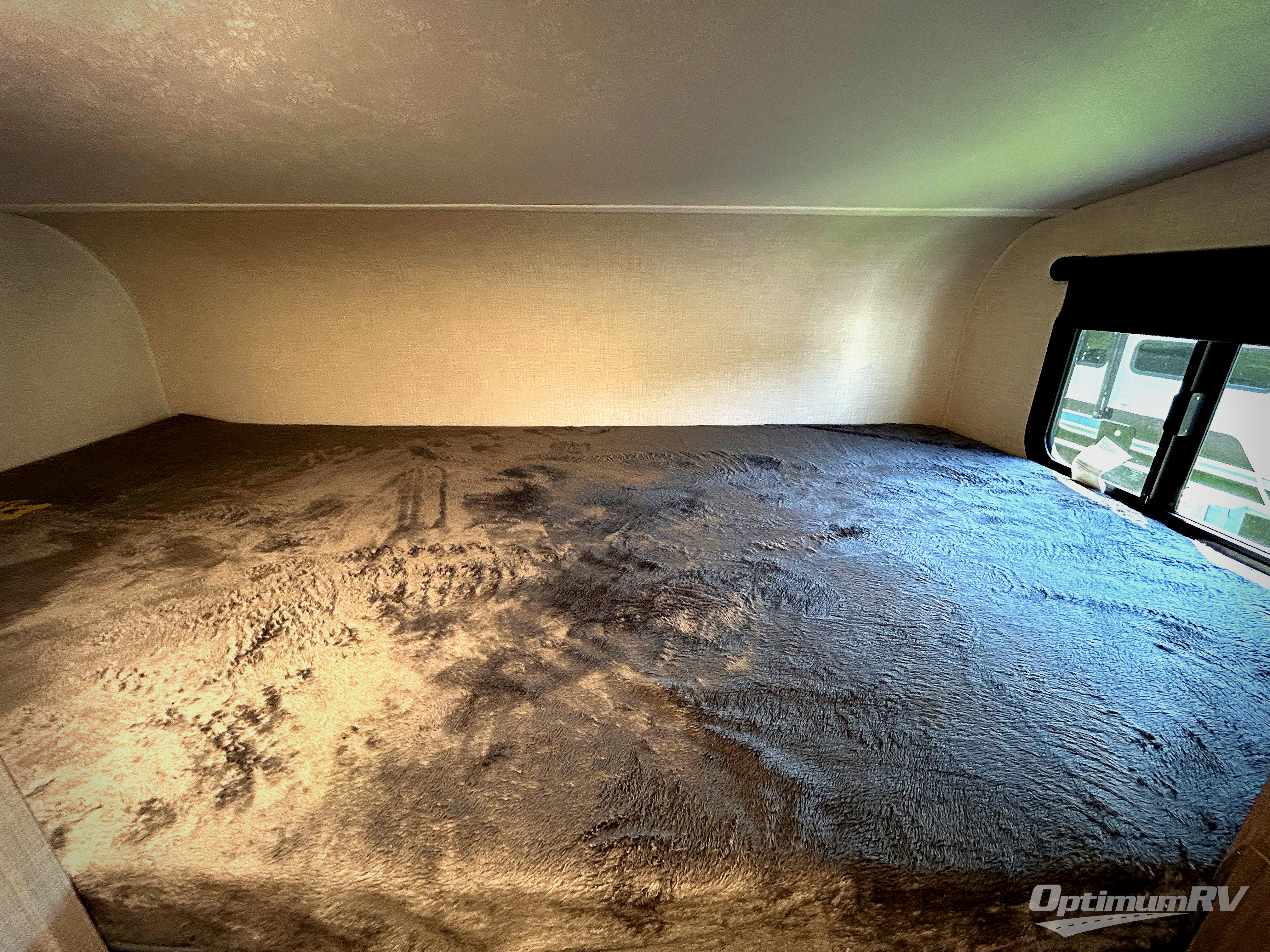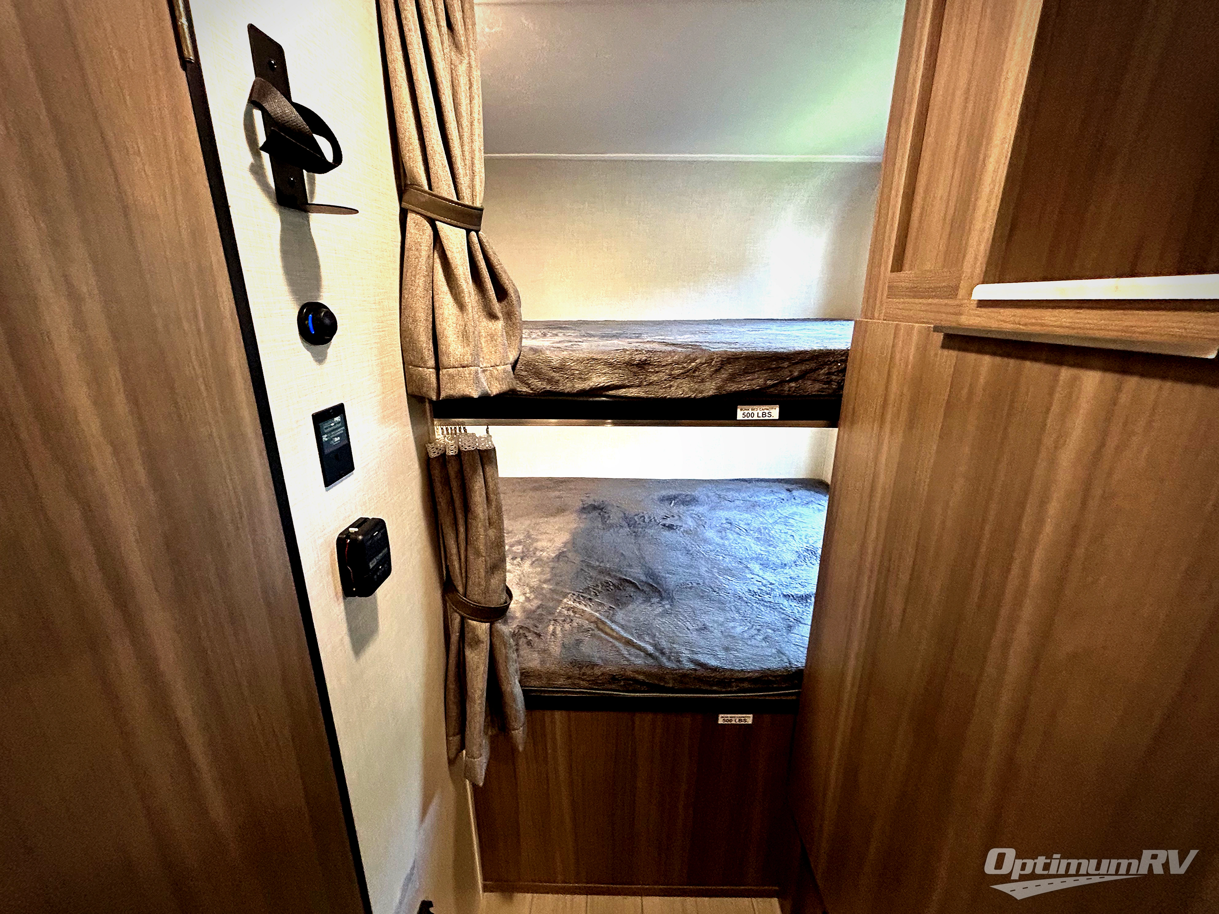 You and your larger group of eight can sleep comfortably in this travel trailer thanks to the Murphy bed up front, the double-size bunks in the rear and the 65" x 48" booth dinette! As the owner you will have the Murphy bed with StorMore bedside nightstands with a 110V outlet and USB charging to keep your phone ready for whatever is next, and the sofa provides a living area up front once the bed is put up into the wall. Your kids or guests will have 48" x 88" bunks and a wardrobe to place their things on the opposite side of the trailer. The cook can make warm meals in the kitchen or outside on the campfire café, and then choose to dine inside at the booth dinette or outside under the 14' power awning after grabbing your camping chairs from the exterior pass-through storage with motion-activated light.