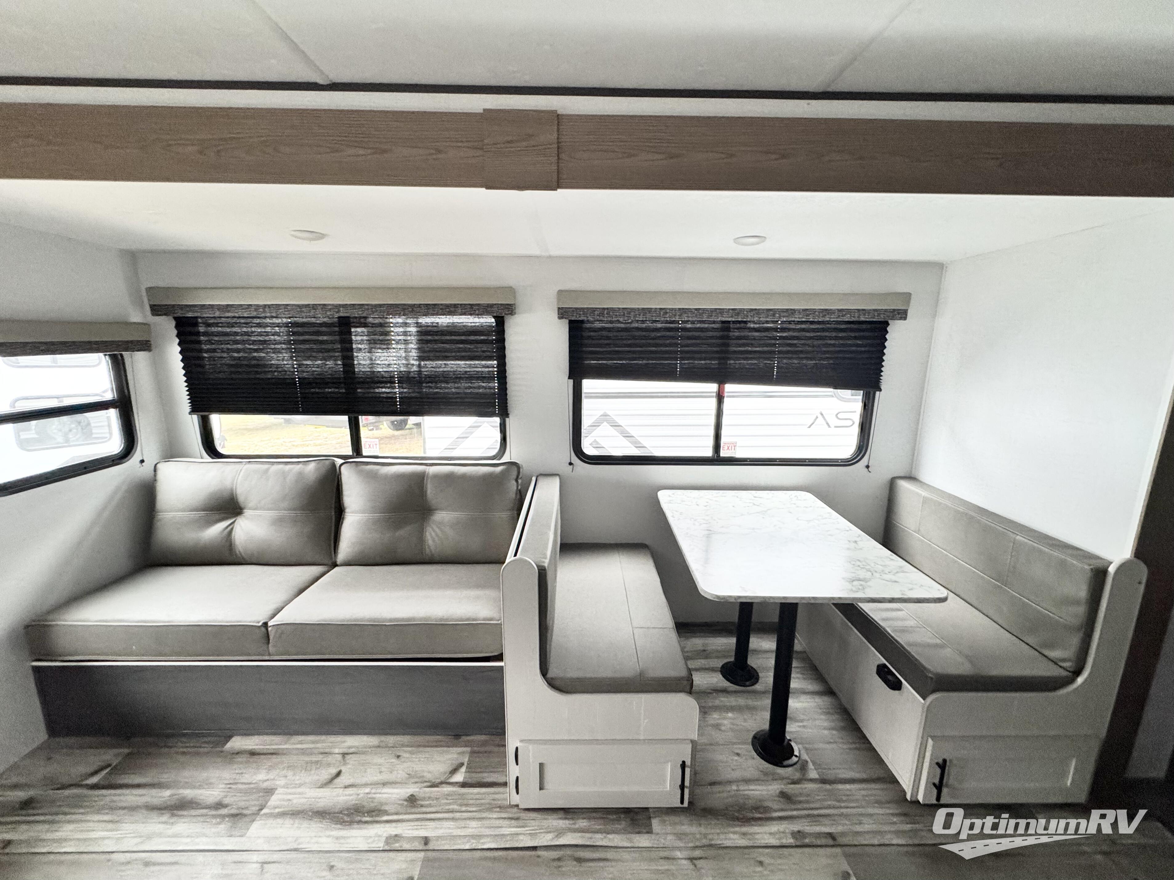With any Aspen Trail LE travel trailer by Dutchmen, you will have a durable roof structure with a TPO roof, 3/8" decking, an insulated structure with a metal exterior panel, plus superior A/C cooling for those hot summer camping months. The interior offers a Home Series interior design collection for an at home feel, full extension drawer guides throughout, oversized windows, pleated shades, and no carpet to quickly clean up sand and water from the lake. You'll also appreciate the magnetic baggage door catches, a high output furnace, an on-demand water heater, and the Solar Spirit Packages that will allow you to do some off-grid camping. Make your selection today and enjoy a smaller, lighter-weight RV!