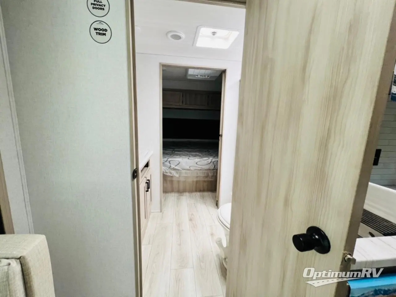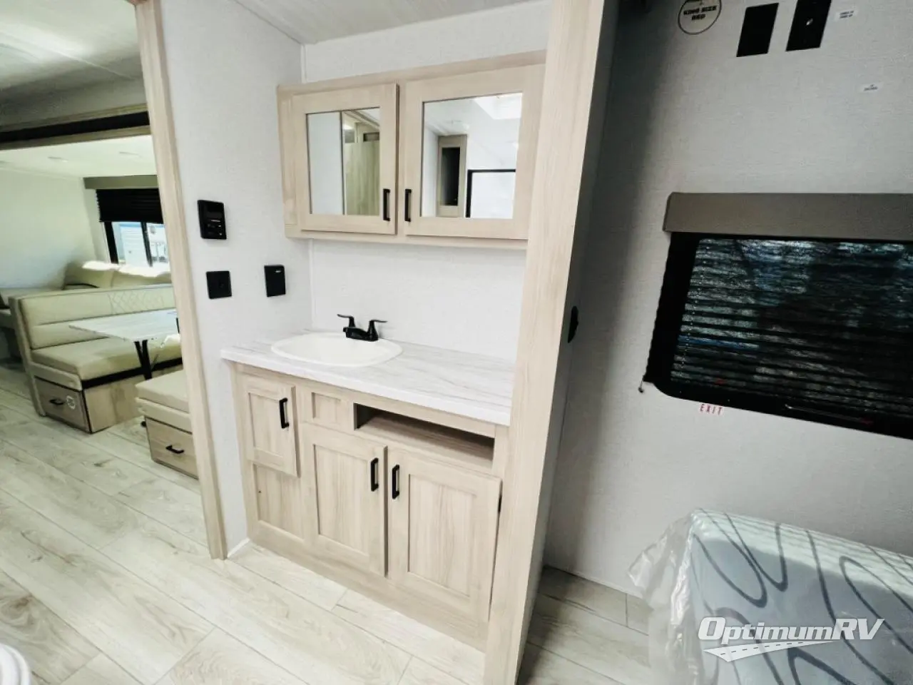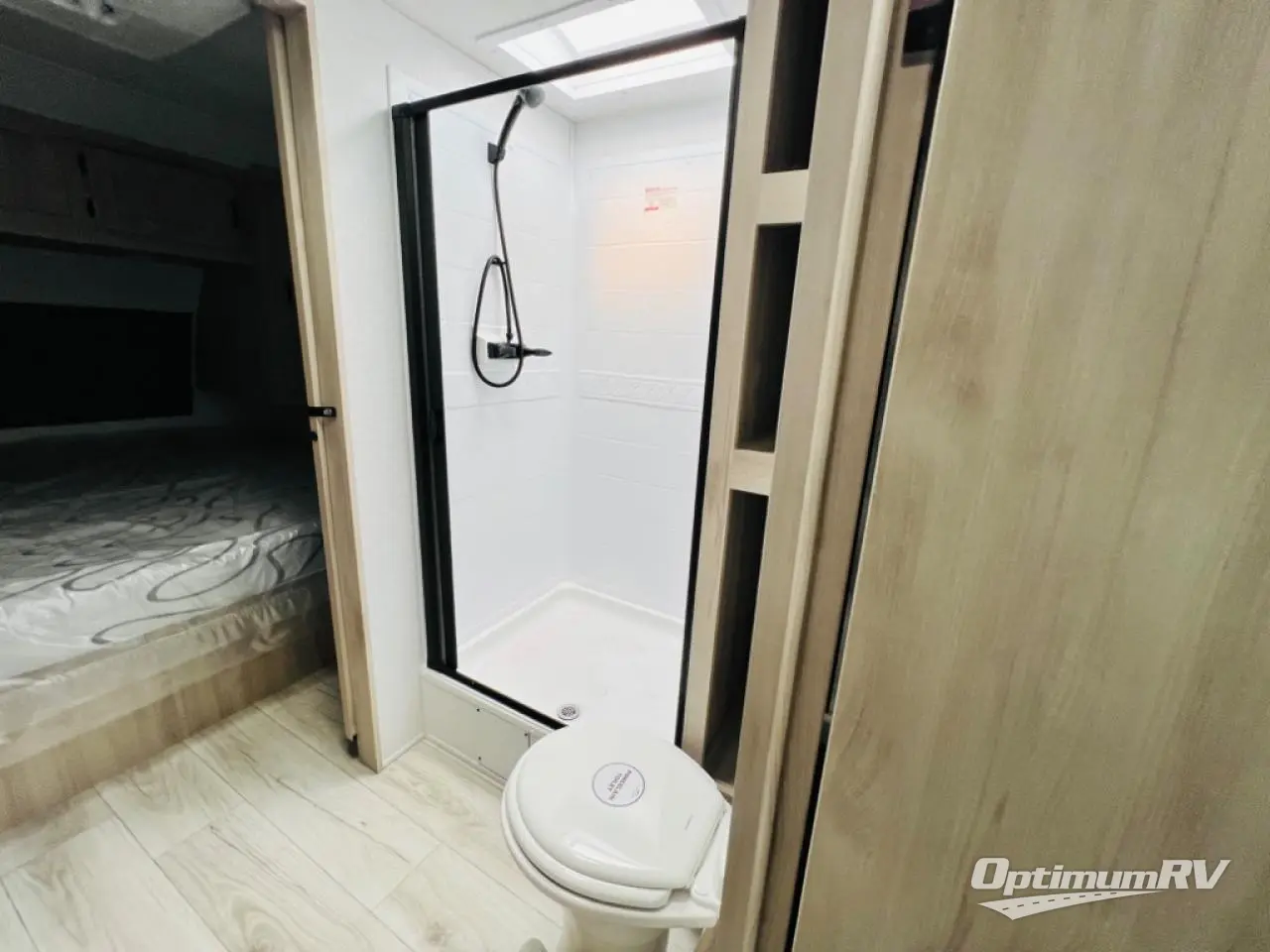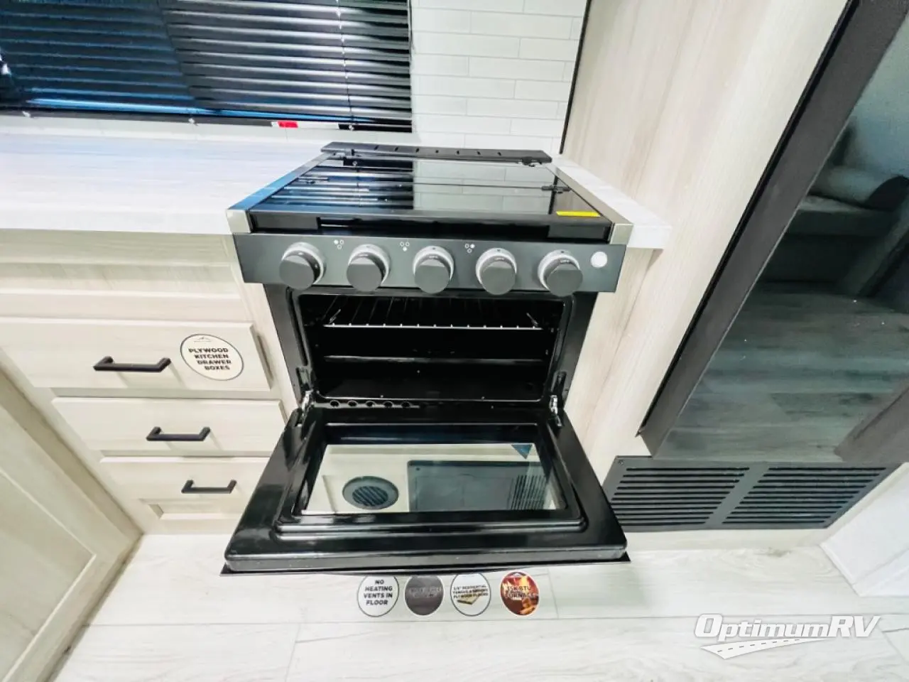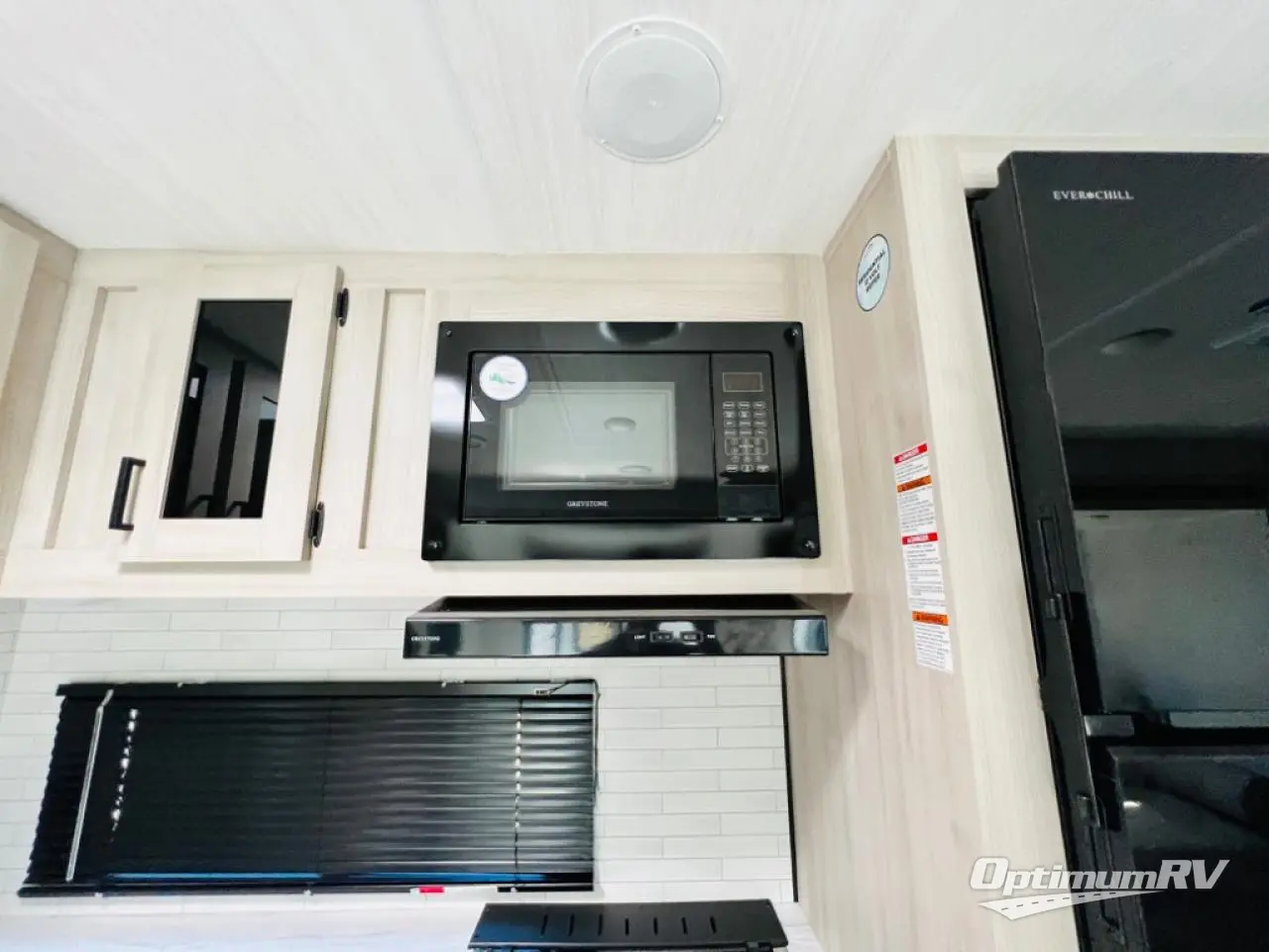 Head to the RV park for a long-weekend or week-long break from your everyday routine with this trailer at your favorite campsite. After setting up the two slide outs and the 15' power awning, you can relax inside on the jack knife sofa, dine at the oversized booth dinette or whip up a meal in the L-shaped kitchen. Everyone will enjoy the fireplace no matter what you are doing. The walk-through bathroom is super convenient, and the front bedroom allows you to live like a king in privacy. The rear bunkhouse also offers privacy and includes three bunk beds and a sofa, plus storage. Your kids or guests will love having their own room. And the exterior offers an optional outdoor kitchen, an oversized pass-through storage for your larger gear like fishing poles, outdoor tables and bags of charcoal, plus there are two spray ports to easily rinse off dirty bikes, shoes and such.