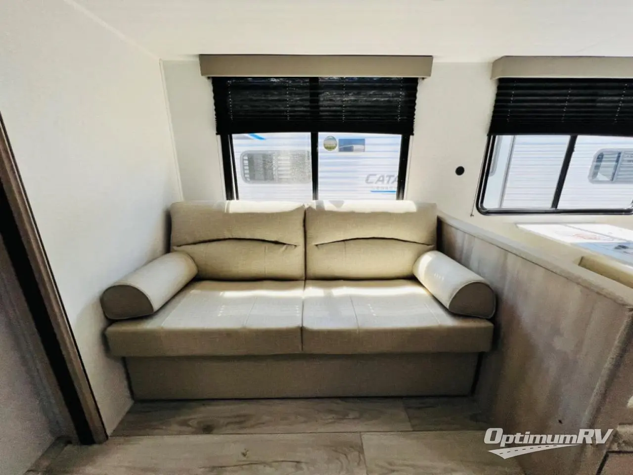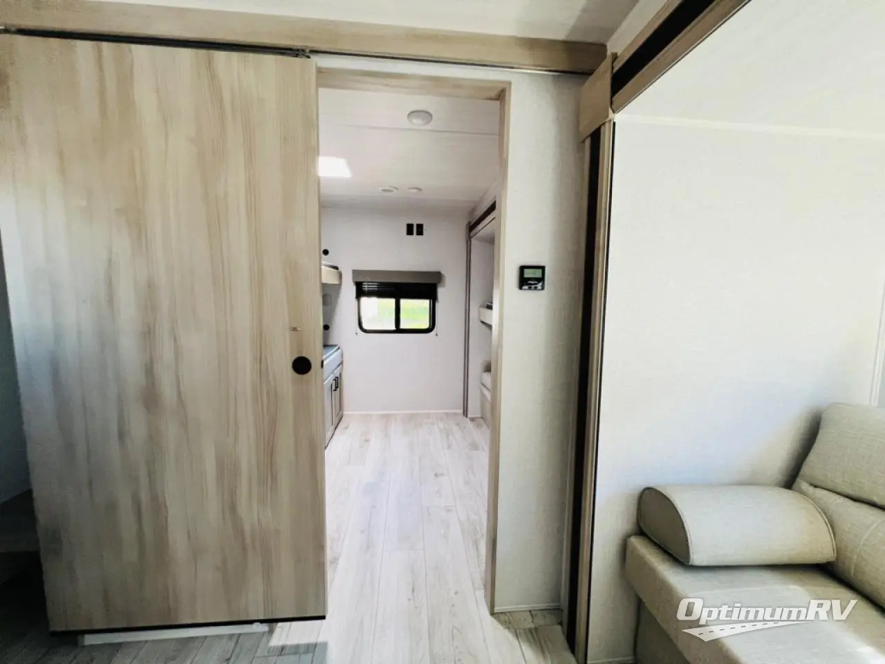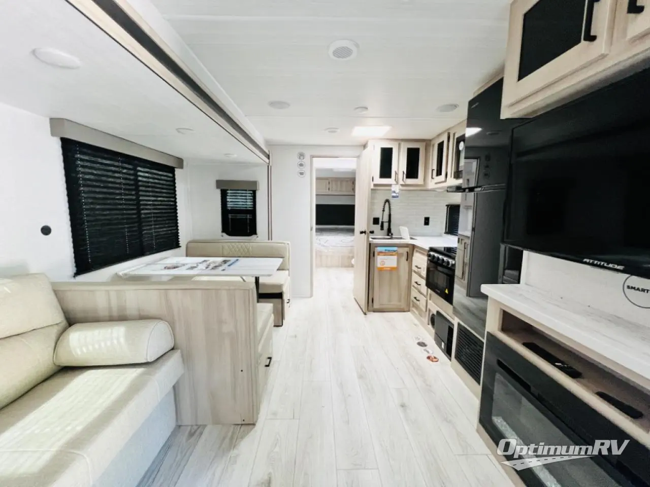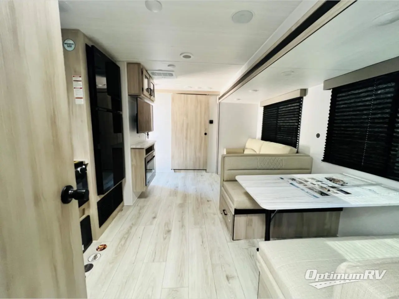 Head to the RV park for a long-weekend or week-long break from your everyday routine with this trailer at your favorite campsite. After setting up the two slide outs and the 15' power awning, you can relax inside on the jack knife sofa, dine at the oversized booth dinette or whip up a meal in the L-shaped kitchen. Everyone will enjoy the fireplace no matter what you are doing. The walk-through bathroom is super convenient, and the front bedroom allows you to live like a king in privacy. The rear bunkhouse also offers privacy and includes three bunk beds and a sofa, plus storage. Your kids or guests will love having their own room. And the exterior offers an optional outdoor kitchen, an oversized pass-through storage for your larger gear like fishing poles, outdoor tables and bags of charcoal, plus there are two spray ports to easily rinse off dirty bikes, shoes and such.