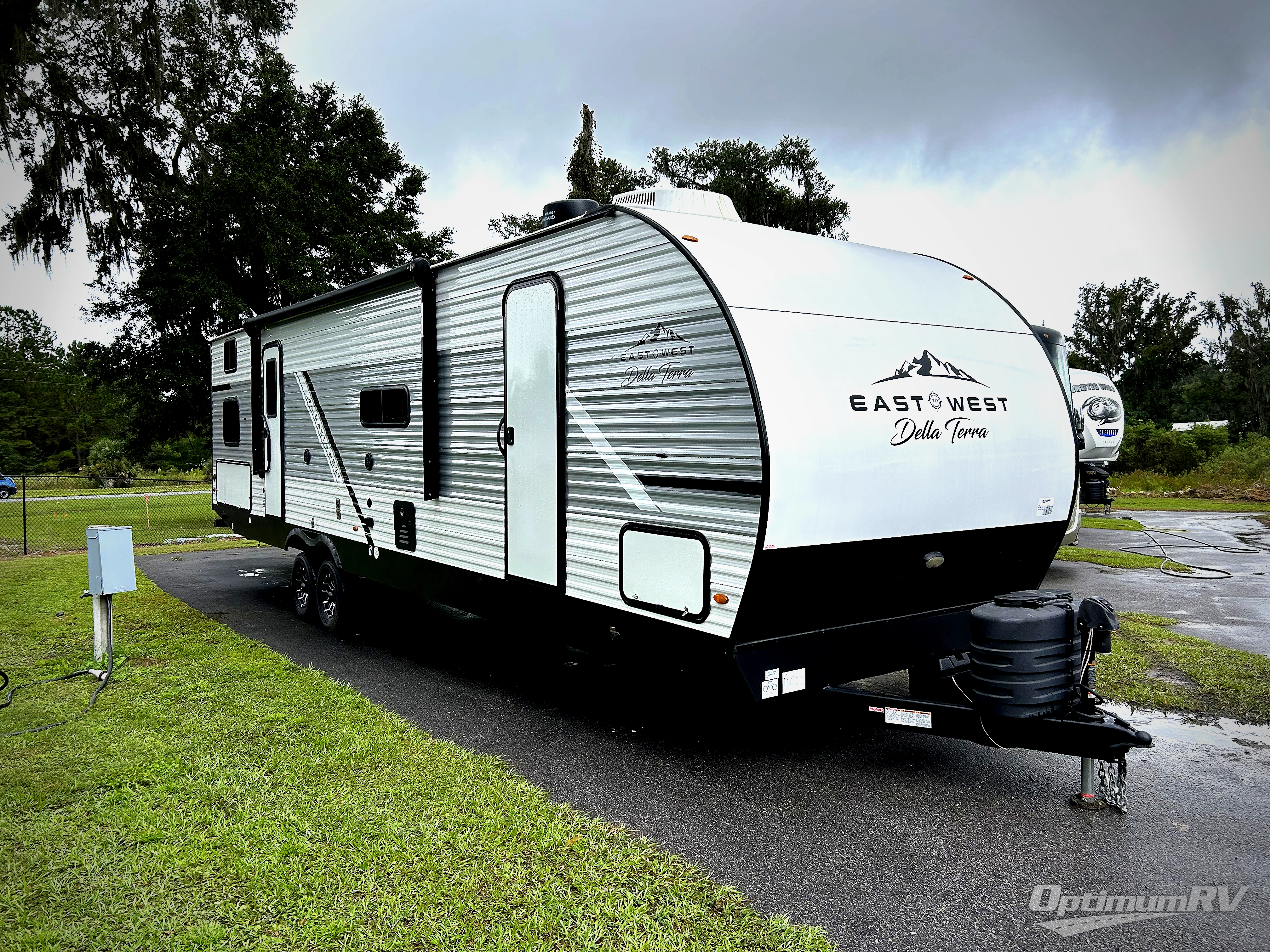 Each Della Terra travel trailer by EAST TO WEST is constructed with an enclosed and heated underbelly and enclosed holding tanks so you can camp all year long. There is also a power tongue jack with an LED light for easy set up and a power awning with LED lights you can rest under after you've unpacked. The Explore Comfort Package comes with marine grade woven PVC flooring in the slide outs with no carpet, an 81" interior ceiling height, upgraded Congoleum designer linoleum flooring, and many more comforts.