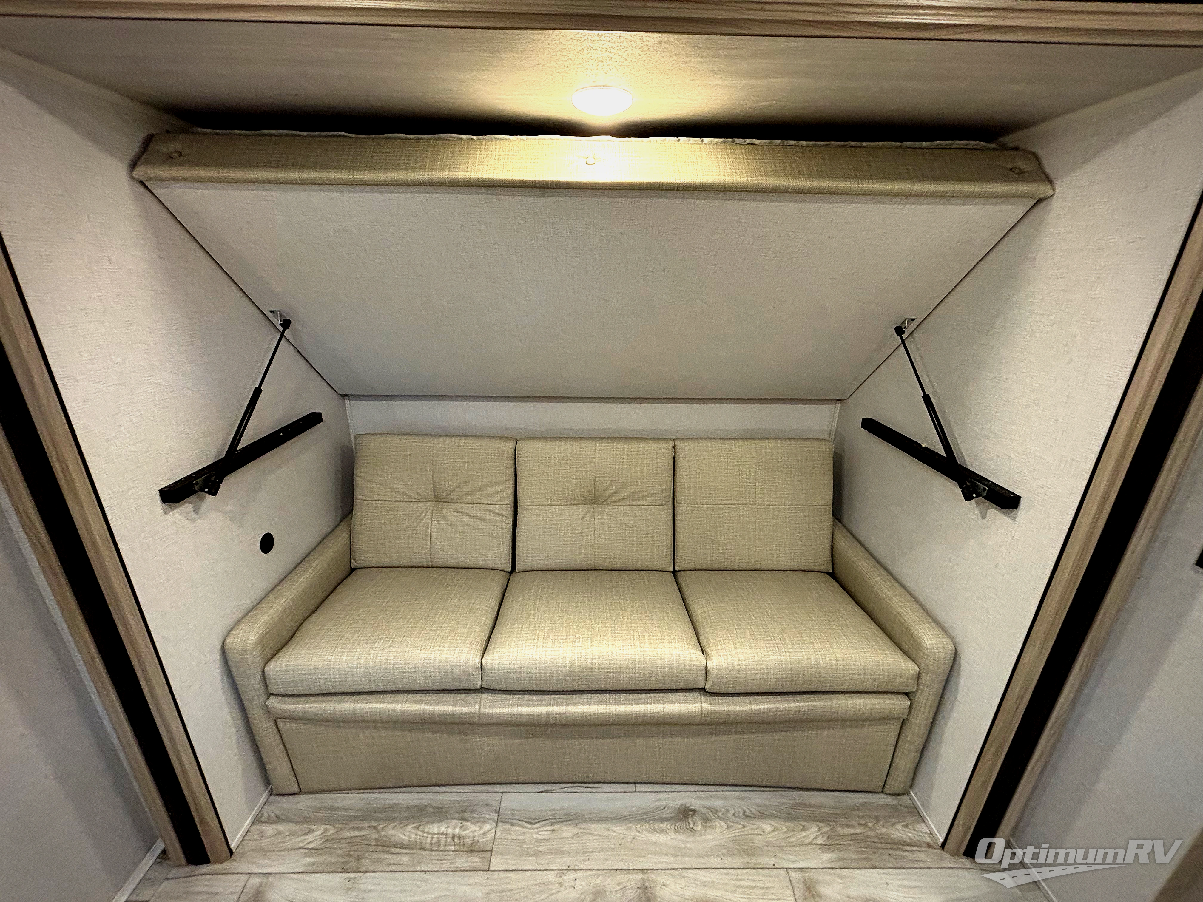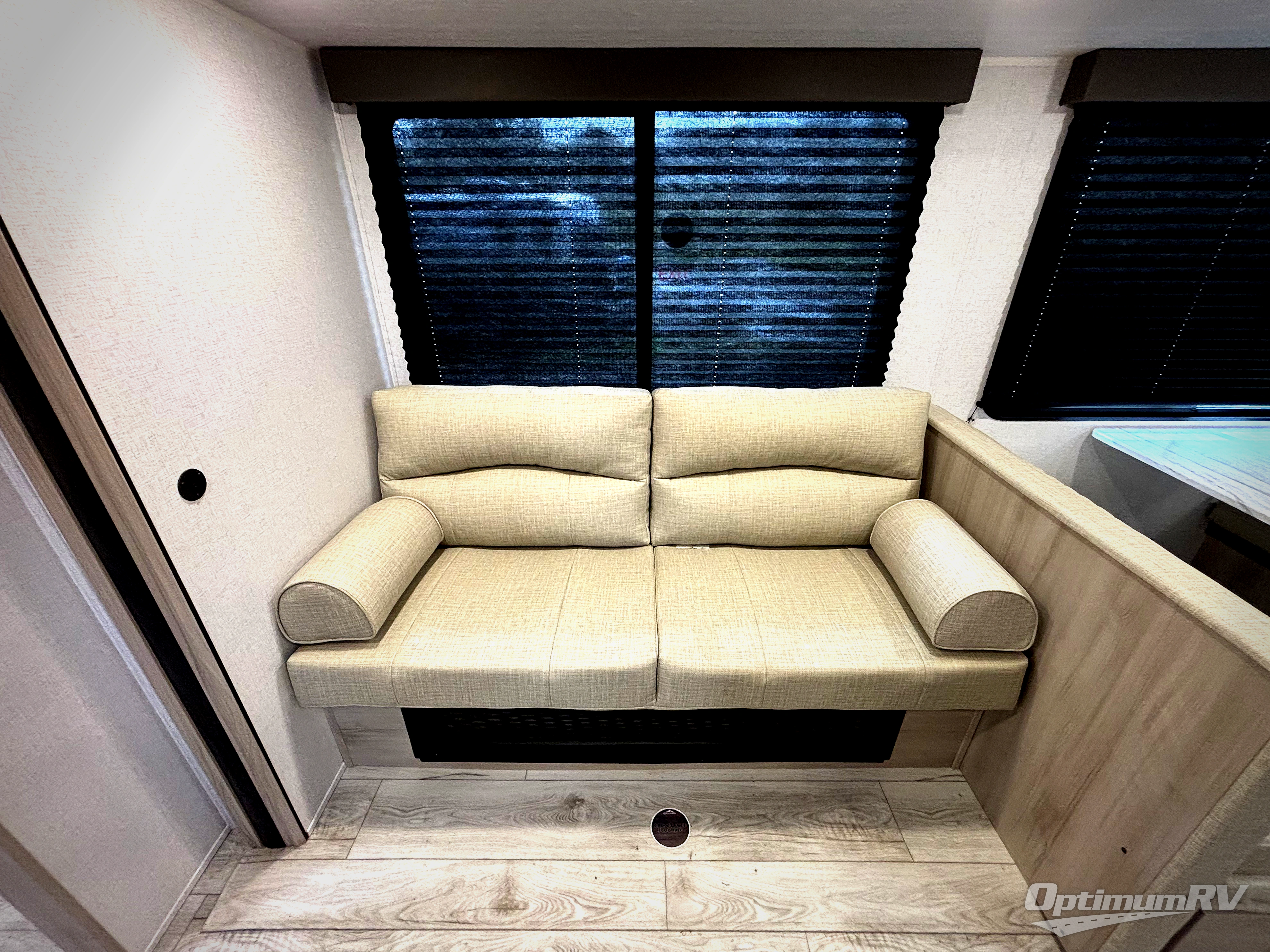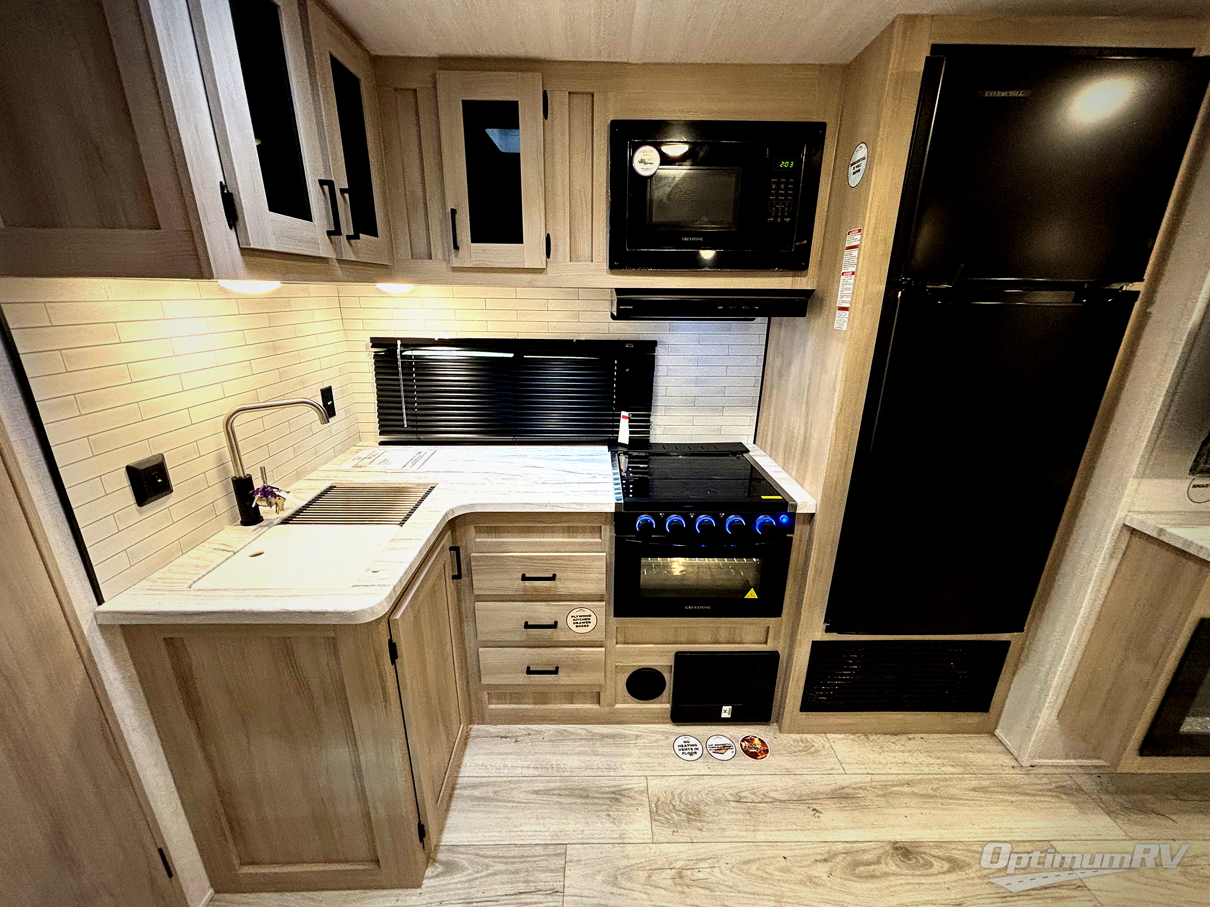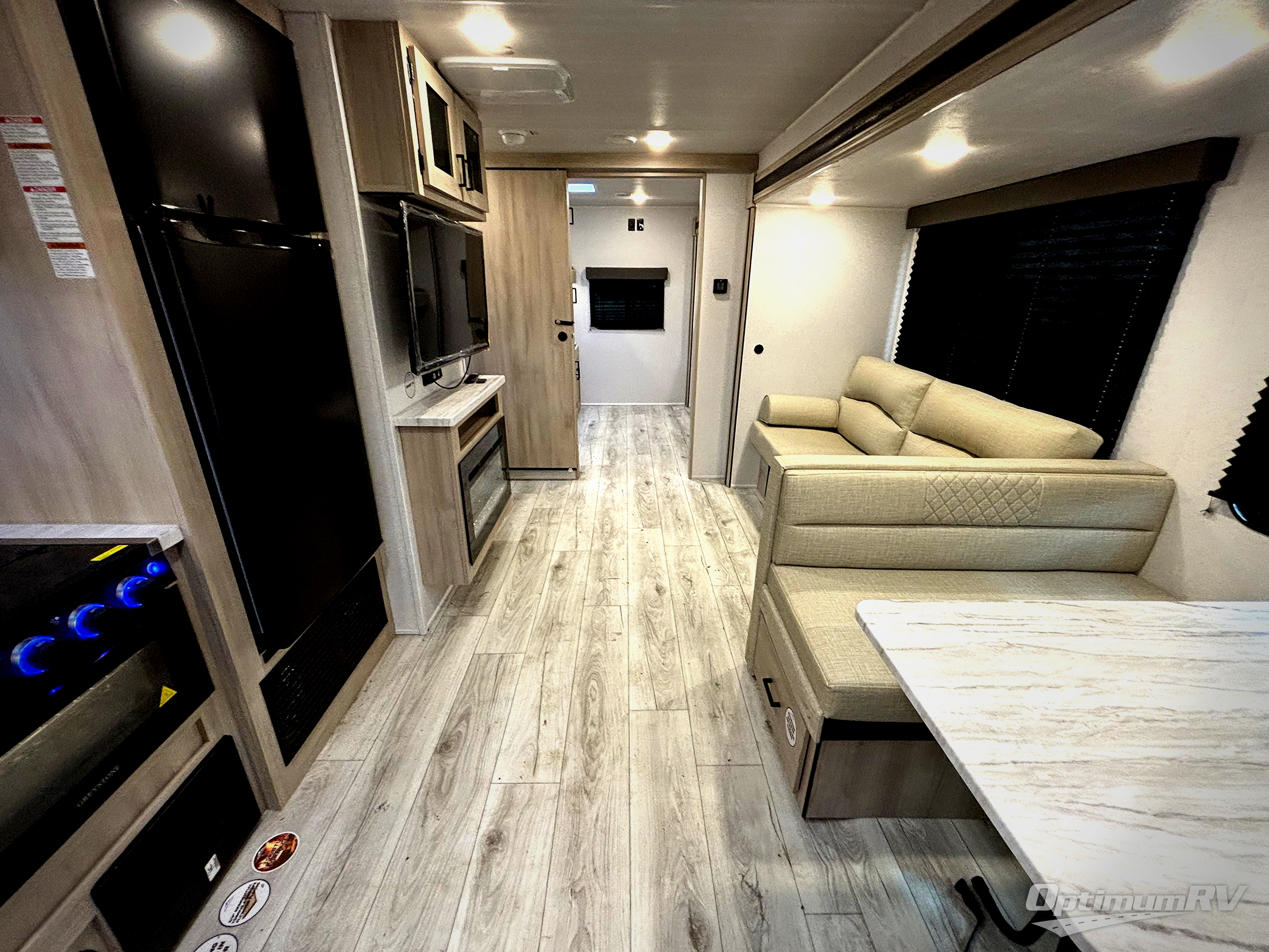 Each Della Terra travel trailer by EAST TO WEST is constructed with an enclosed and heated underbelly and enclosed holding tanks so you can camp all year long. There is also a power tongue jack with an LED light for easy set up and a power awning with LED lights you can rest under after you've unpacked. The Explore Comfort Package comes with marine grade woven PVC flooring in the slide outs with no carpet, an 81" interior ceiling height, upgraded Congoleum designer linoleum flooring, and many more comforts.