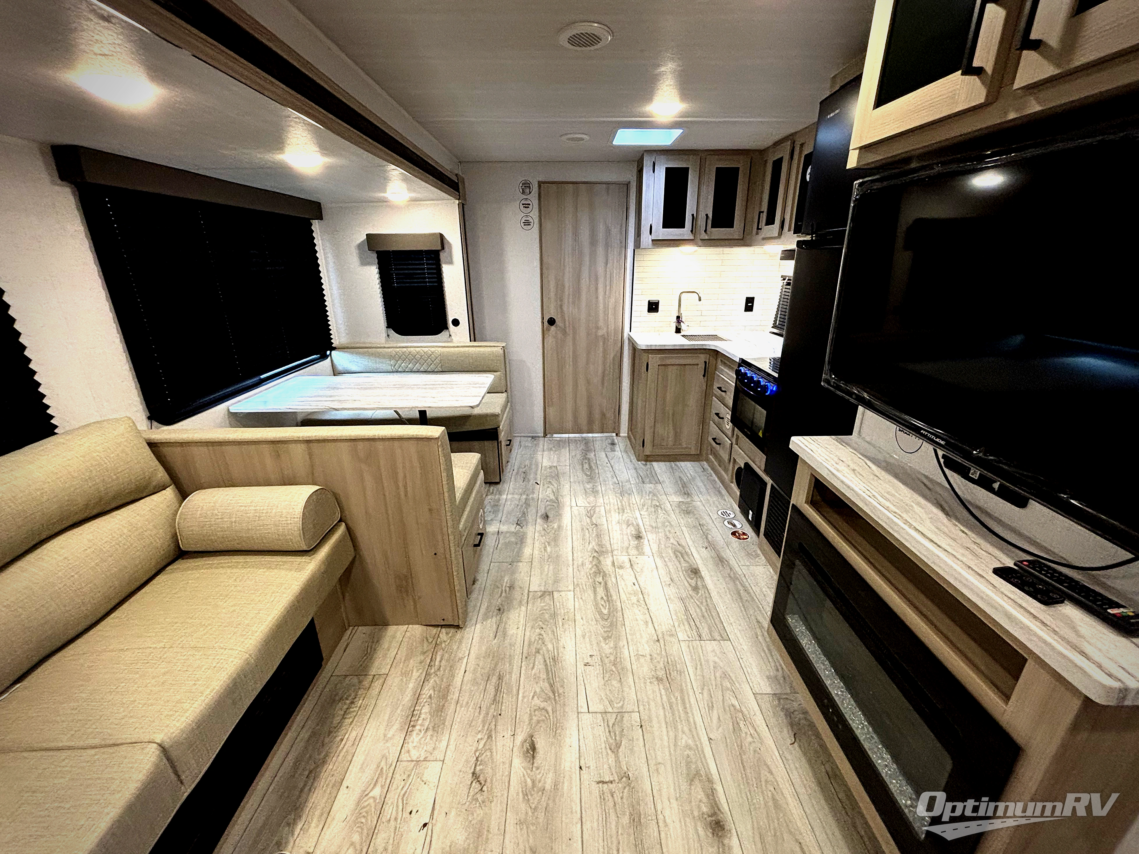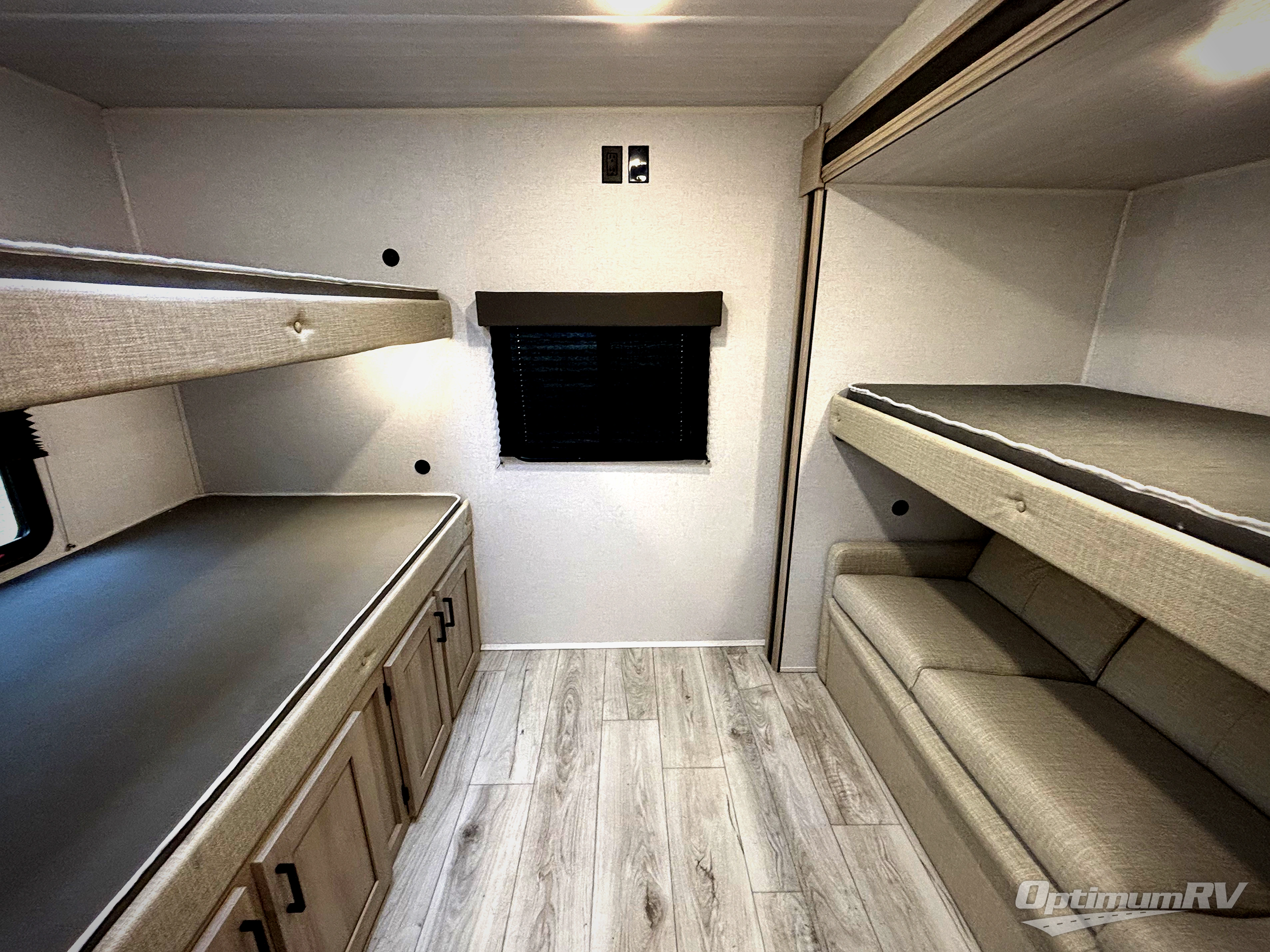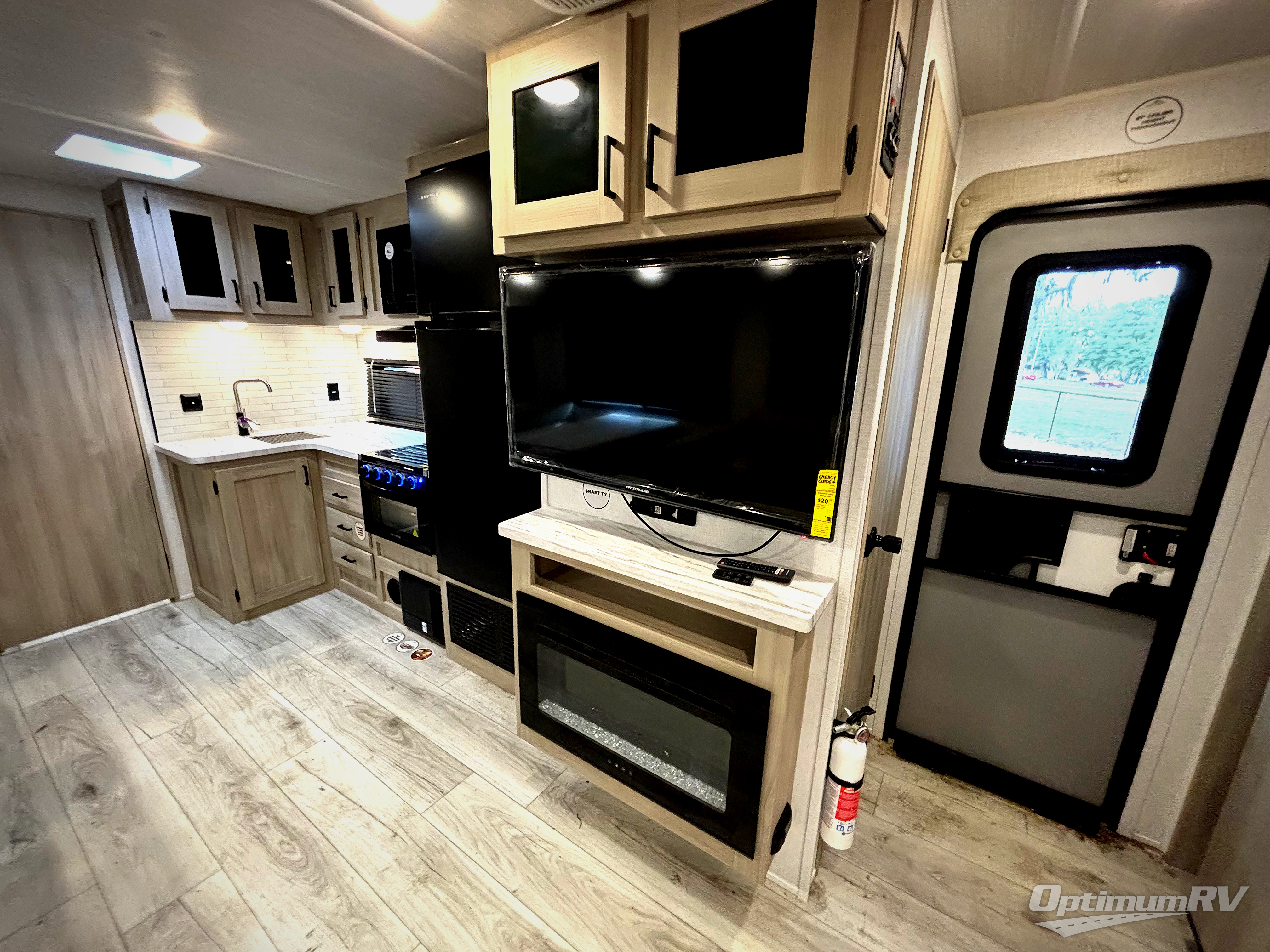 Head to the RV park for a long-weekend or week-long break from your everyday routine with this trailer at your favorite campsite. After setting up the two slide outs and the 15' power awning, you can relax inside on the jack knife sofa, dine at the oversized booth dinette or whip up a meal in the L-shaped kitchen. Everyone will enjoy the fireplace no matter what you are doing. The walk-through bathroom is super convenient, and the front bedroom allows you to live like royalty in privacy. The rear bunkhouse also offers privacy and includes three bunk beds and a sofa, plus storage. Your kids or guests will love having their own room. And the exterior offers an optional outdoor kitchen, an oversized pass-through storage for your larger gear like fishing poles, outdoor tables and bags of charcoal, plus there are two spray ports to easily rinse off dirty bikes, shoes and such.