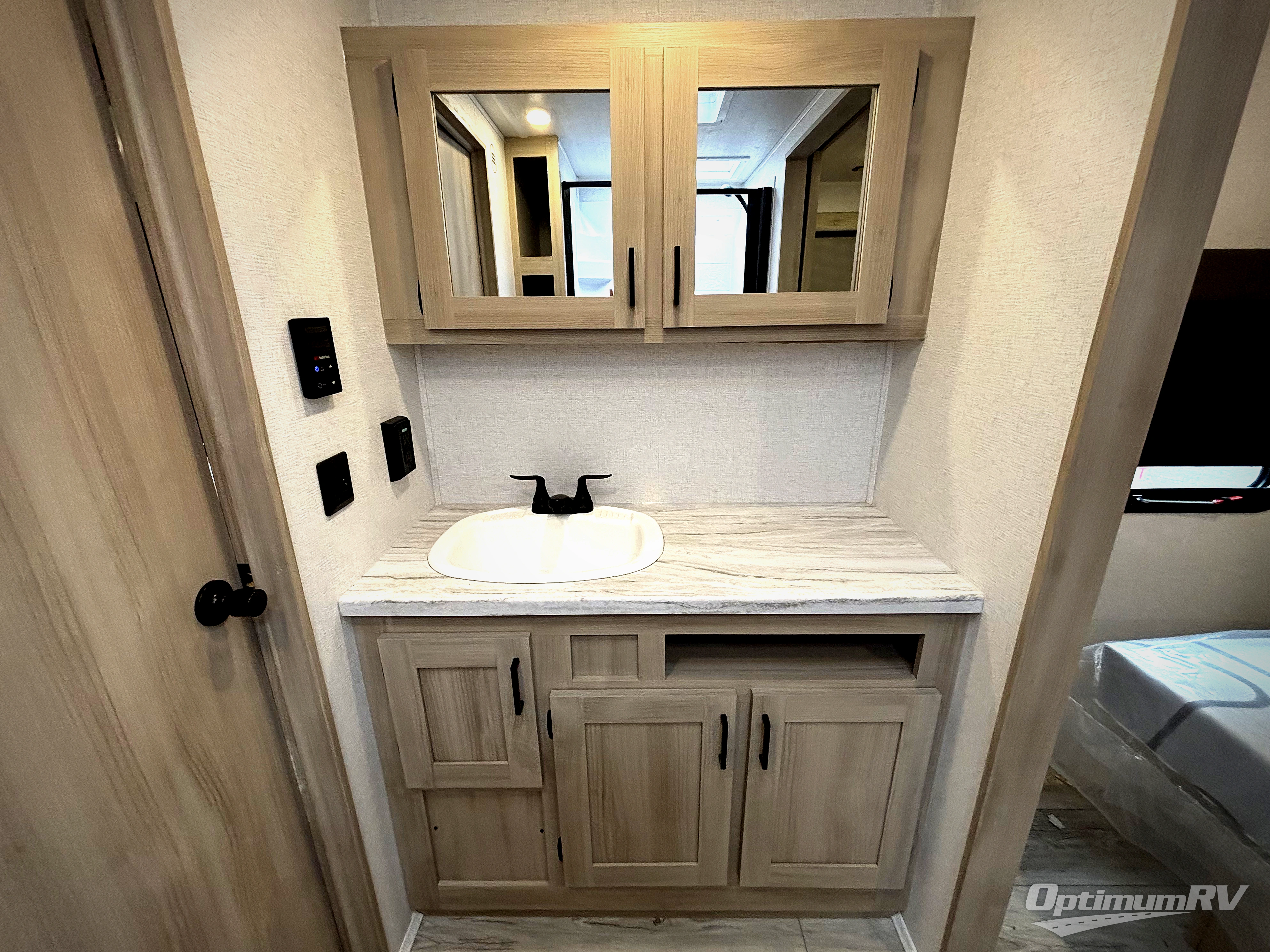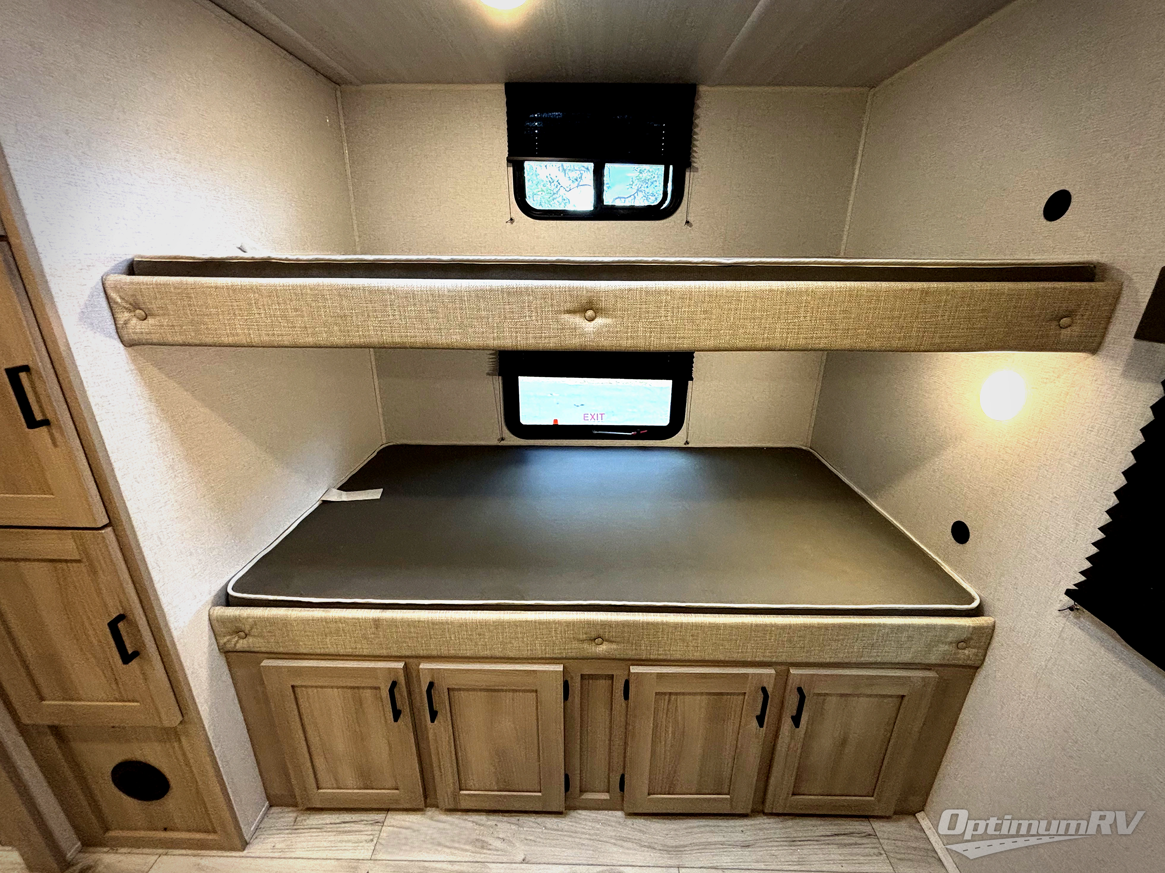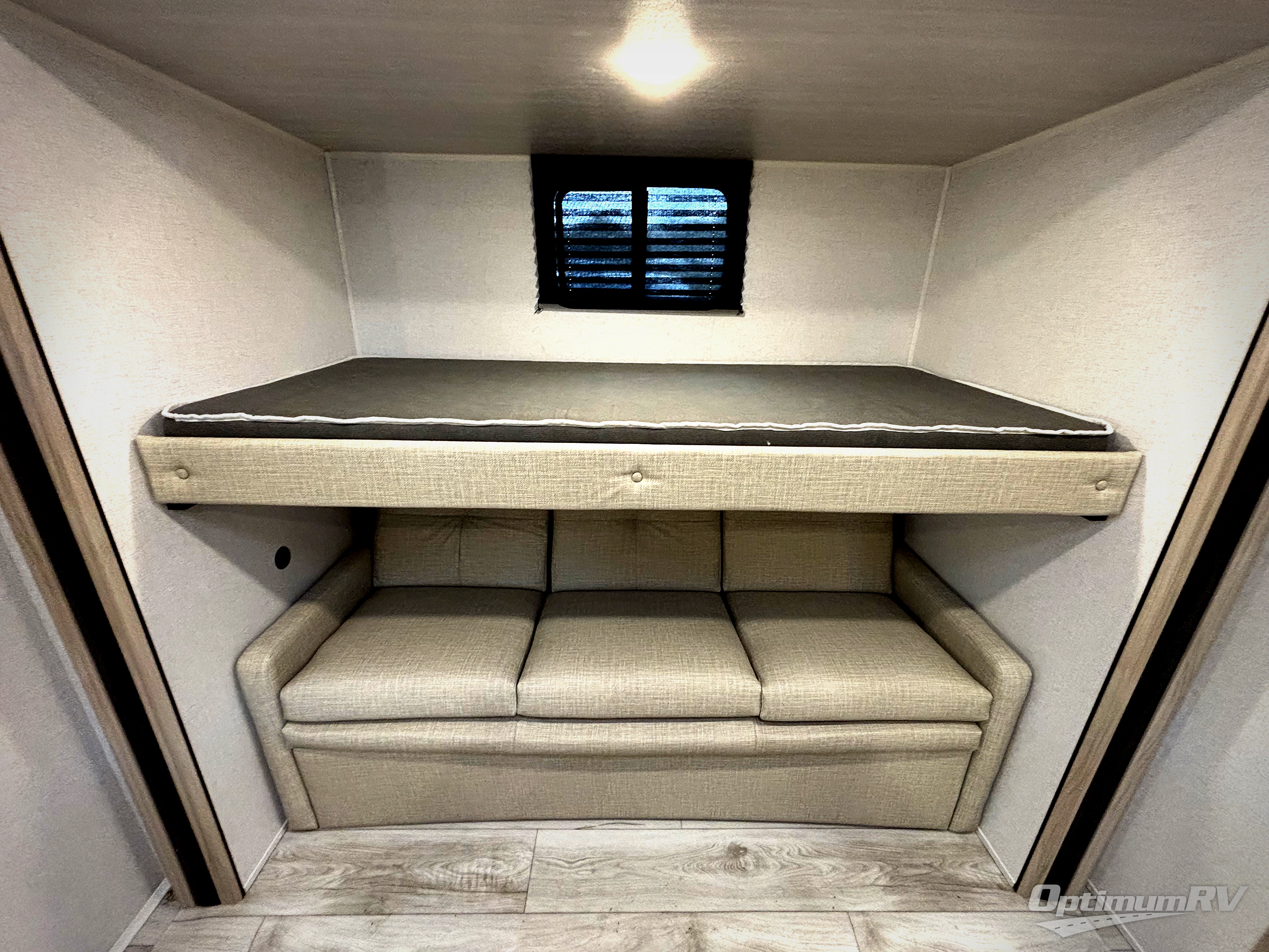Head to the RV park for a long-weekend or week-long break from your everyday routine with this trailer at your favorite campsite. After setting up the two slide outs and the 15' power awning, you can relax inside on the jack knife sofa, dine at the oversized booth dinette or whip up a meal in the L-shaped kitchen. Everyone will enjoy the fireplace no matter what you are doing. The walk-through bathroom is super convenient, and the front bedroom allows you to live like royalty in privacy. The rear bunkhouse also offers privacy and includes three bunk beds and a sofa, plus storage. Your kids or guests will love having their own room. And the exterior offers an optional outdoor kitchen, an oversized pass-through storage for your larger gear like fishing poles, outdoor tables and bags of charcoal, plus there are two spray ports to easily rinse off dirty bikes, shoes and such.