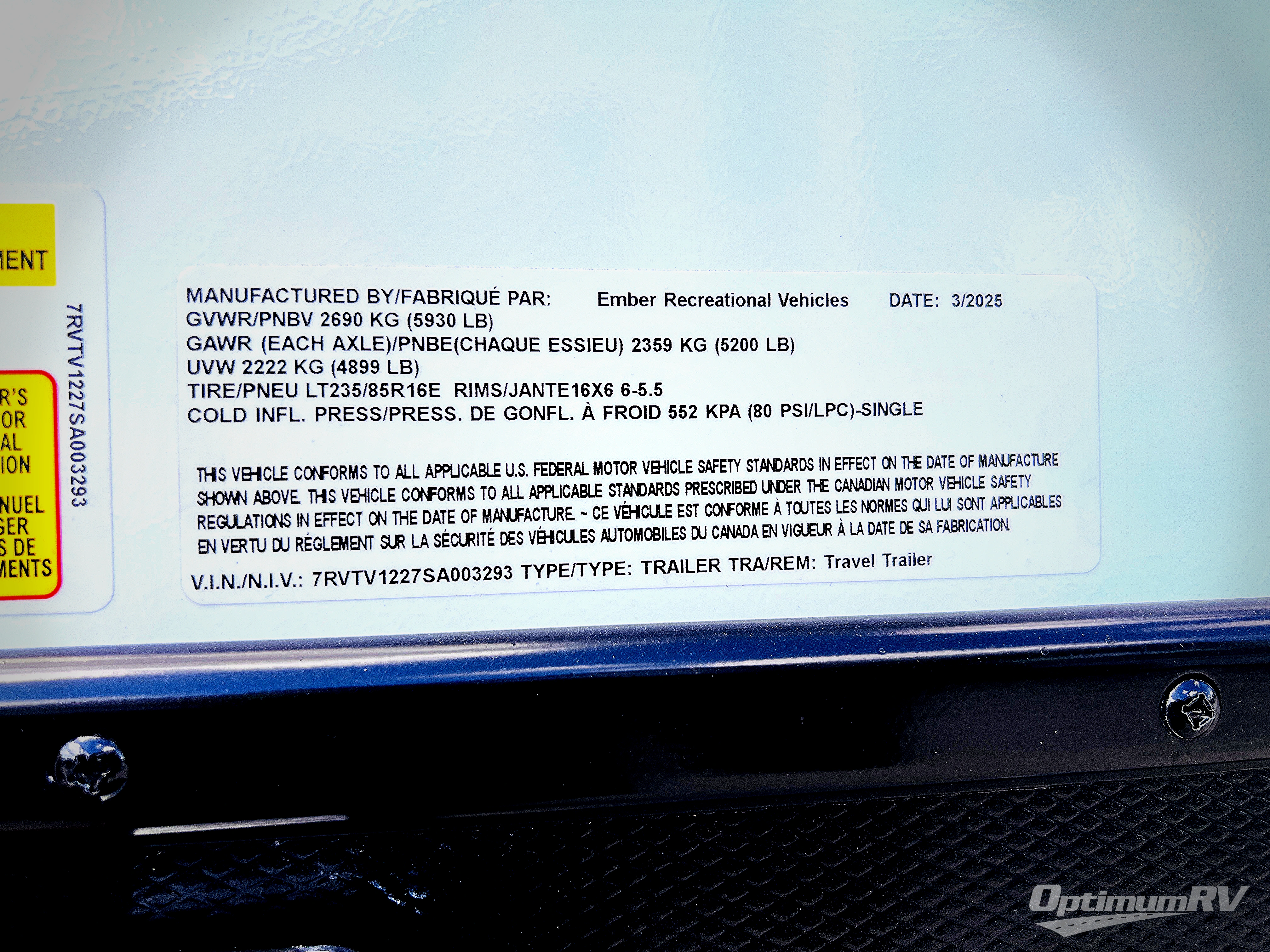 Each one of these Ember RV Overland Series travel trailers and toy hauler were built to meet the needs of today's most discerning RVers with layouts to fit couples and families! The CURT independent suspension comes with heavy-duty coil springs with dual shock absorbers on each wheel, and the 5-sided aluminum frame construction is sure to hold up through whatever adventure you throw its way. Laminated Azdel Onboard composite walls and rooftop prevent rotting or molding of the unit. Their chic interior design comes with structural composite flooring that is durable and easy to clean, dual pane caravan windows with integrated thermal shades/screens for added privacy, and an EmberLink smart RV control system to use at the touch of a finger. The Off-Grid Solar package lets you go further into the woods and the Safety First package helps you arrive safely to each destination. You will also appreciate the Luxury Package with an air fryer convection microwave, the Overland Package with an XL fresh water tank, and the optional Max Solar Package for maximum off-grid capabilities!