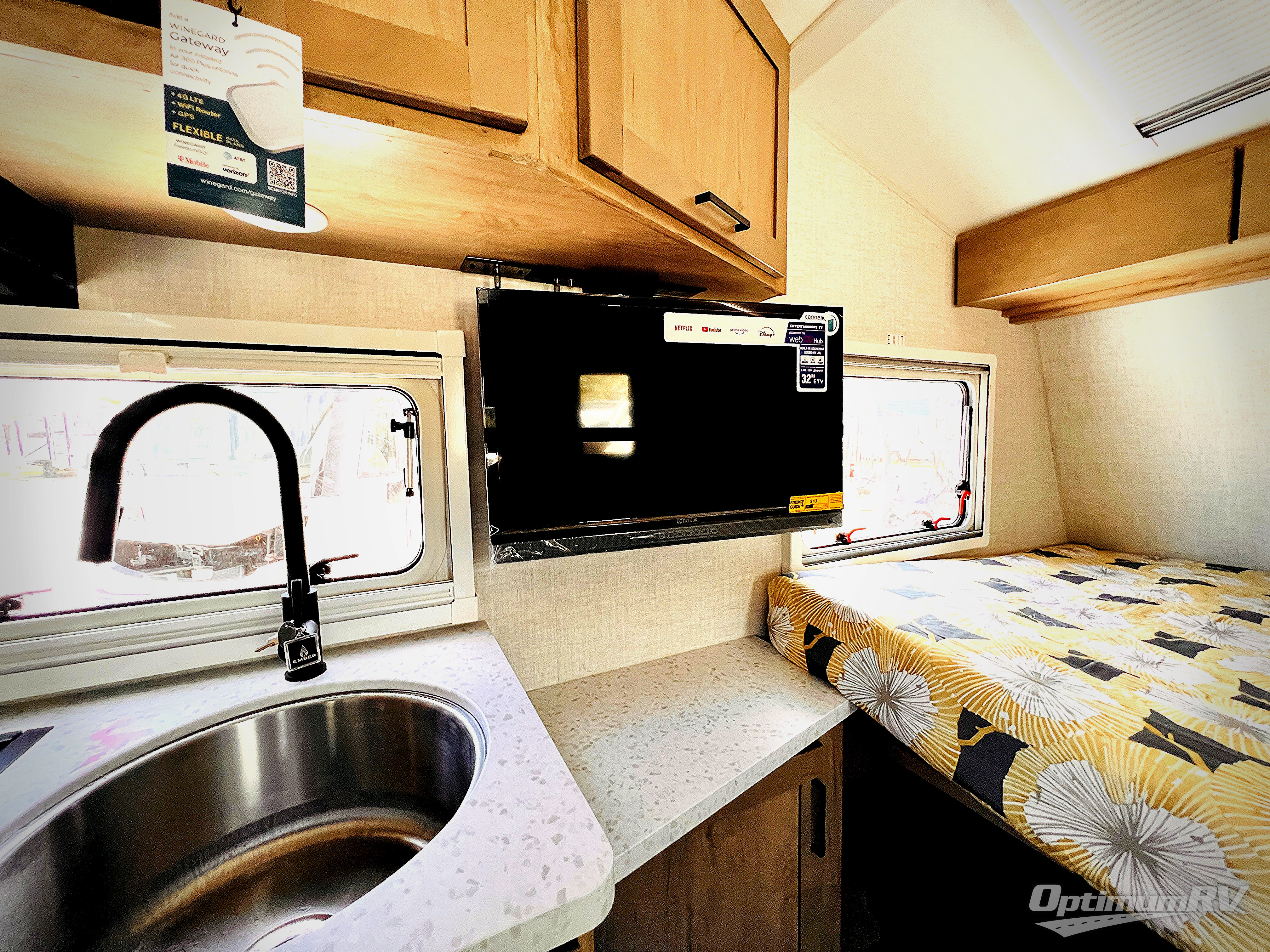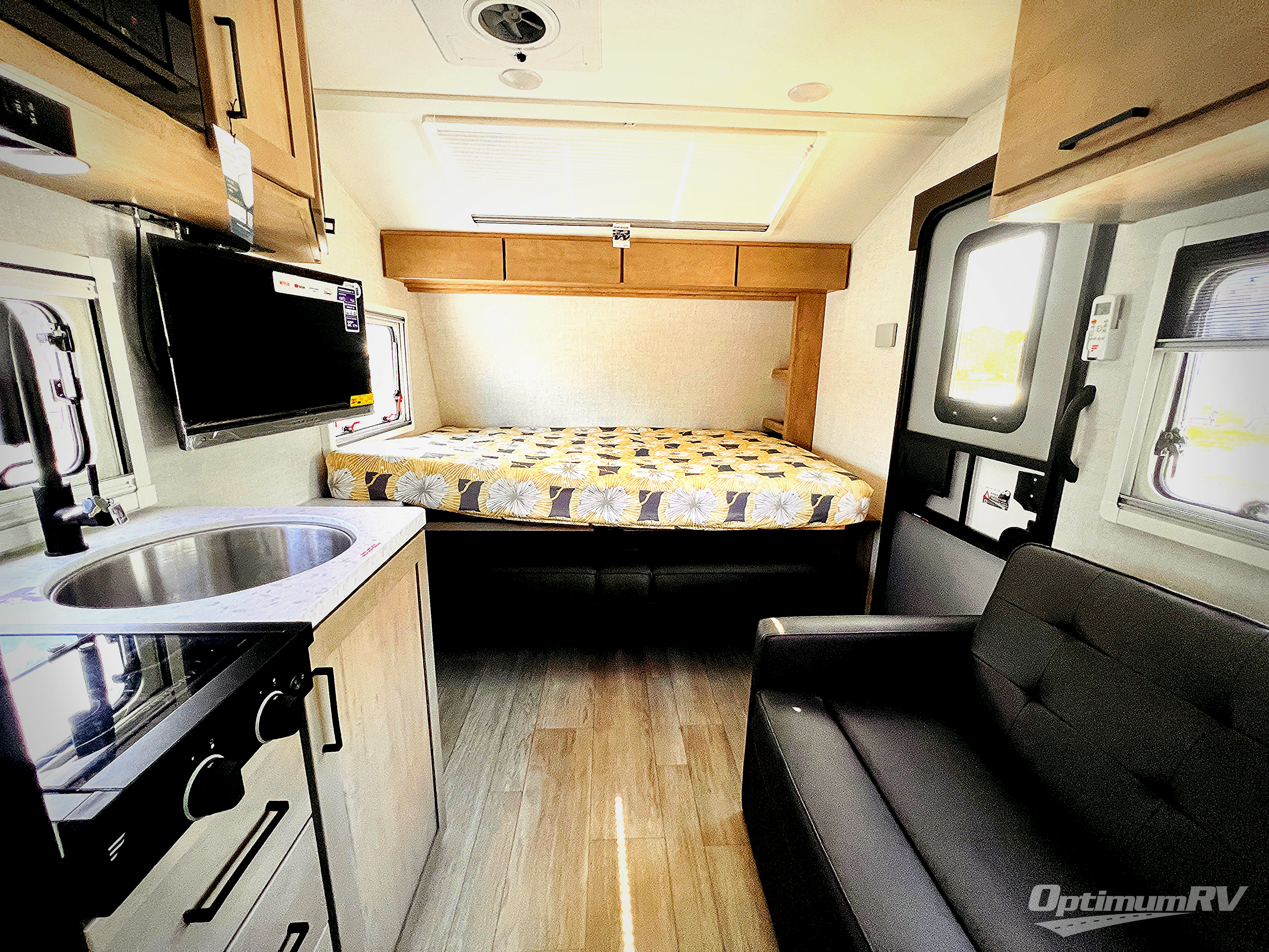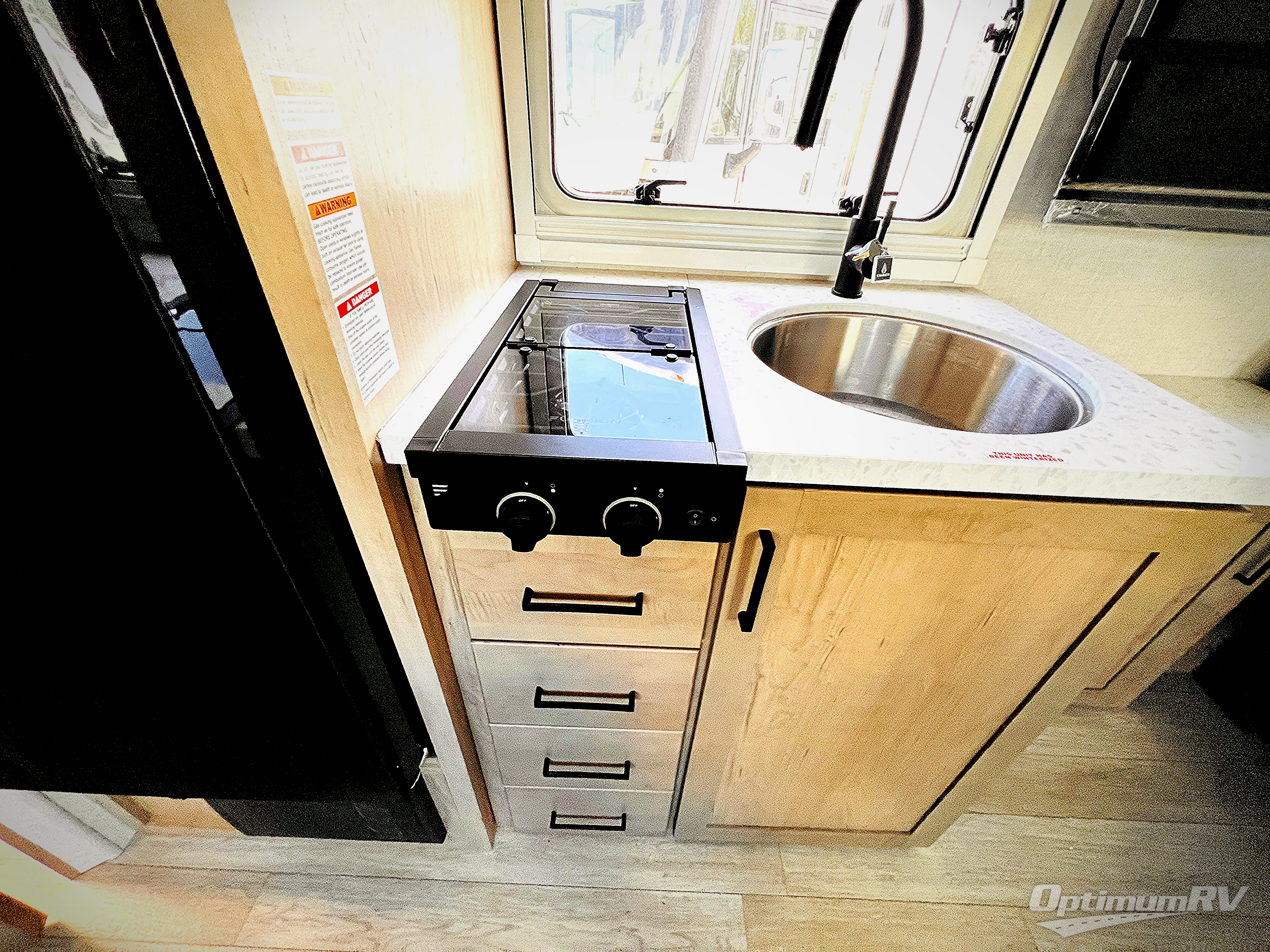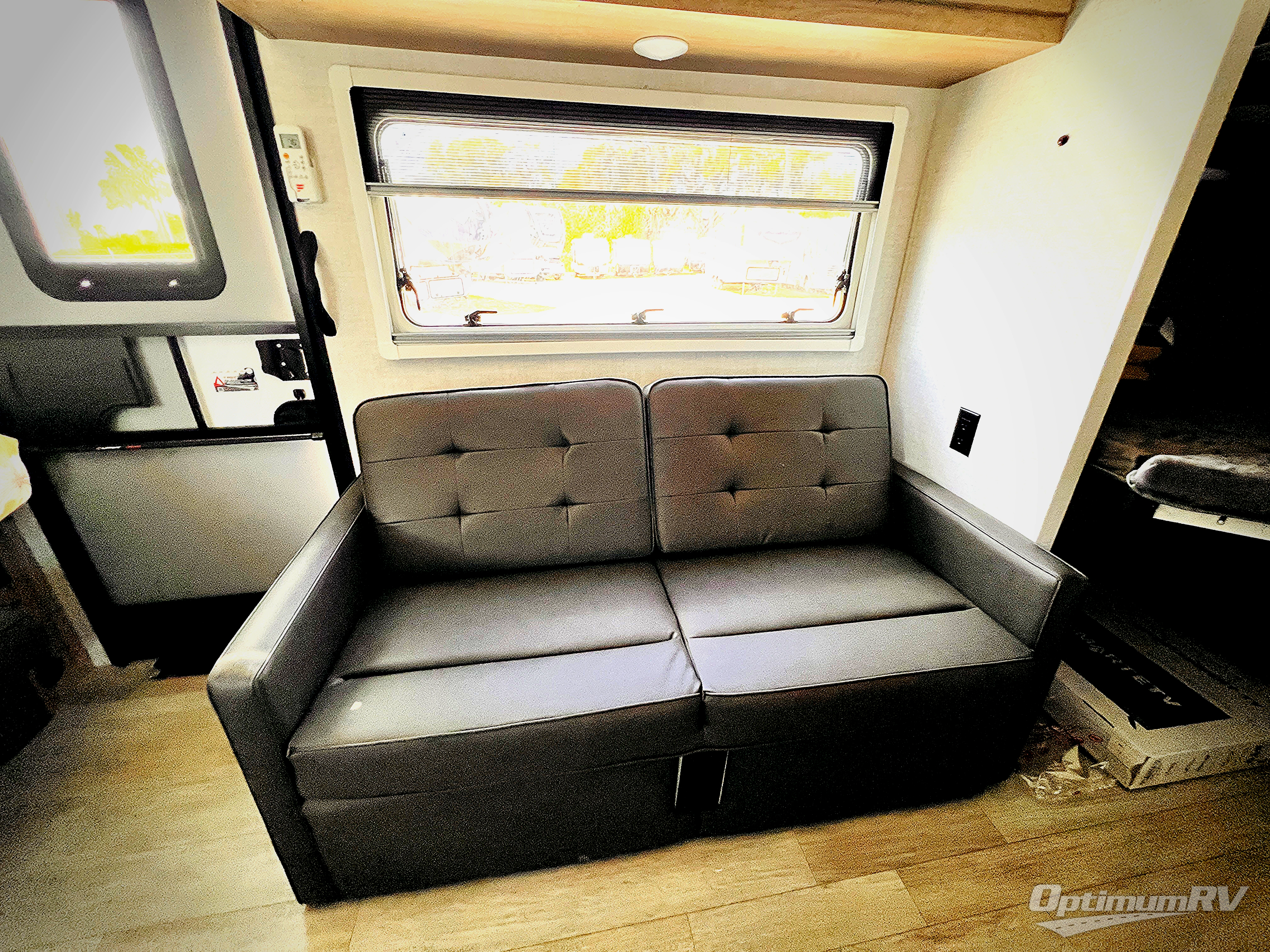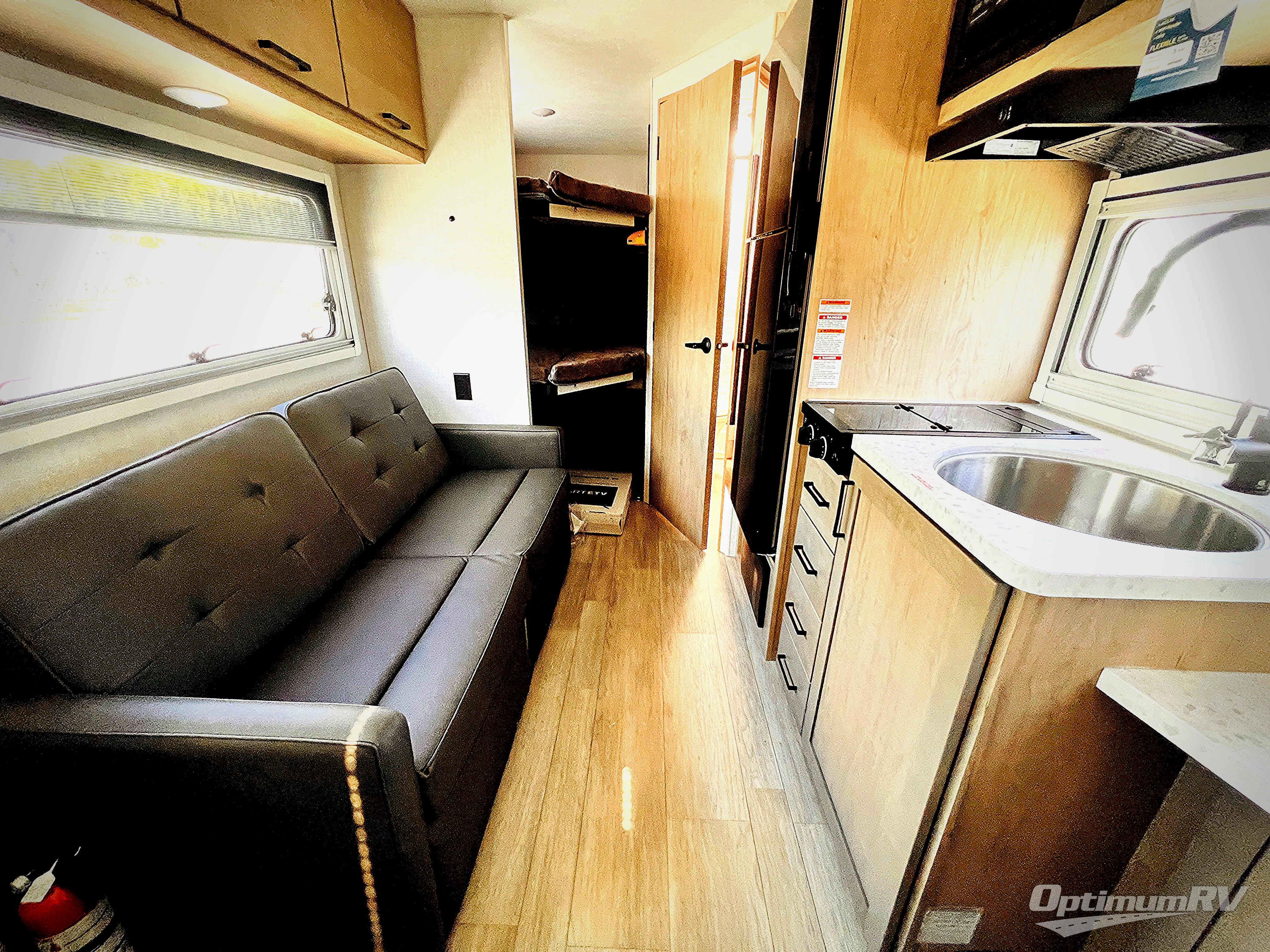 This unique travel trailer offers versatile living! Starting with the front Murphy bed that has a 60" x 80" queen bed to lay your head on at night and can convert into a sofa for seating during the day with a nightstand and a 12V HDTV/AV system to watch your favorite movies in bed. Create your best home cooked meals with the dual burner cooktop and 12V refrigerator then enjoy them at the jackknife sofa with a removable table. There is a second removable table that can be used by the Murphy bed/sofa. The repositionable Embertack E-track bunk/storage system has a 74" x 46" cargo space for your items and a storage locker door to access them from the exterior. You can enjoy twin bunks or convert them to double-size bunks to sleep two to four. The exterior also features a kayak/bike storage door, front pass-through storage area, and a 2" accessory receiver!