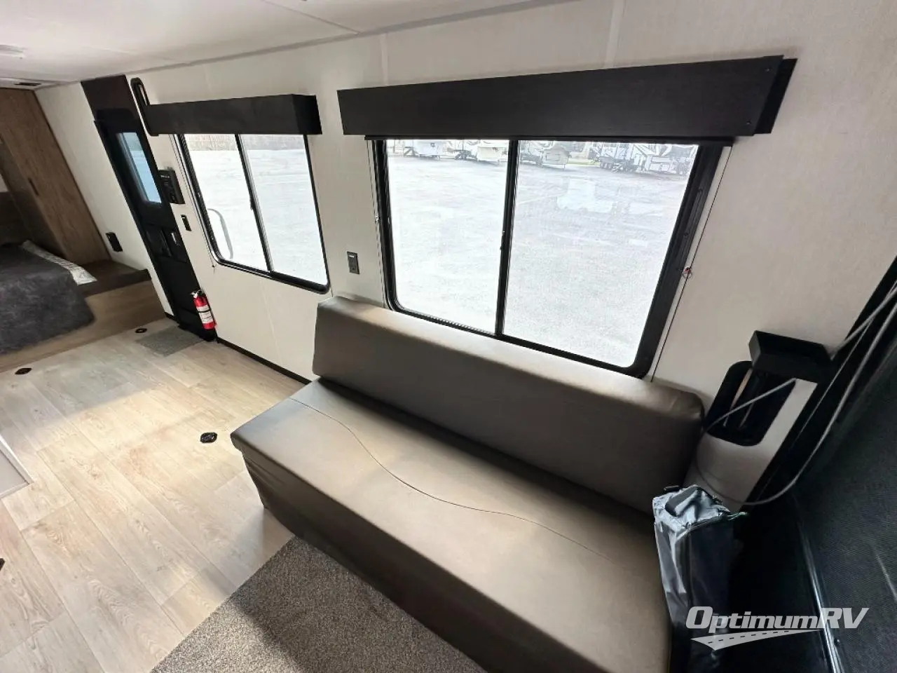 You will undoubtedly love this Cherokee Grey Wolf toy hauler! Because of its ability to have up to 15' 2" of cargo space, you can easily load up the ramp door and head out to your outdoor toy land, and you can bring much more than just your toys since this trailer also comes with exterior storage, a bedside wardrobe, overhead cabinets, an 10-cubic foot refrigerator, and a kitchen pantry. The full bathroom is another feature that is going to allow you to experience a true getaway since you won't need to find public facilities to use while you're gone, and the USB charging stations will allow you to charge your phone inside while you're outside playing.