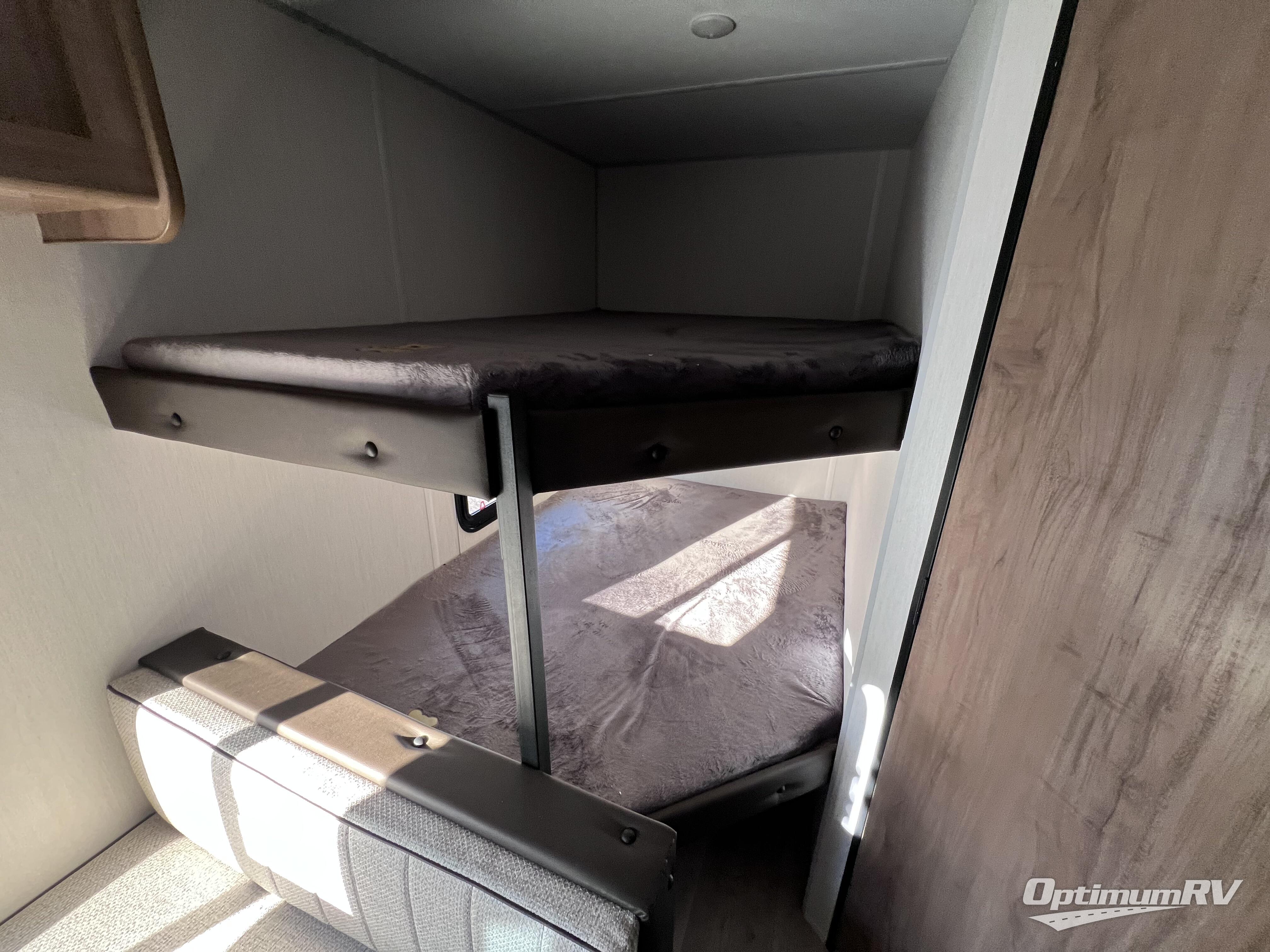 Enjoy family adventures in this all-electric bunk model which features sleeping for eight to ten depending on size with a queen bed up front, double bed bunks in the rear curbside corner, and you could even convert the booth dinette and sofa to sleep more. Inside, you will find ample storage with overhead cabinets and a large shelf above the queen bed, plus more shelves next to the entry door, as well as a pantry and storage on either side of the bed. You will appreciate the full bath with tub/shower, toilet, and sink so you can skip the campground facilities. On the outside, you will also find a 12' awning for added outdoor living, and outside storage for your camping gear, plus more!