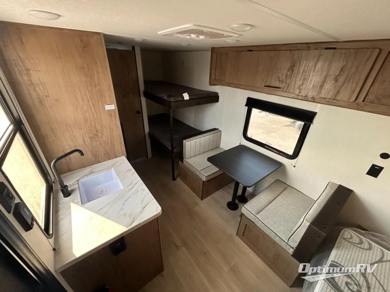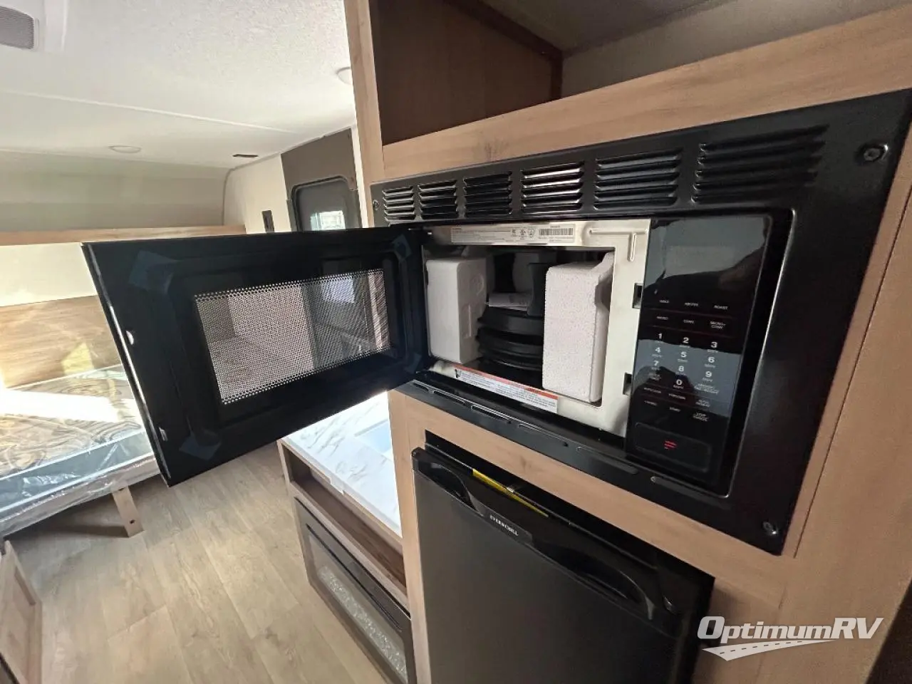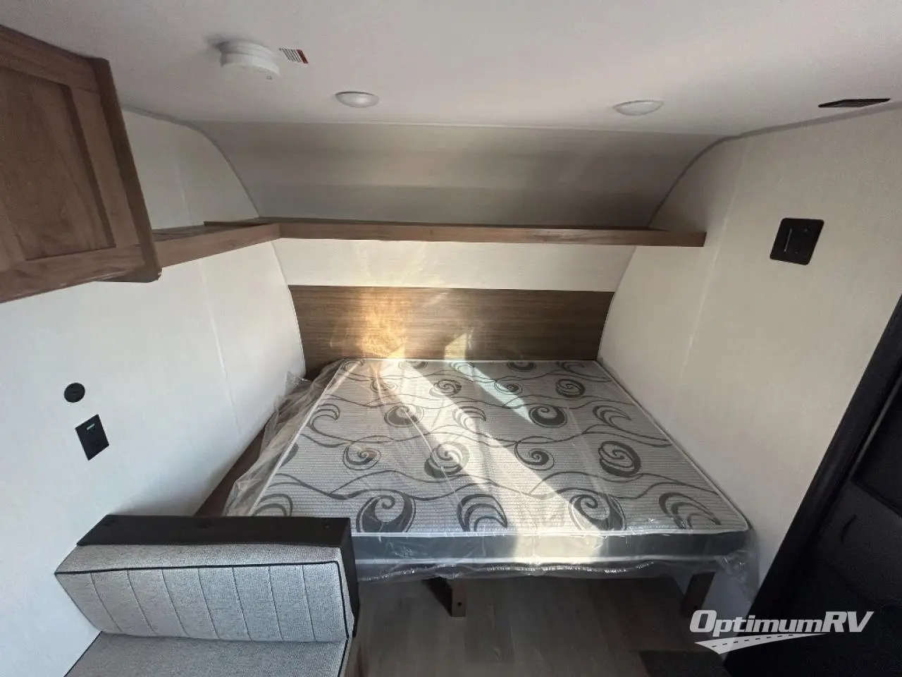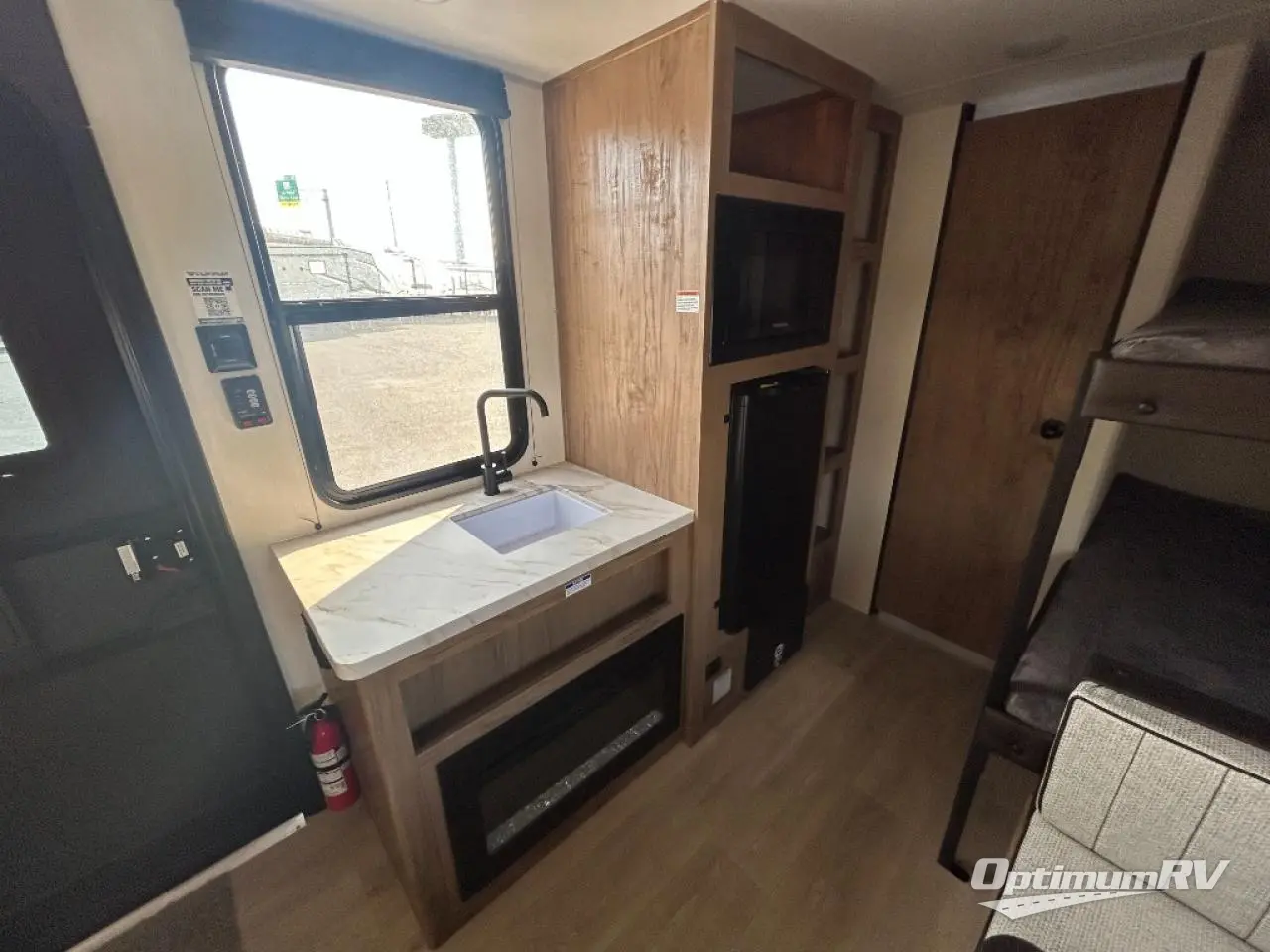 Enjoy family adventures in this all-electric bunk model which features sleeping for four or six depending on size with a queen bed up front, oversized bunks in the rear roadside corner, and you could even convert the booth dinette to sleep more. Inside, you will find ample storage with overhead cabinets and a large shelf above the queen bed, plus four shelves next to the refrigerator and microwave/air fryer that feature decorative storage bins for your things. Use this space for pantry items, towels, or clothing storage. There is even a fireplace below the counter and sink to bring you a bit of heat on those chilly nights. On the outside, you will also find a 12' awning and plenty of outside storage for your camping gear, plus more!