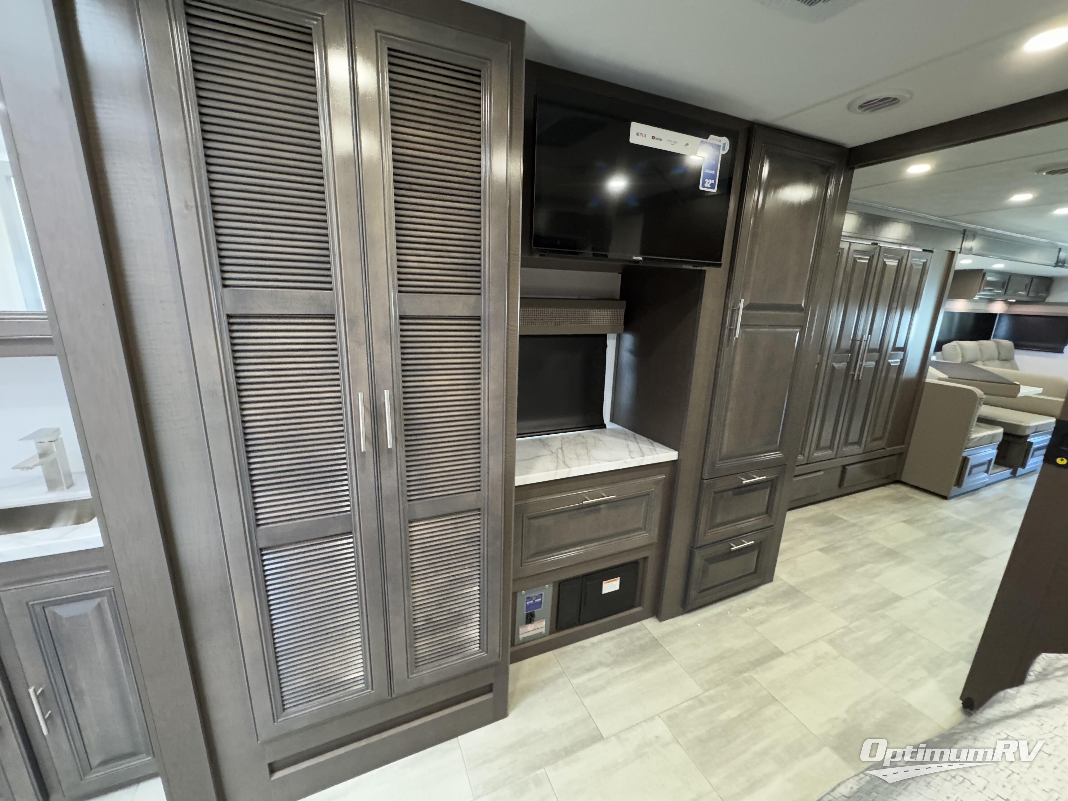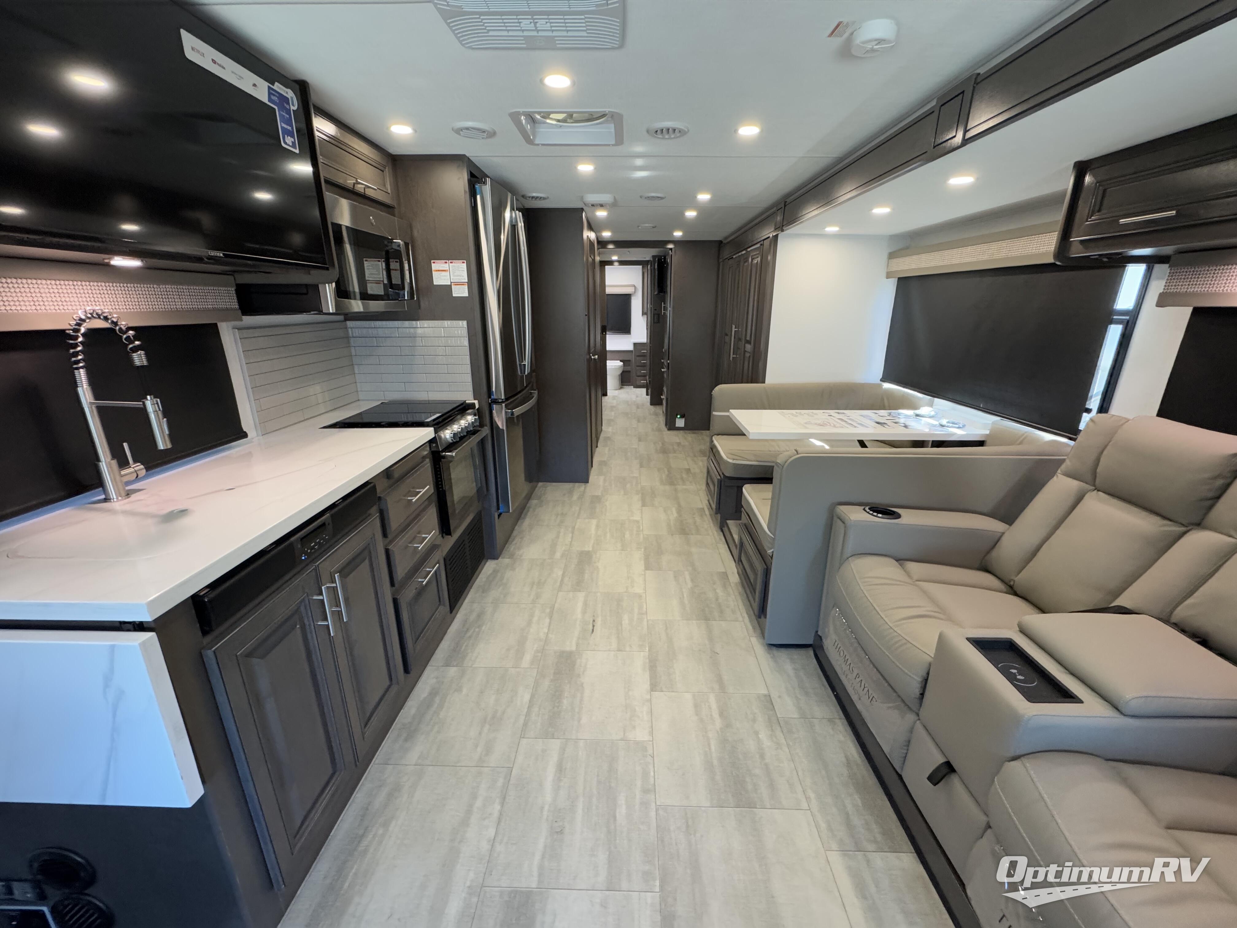 You won't have to search far for comfort in this spacious coach for seven to eight! The little ones will love having bunk beds to sleep on, plus there is a full bath right across the hall for convenience. The master bedroom with a king bed slide out will have you feeling right at home, and the second full bath includes ample counter space to set out your necessities. Everyone can meet in the main living area to relax on the hide-a-bed sofa, or you can choose the optional power theater seats if you don't need more sleeping space. You will surely never get bored with a 40" LED TV in the living room, 32" LED TV in the bedroom, plus a 40" LED TV outdoors with a radio and exterior speakers!