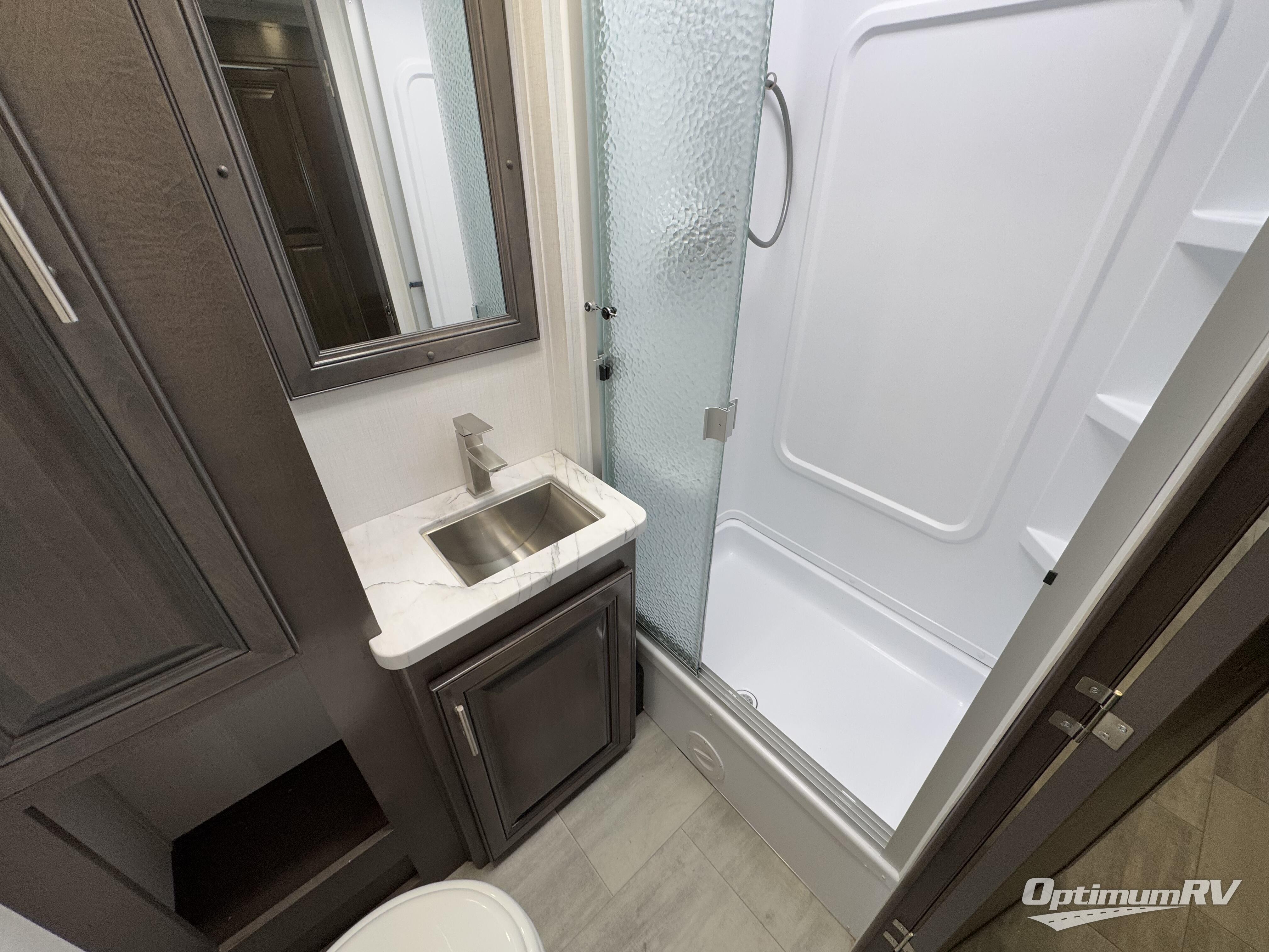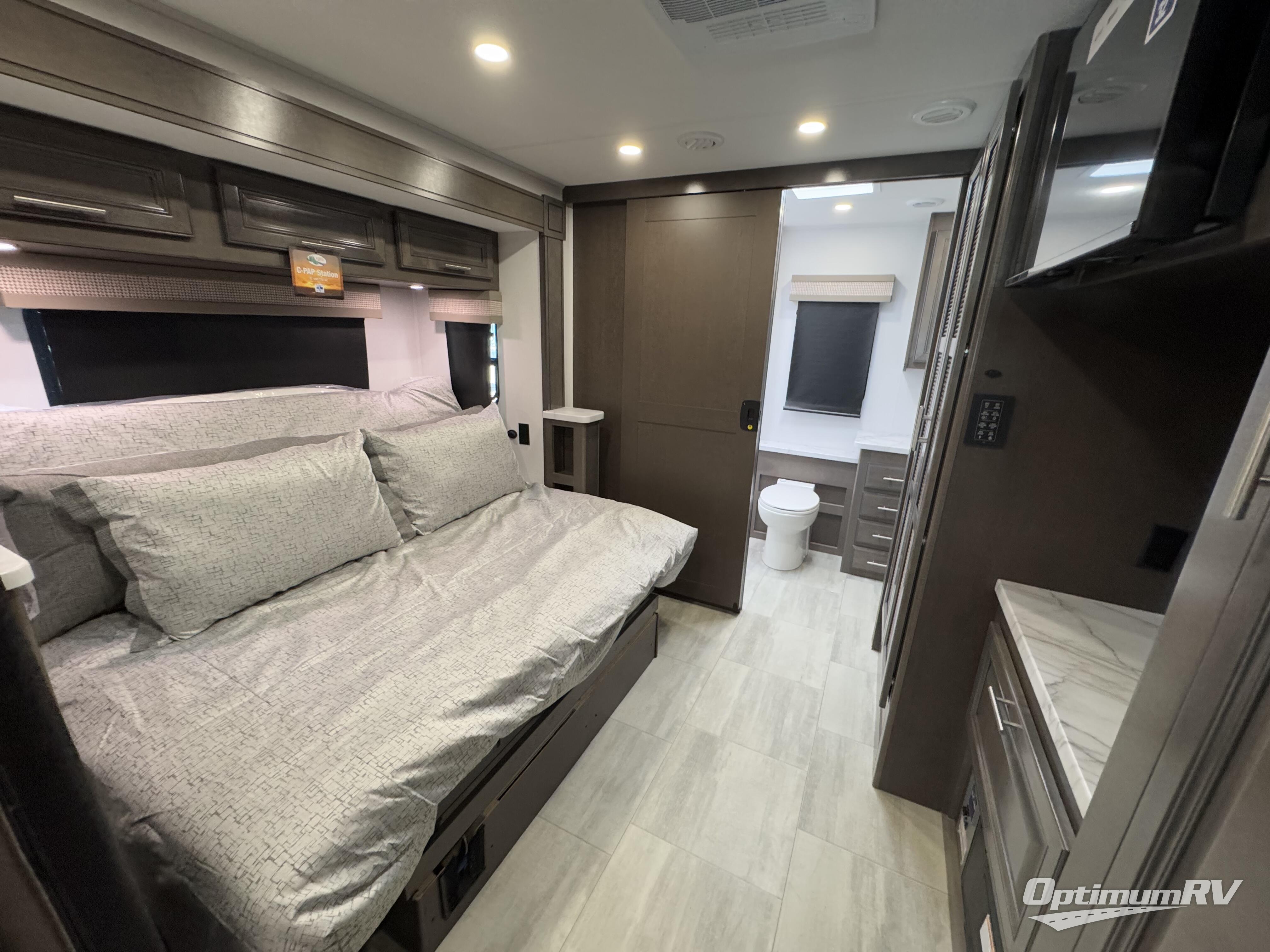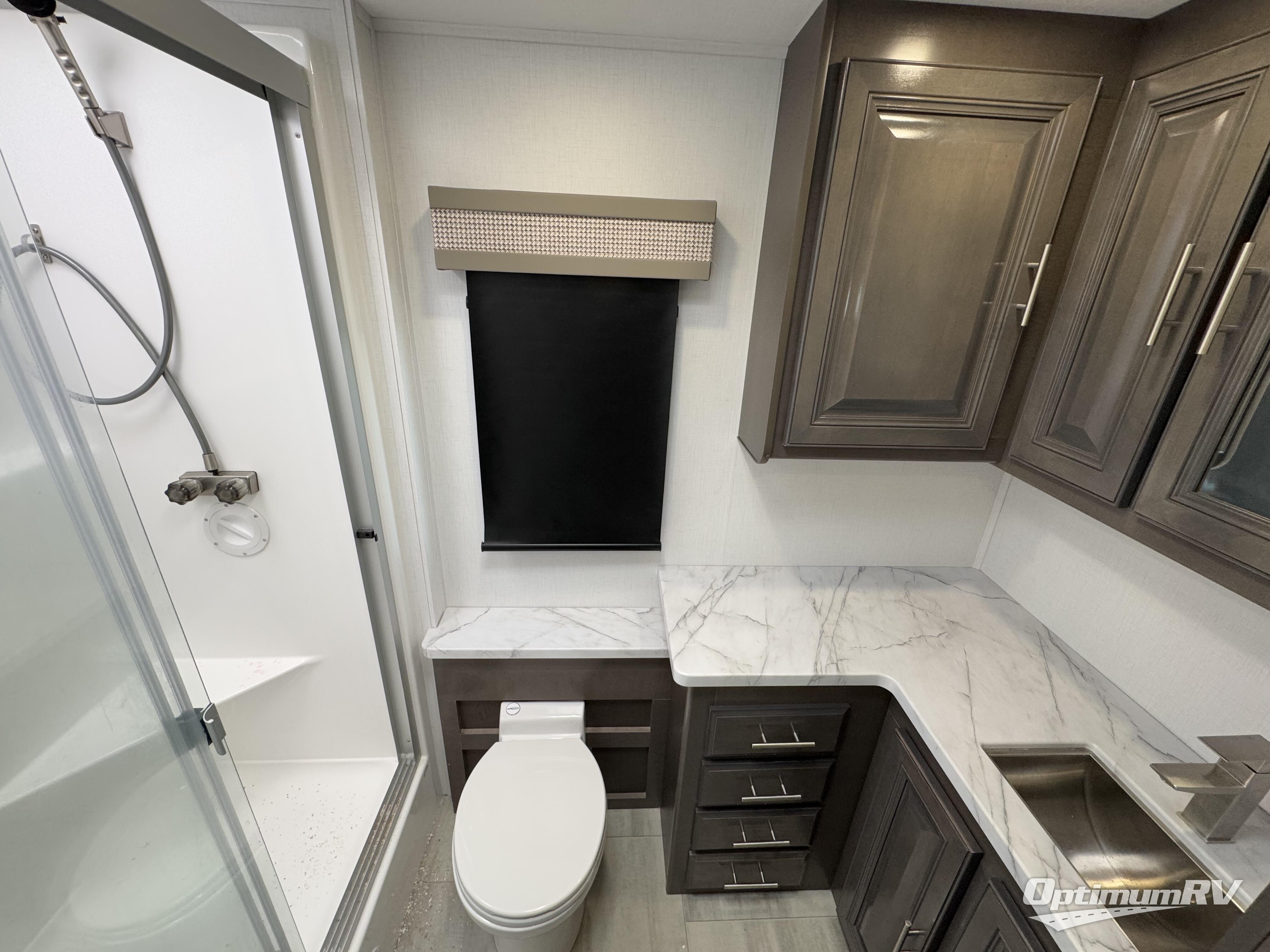 A spacious design and true luxury come together to create these Forest River Georgetown 5 Series Class A gas motorhomes! Their solid surface kitchen countertops, day and night shades throughout, and designer bedspread will have you feeling right at home. The color side and rear cameras help to prevent any dings or bumps while you travel, and the automatic hydraulic leveling jacks will keep your unit leveled where ever you set up. Durable construction consists of a crowned roof, 2" aluminum framed vacuum bonded gel coated sidewalls, plus high density block foam insulation that will allow you to travel in all seasons. You will appreciate the 50 Amp service, two house batteries, and 6,000 watt Yamaha generator to keep you powered up. An outside shower is also included on all models, along with rotocast storage compartments with drains, a power awning, and so much more!