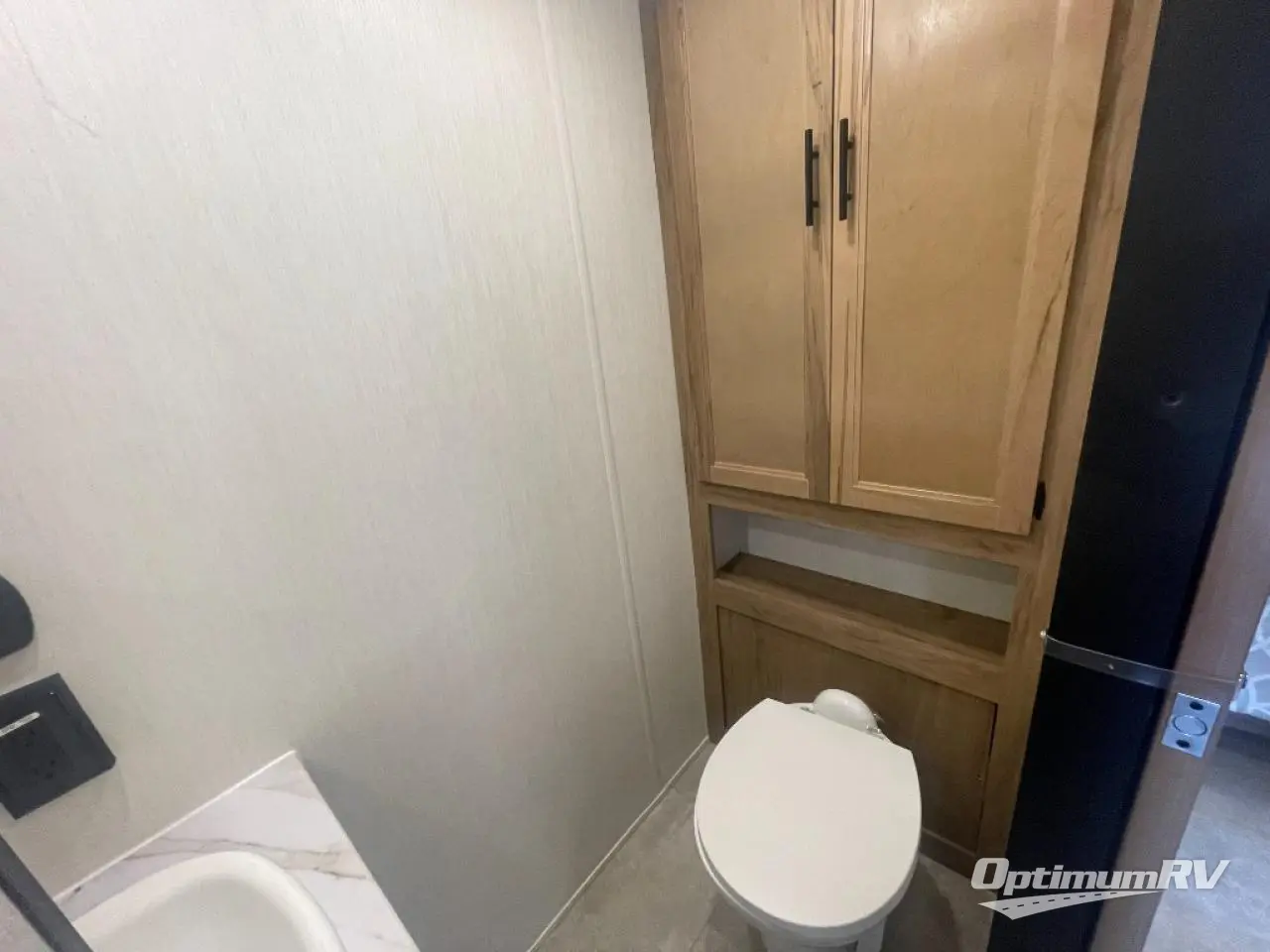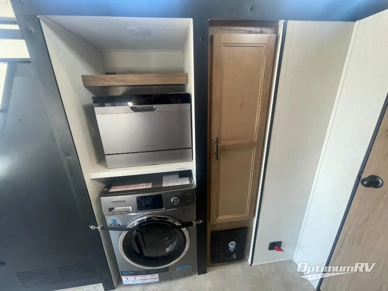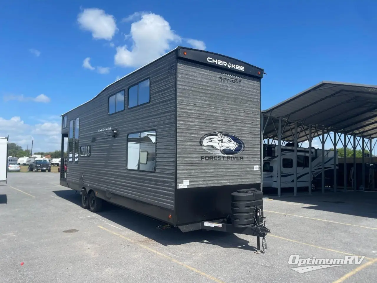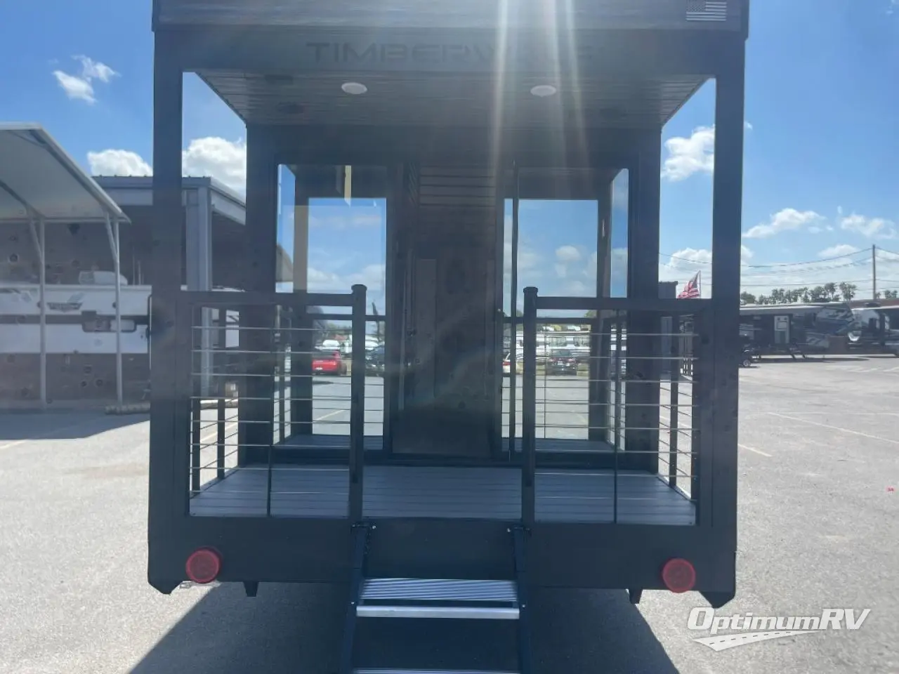 This model is similar to Timberwolf 16ML but larger! A bigger bathroom, king bed in the lower master, and two queen bunk mats in the upper loft. There is an 18 cu. ft. refrigerator so you can stock up for a week long vacation. There is also a sofa that can transform into added sleeping for guests, and there is a high top table that can collapse against the wall with two stools which is perfect for snacks or a game, but can also be out of the way when you don't need it. A ladder allows access into the upper front loft that is over the covered patio. The bathroom below is split with a shower on one side, and a private toilet area and sink opposite. And the view is amazing from just about anywhere inside.