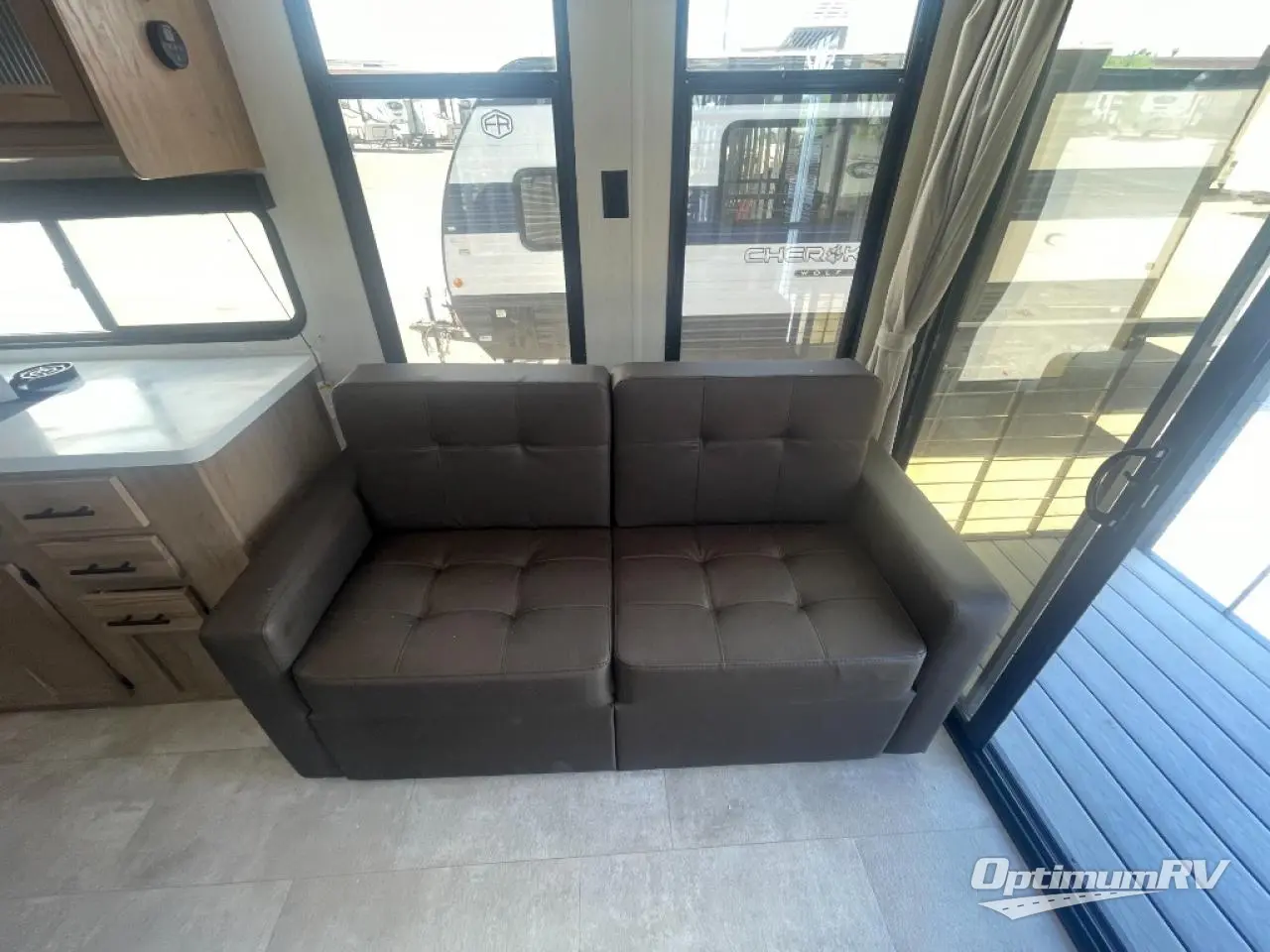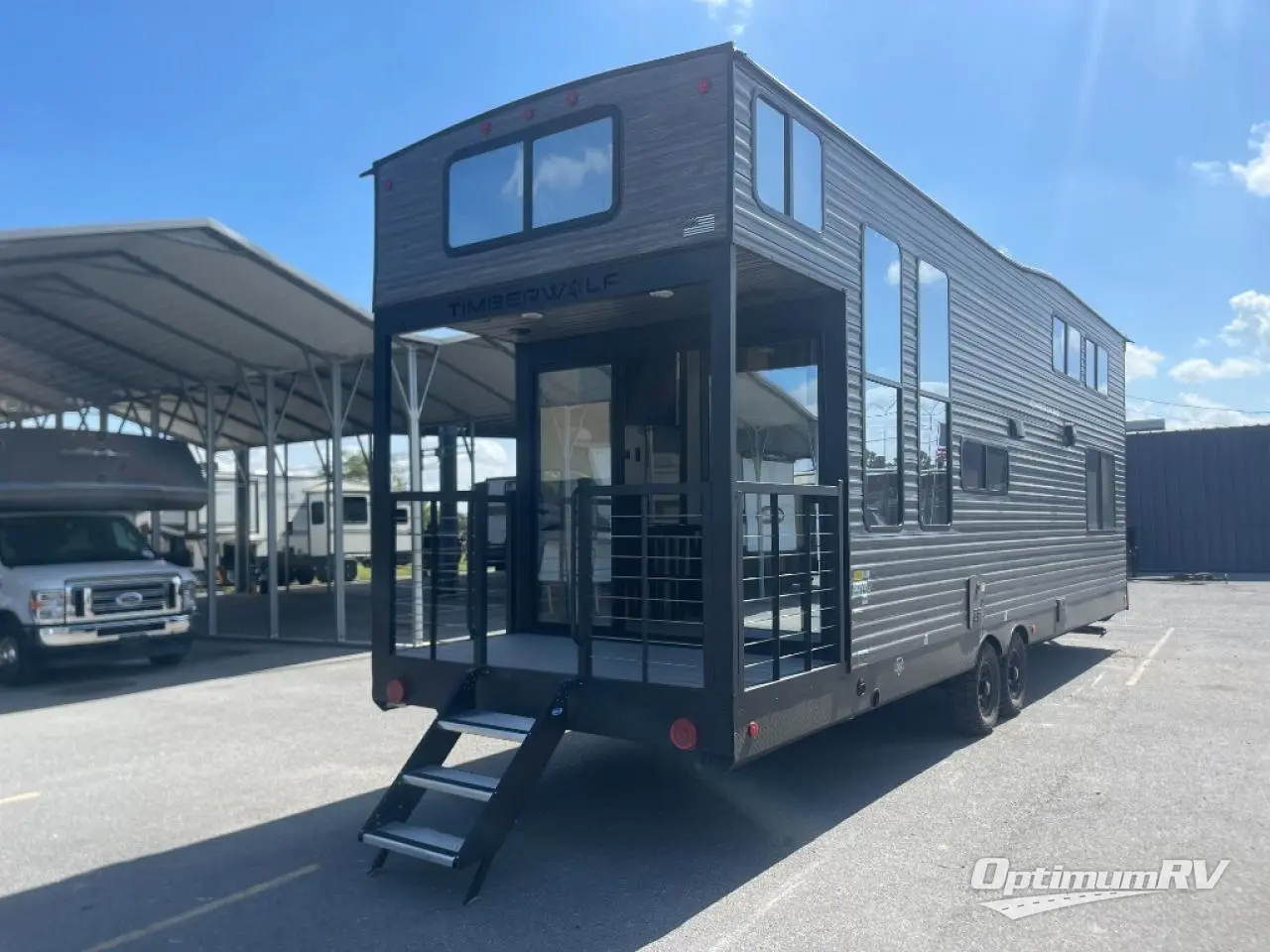 Enjoy comforts of home wherever you decide to roam in a Timberwolf destination trailer by Forest River. The seamless roofing membrane with heat reflectivity and power gear frame technology provide a durable foundation to your RV. You will also appreciate the exclusive solar thermo controlled reflective tinted safety glass windows, tire pressure monitors, and an on-demand tankless water heater to make extended stays easier than ever. Inside, the night shades will provide your crew with privacy, while the LED lights illuminate your space. There are also light filtering sheer shading premium zebra blinds, along with a premium bedding ensemble and comforter, USB charging stations, a supersized central A/C unit, and many more comforts!