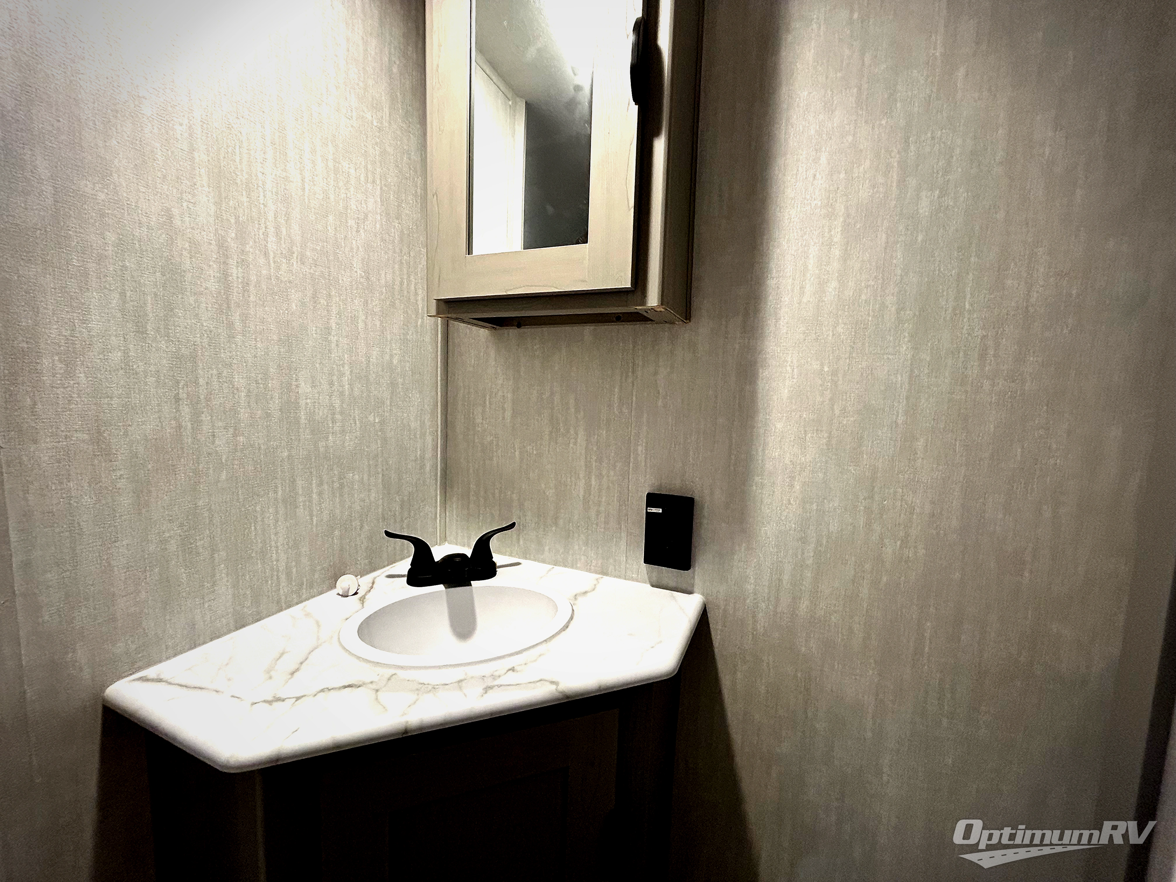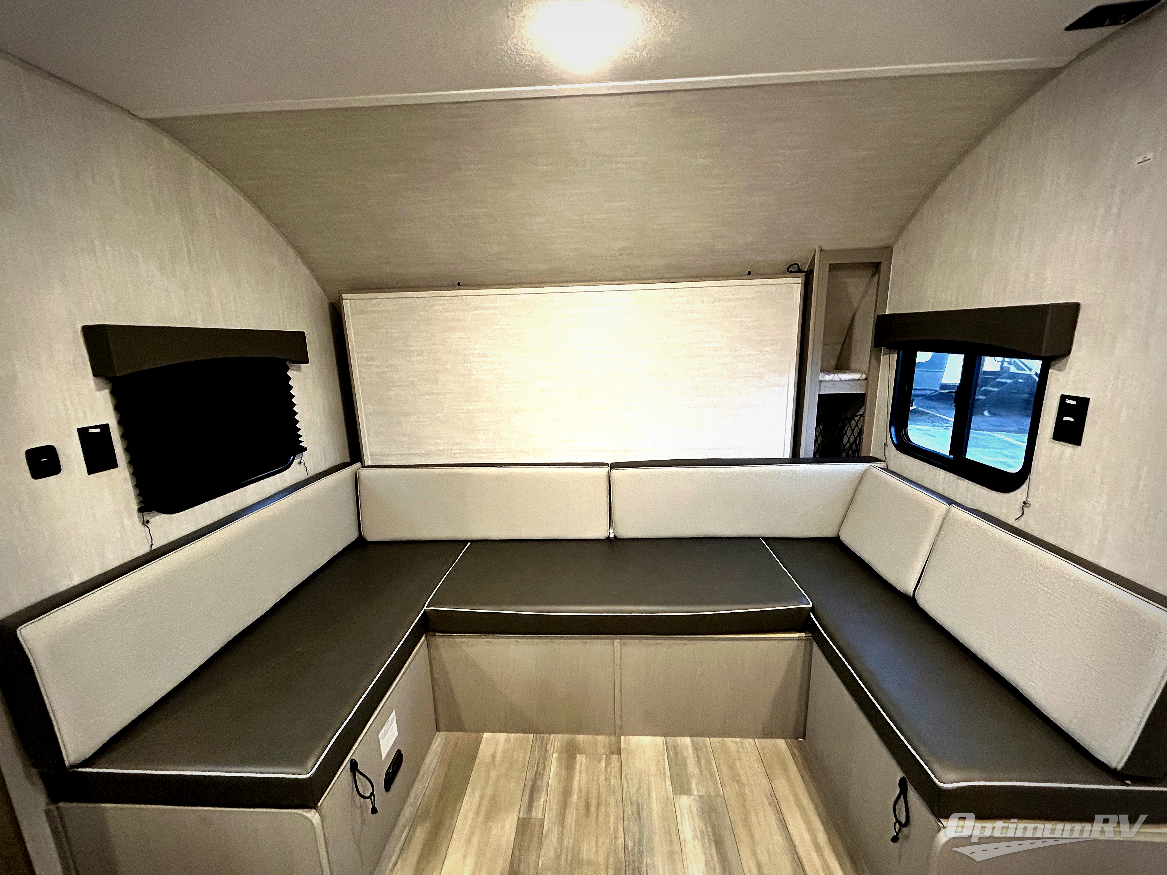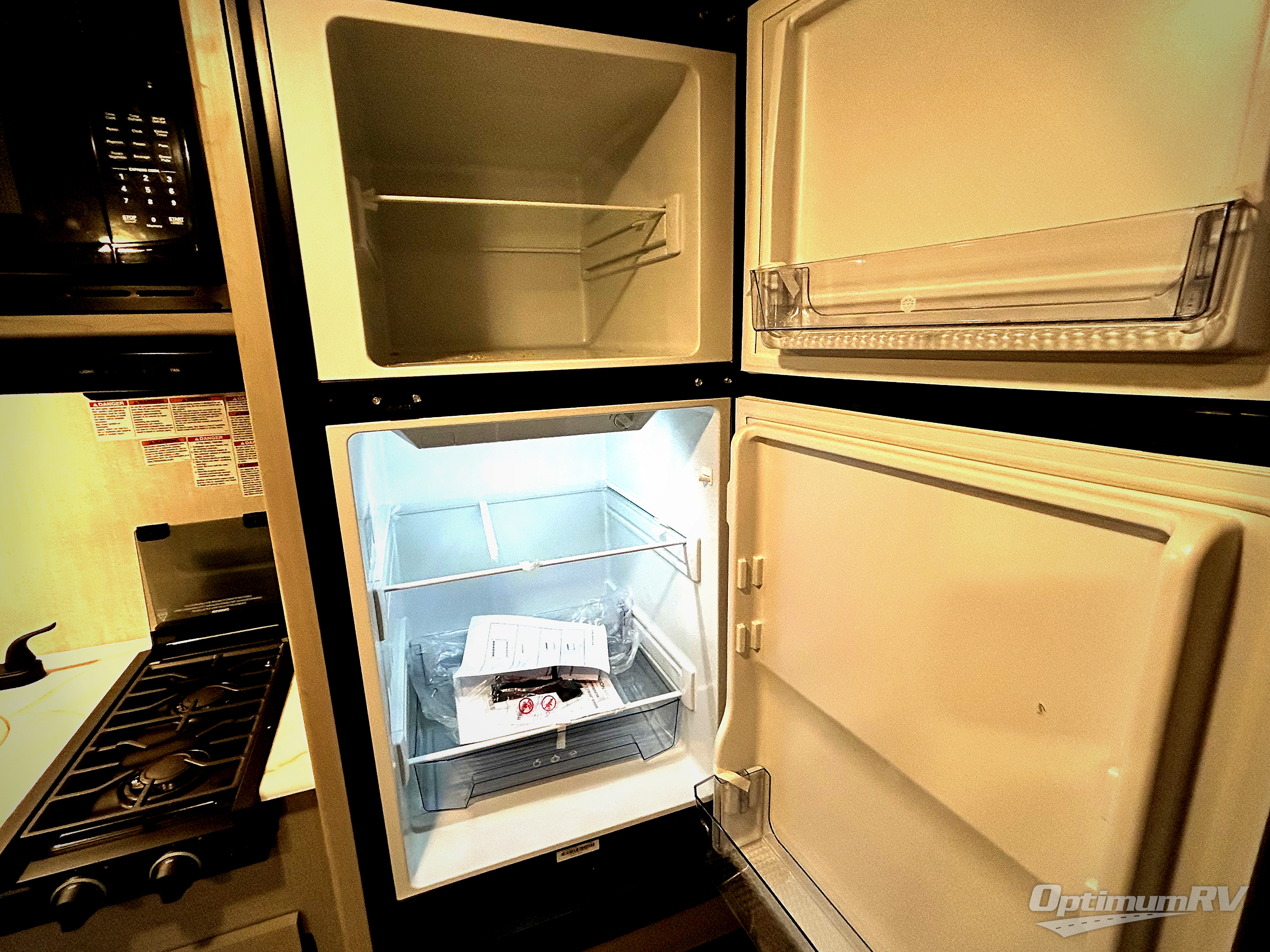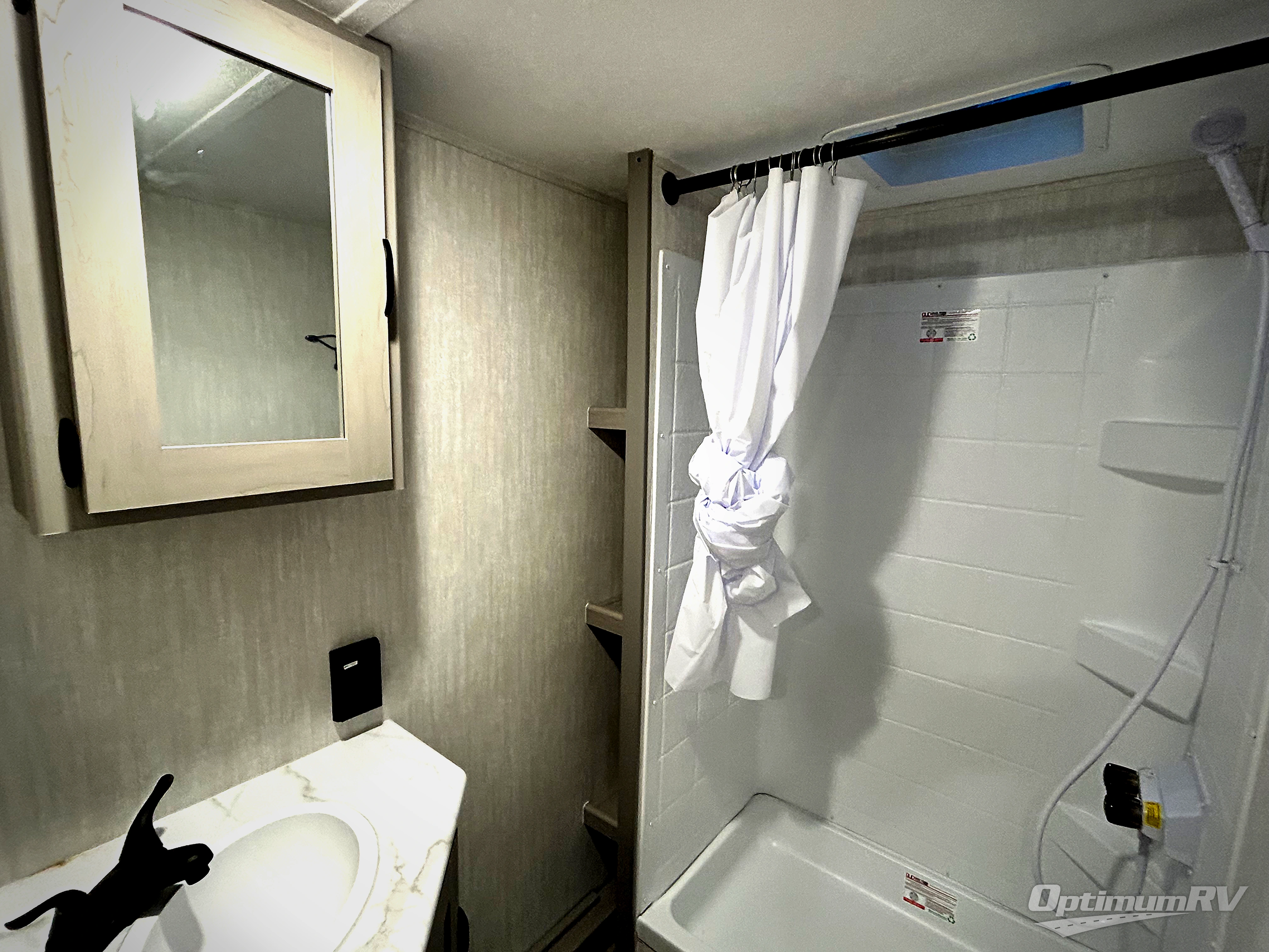 This versatile trailer easily sleeps a family of six and provides plenty of seating thanks to the versatile front hidden Murphy bed and U-dinette. During the day, the U-dinette provides seating for the whole gang. At night, move the table and cushions and flip down a comfortable bed. There is a jackknife sofa slide, and opposite you will find the kitchen area allowing you to easily whip up meals and snacks using the two burner cooktop, sink, overhead microwave oven, and refrigerator. A pantry cabinet is also available for all of your dry goods. At the rear of this unit, you will find sleeping for four on the double-size bunks along the roadside corner, and a full bath with a shower, toilet, and vanity with a sink and medicine cabinet along the curbside corner.