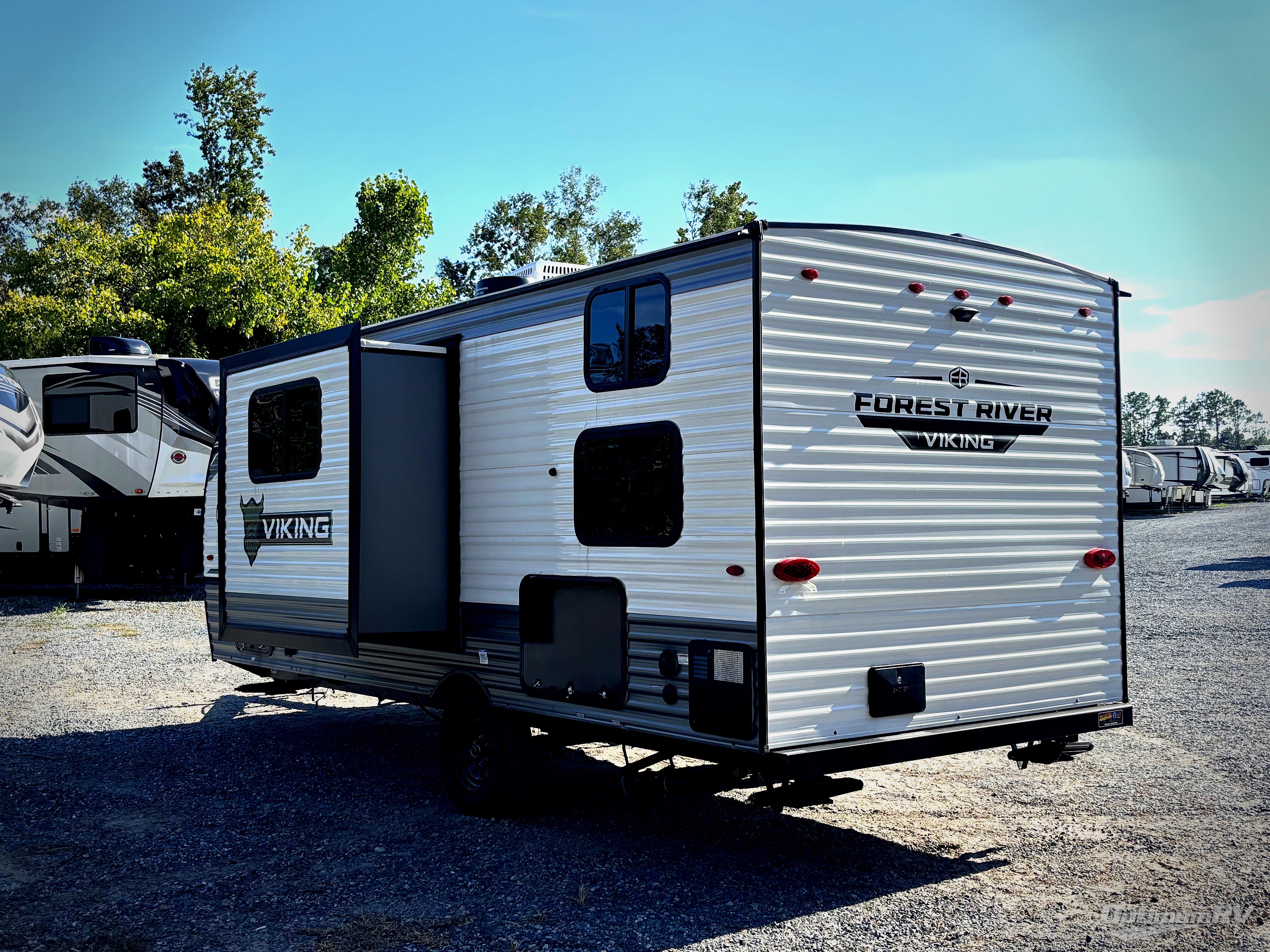 With any Forest River Viking 4K Series travel trailer, you can experience affordable camping with your family with the same comforts and quality found in bigger trailers. Each is built on an 8' wide frame with aerodynamic engineered front profile for easy towing. There are four stabilizing jacks to make camp setup easy while keeping your trailer secure while in camp, plus electric brakes for a safer tow. Inside, there is kitchen backsplash, a 12V refrigerator, sink covers for added counter space, and a foot flush toilet, plus more. Choose an easy to tow Viking 4K Series and start enjoying the great outdoors without breaking your budget!
