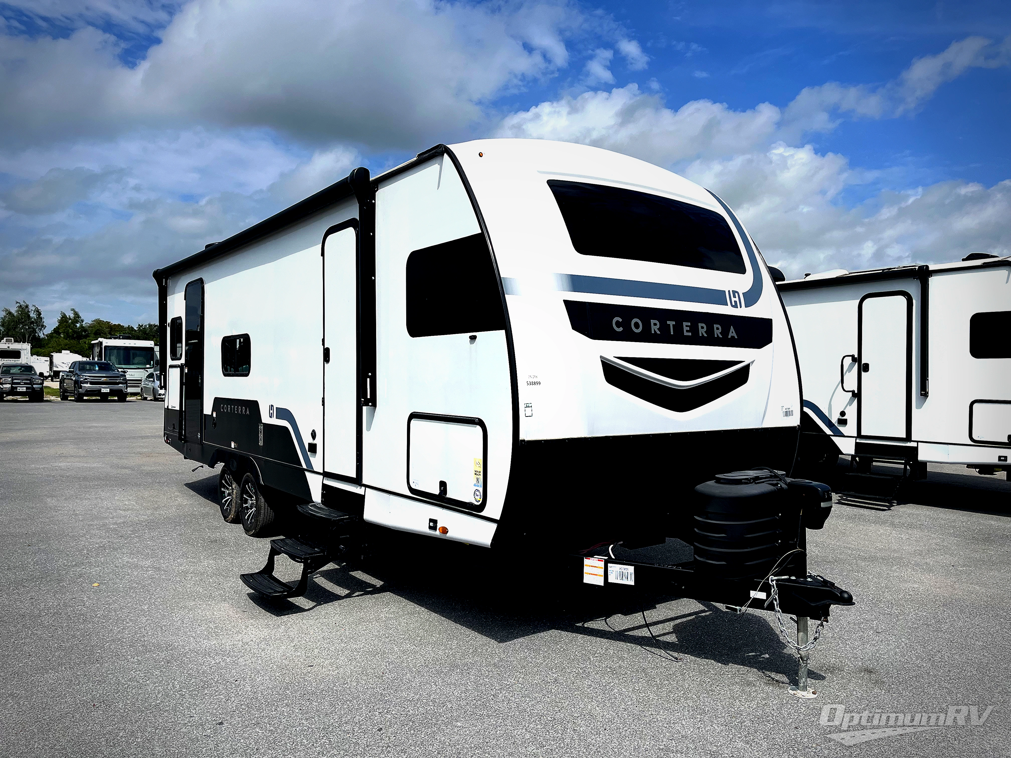 Explore the open road with any one of these Heartland Corterra fifth wheels or travel trailers! They are built with a 8" I-beam, Azdel Onboard composite sidewalls, and a heated and enclosed underbelly to protect your unit's vitals. The Vault XL and color coded wiring makes it easy to navigate through it and the exclusive TRIO airflow AC system ensures maximum cooling to keep you cooled off on a hot summer day. You can safely enter and exit the unit through the deluxe tinted glass entry door with Extended Safe-T entry grab handle. The interiors abound in luxury with hidden storage throughout, a wine and/or coffee bar for entertaining, and a residential appliance package for home cooked meals everywhere you go. Come find your favorite one today!