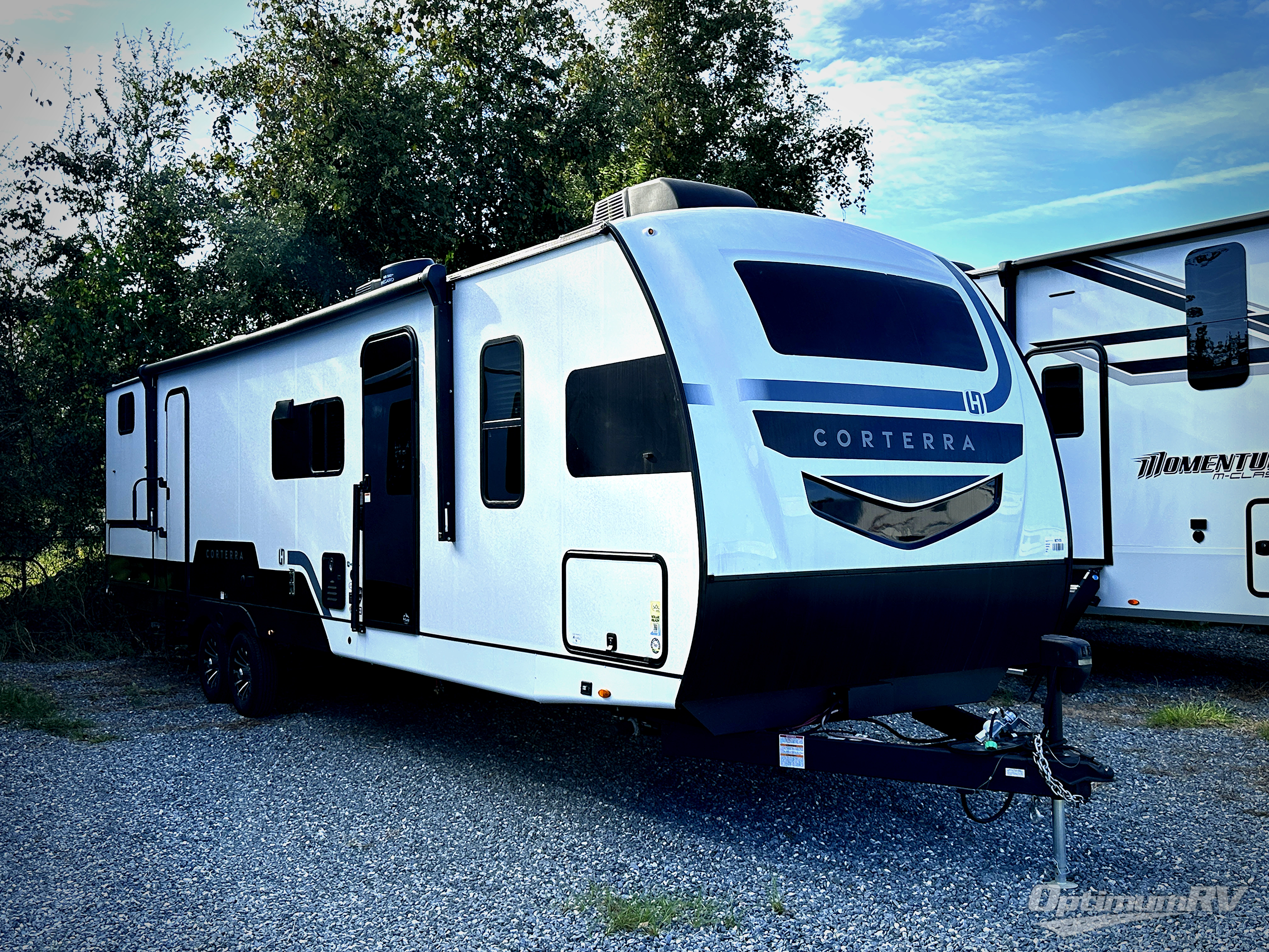 Explore the open road with any one of these Heartland Corterra fifth wheels or travel trailers! They are built with a 8" I-beam, Azdel Onboard composite sidewalls, and a heated and enclosed underbelly to protect your unit's vitals. The Vault XL and color coded wiring makes it easy to navigate through it and the exclusive TRIO airflow AC system ensures maximum cooling to keep you cooled off on a hot summer day. You can safely enter and exit the unit through the deluxe tinted glass entry door with Extended Safe-T entry grab handle. The interiors abound in luxury with hidden storage throughout, a wine and/or coffee bar for entertaining, and a residential appliance package for home cooked meals everywhere you go. Come find your favorite one today!