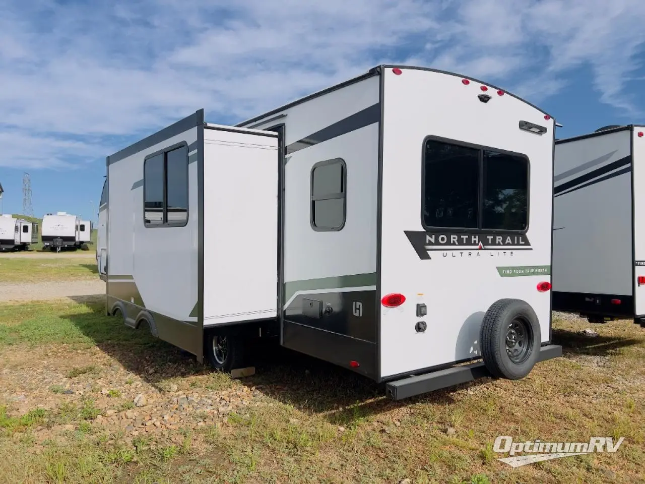 When you choose a North Trail Ultra-Lite travel trailer by Heartland you are choosing comfort, convenience, and quality craftsmanship at its best. The block foam brick insulation, enclosed and heated underbelly, plus Weather Guard thermal protection mean you can camp all year around. Each model features a Wide Trax suspension for a smooth ride, and the backup camera prep and solar prep make camping that much easier if you choose those options. Some of the other exterior features you will appreciate are the outside shower, the power stabilizer jacks and power tongue jack, and the outside speakers to keep the party going. Head inside to find stainless steel appliances, oversized windows, and premium flooring that is tear, slip, mold, mildew and cold crack resistant! You can't beat a North Trail travel trailer. Choose your favorite floorplan today!