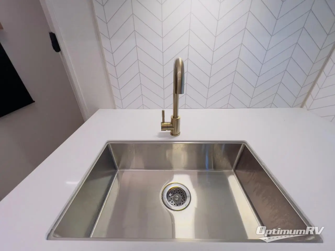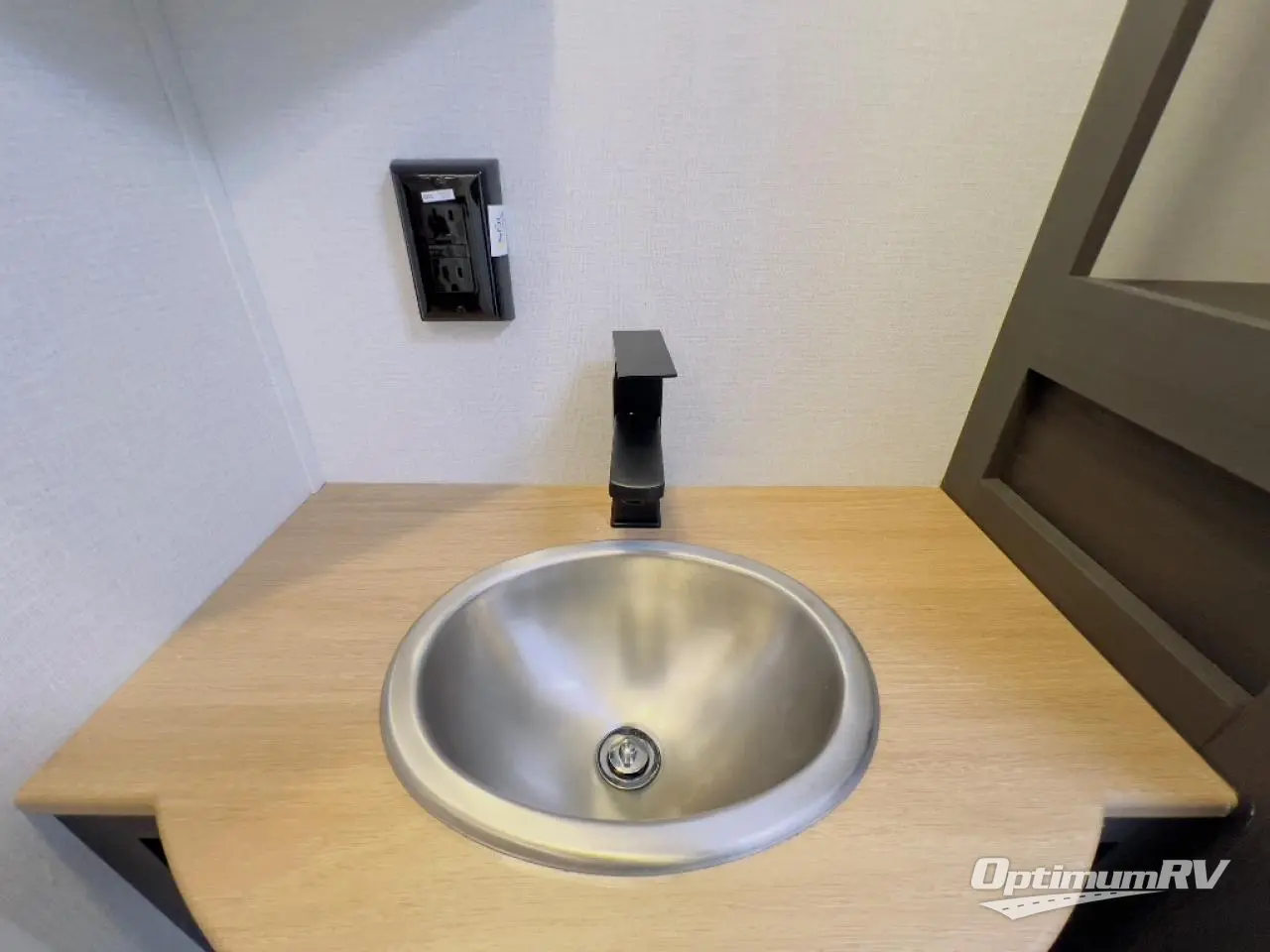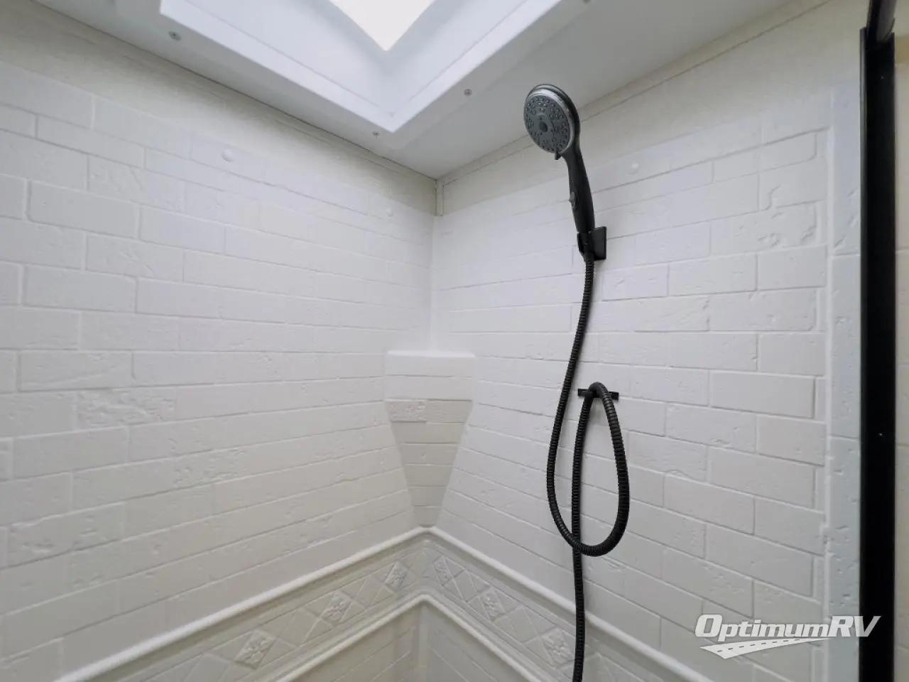 You and your spouse will love camping in this travel trailer! It features a front private bedroom with a king bed to lay your head on at night. Freshen up each morning in the full bathroom with a shower that has a skylight above to bring the outdoors inside. The chef can prepare their best home cooked meals with the three burner cooktop, conventional oven, and 10.7 cu. ft. 12V refrigerator. Enjoy all of your meals and play games at the rear U-shaped dinette, plus it can transform into an extra sleeping space for an extra guest or two depending on their size. With theater seating and an entertainment center with a fireplace, you can have a truly relaxing evening indoors!