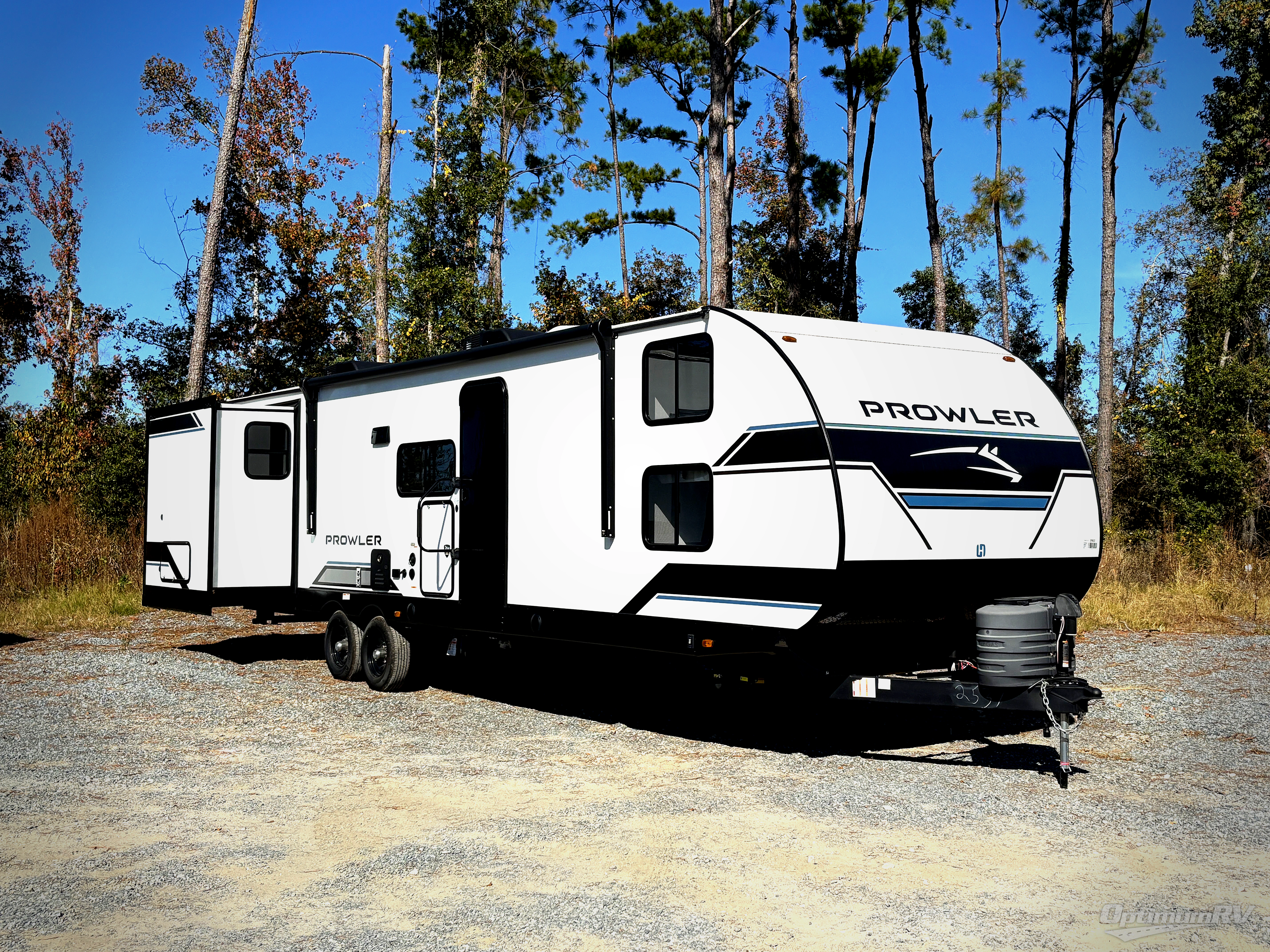 Get ready for comfortable and easy camping with the Prowler travel trailers by Heartland. These models feature durable construction with a performastructure aluminum front wall, a cambered structural steel I-beam frame, and a fully walkable roof. The MEGA bright pass-through storage features 52 cu. ft. of exterior storage with mega sized access doors, LED lights, and a finished interior to keep your gear secure. You'll fall in love with the at-home kitchen the includes Duralast countertops, a residential refrigerator, plus a stainless steel double bowl undermount sink for easy clean-up. These travel trailers also feature panoramic windows, an EZ clean interior, USB charging ports throughout, and many more comforts! Don't let the Prowler travel trailers slip away. Don't let the Prowler travel trailers slip away. Choose your favorite floorplan today!