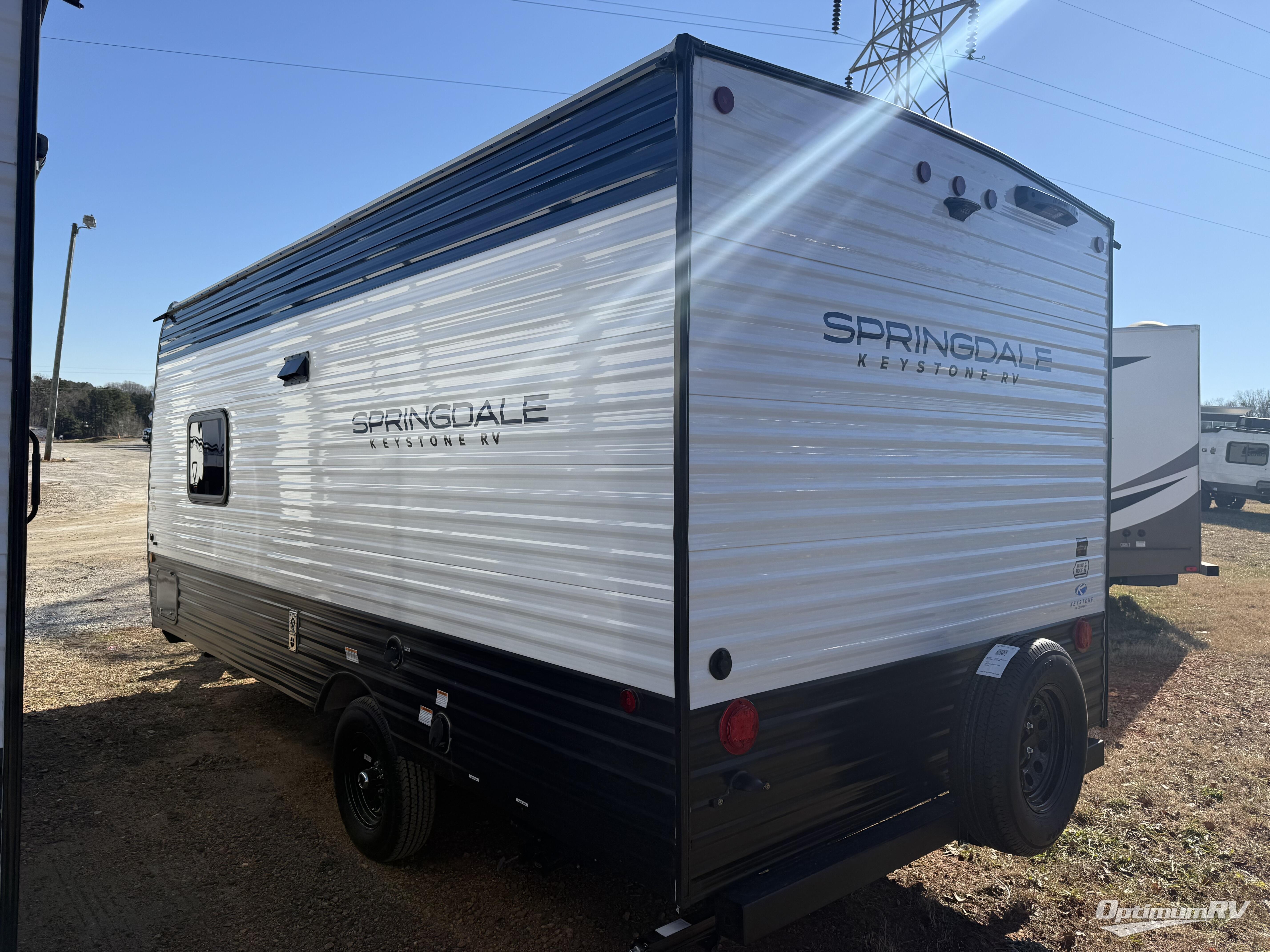With any Springdale Classic Mini travel trailer by Keystone, you will enjoy lightweight towing thanks to their single-axle! You'll find the XL entry assist handle will make entering and exiting your unit easier than ever, and the power awning will provide protection from the sun as you relax in your camp chairs outside. Each model includes blackout night shades, solid wood cabinet doors and drawers, a shower skylight for more standing room, plus many more interior comforts. There is also a 5,000 BTU sidewall A/C and 20K BTU furnace to keep you comfortable, plus a Girard tankless water heater for endless hot showers!