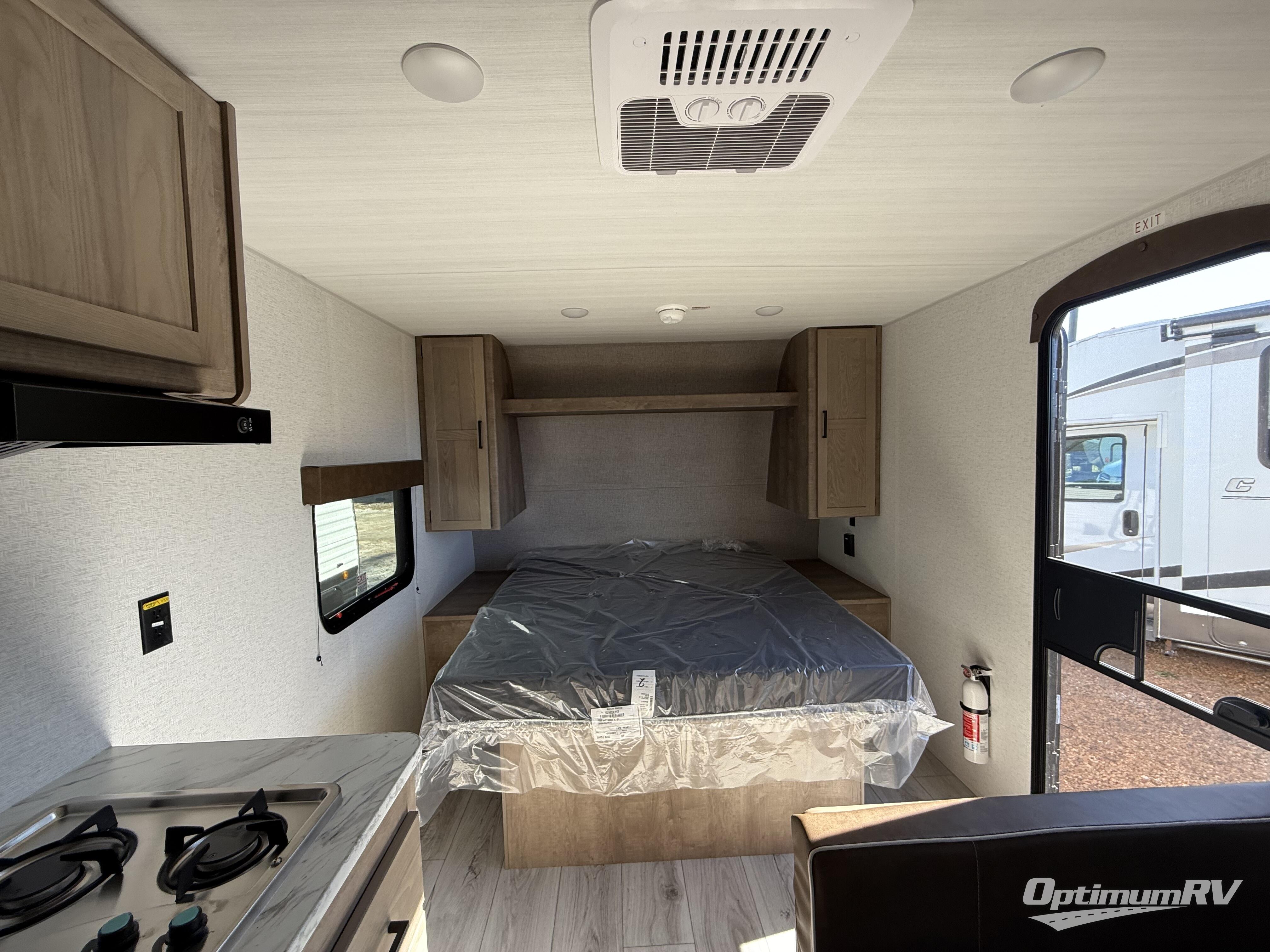 This cozy trailer for two or four will have you out enjoying nature easily. There is a queen bed for you, and the booth dinette can easily transform into a bed for one or two more campers if needed at night. The rear private bath features a shower and vanity with sink, plus toilet so no late night trips to the campground bathroom. There is ample storage in overhead cabinets on both sides of the trailer, as well as dual closets and nightstands on either side of the bed. A 10' awning offers even more living space outside. Grab a couple of camp chairs and enjoy hanging out with your campground neighbors or enjoying a campfire.