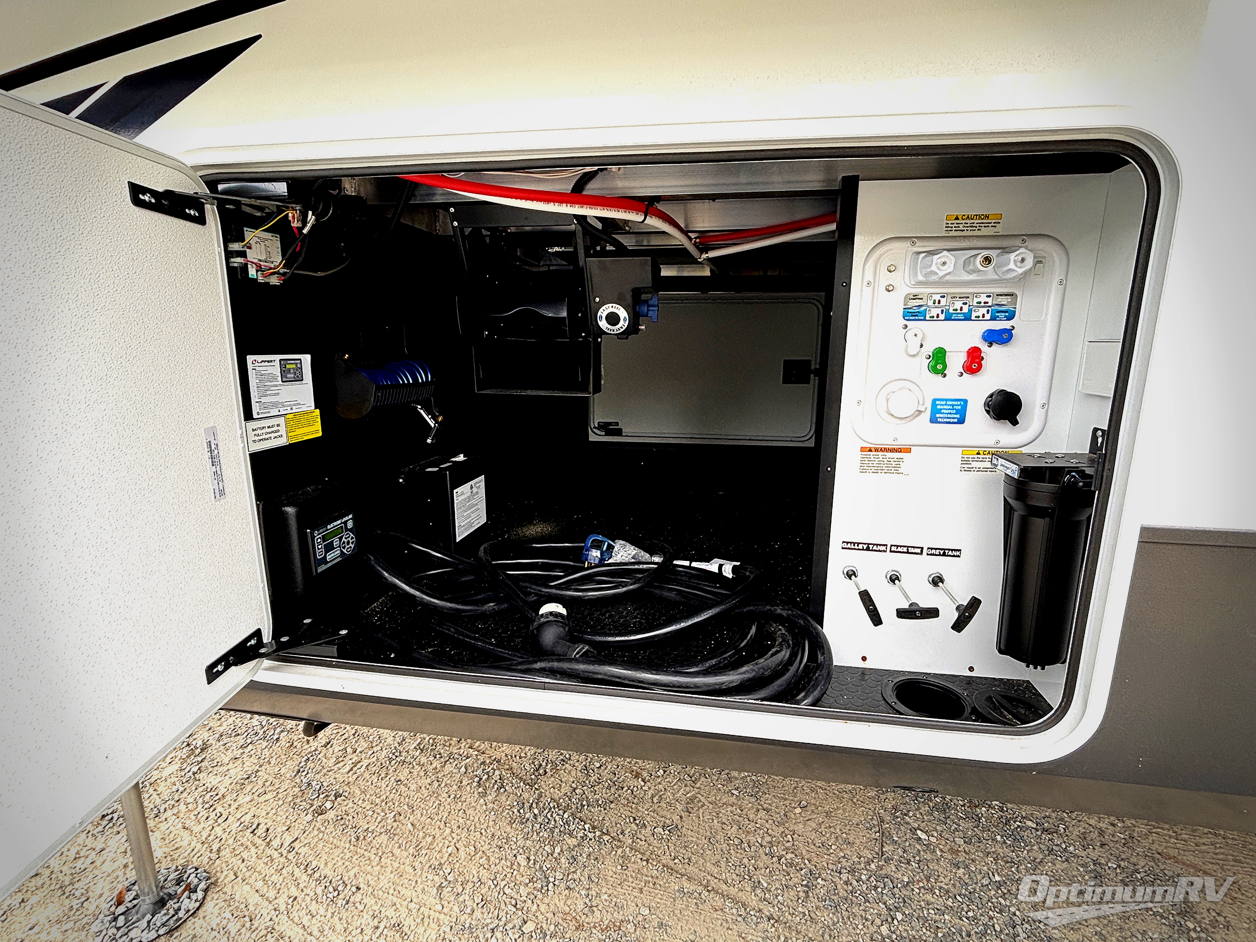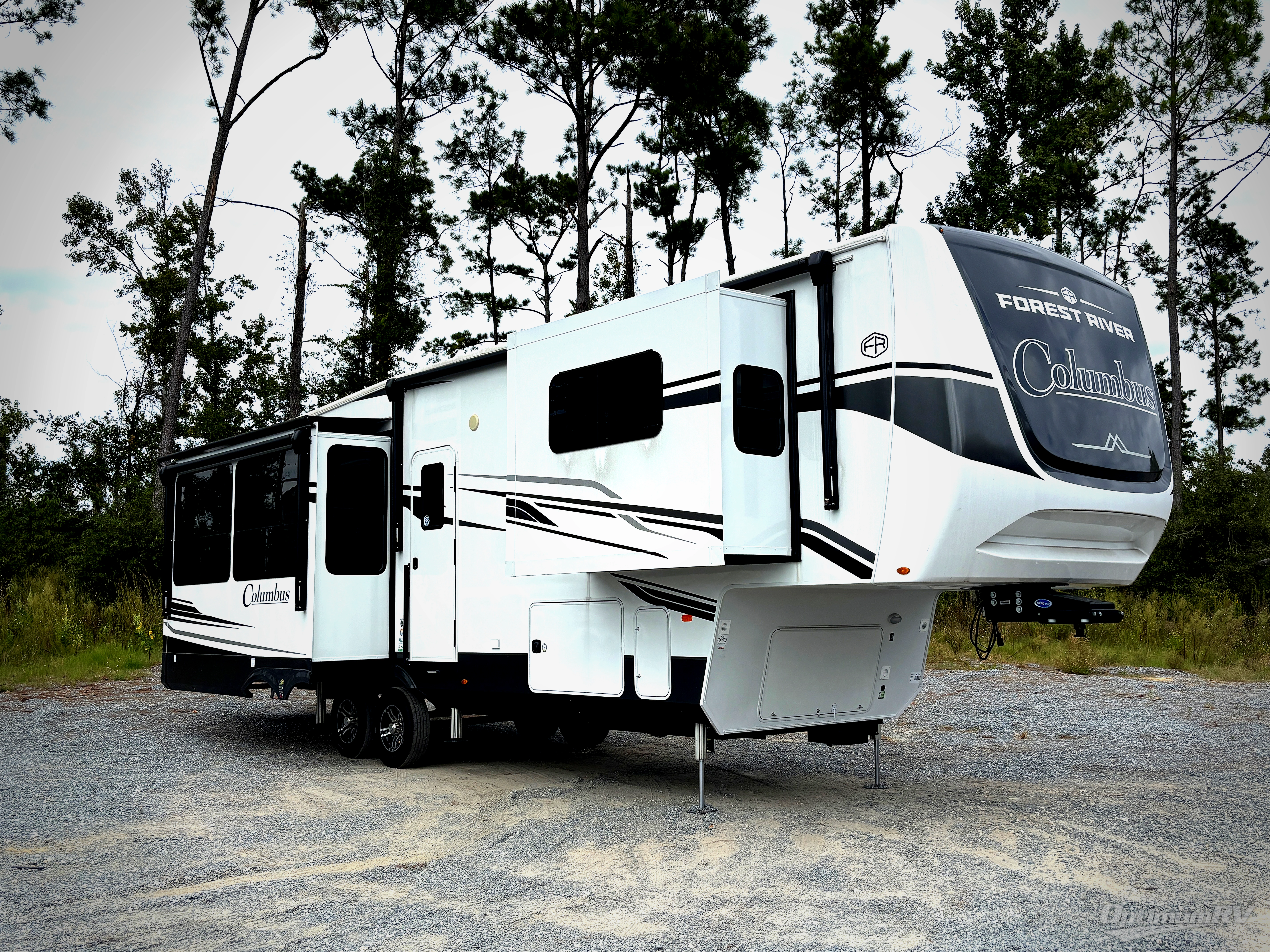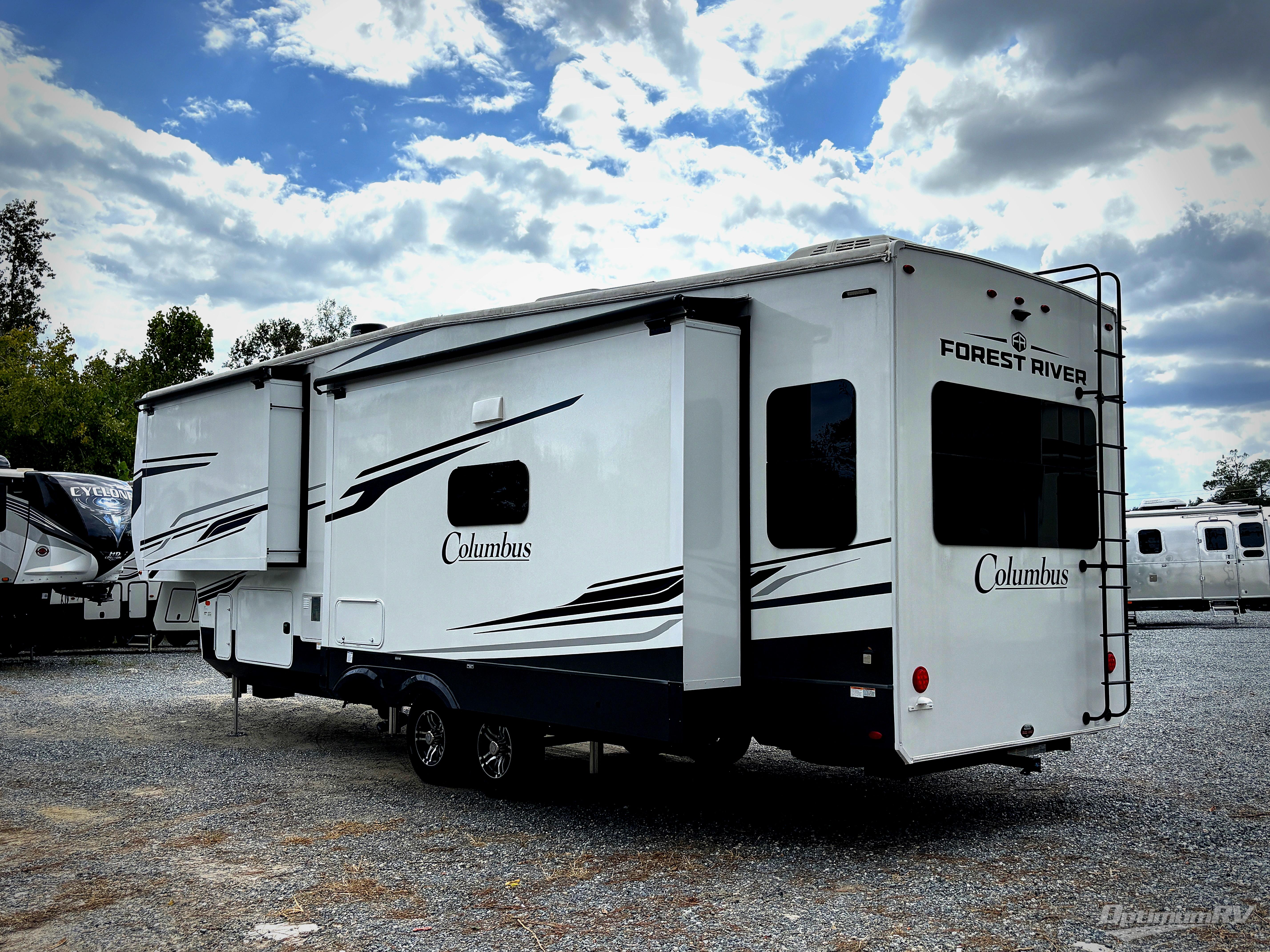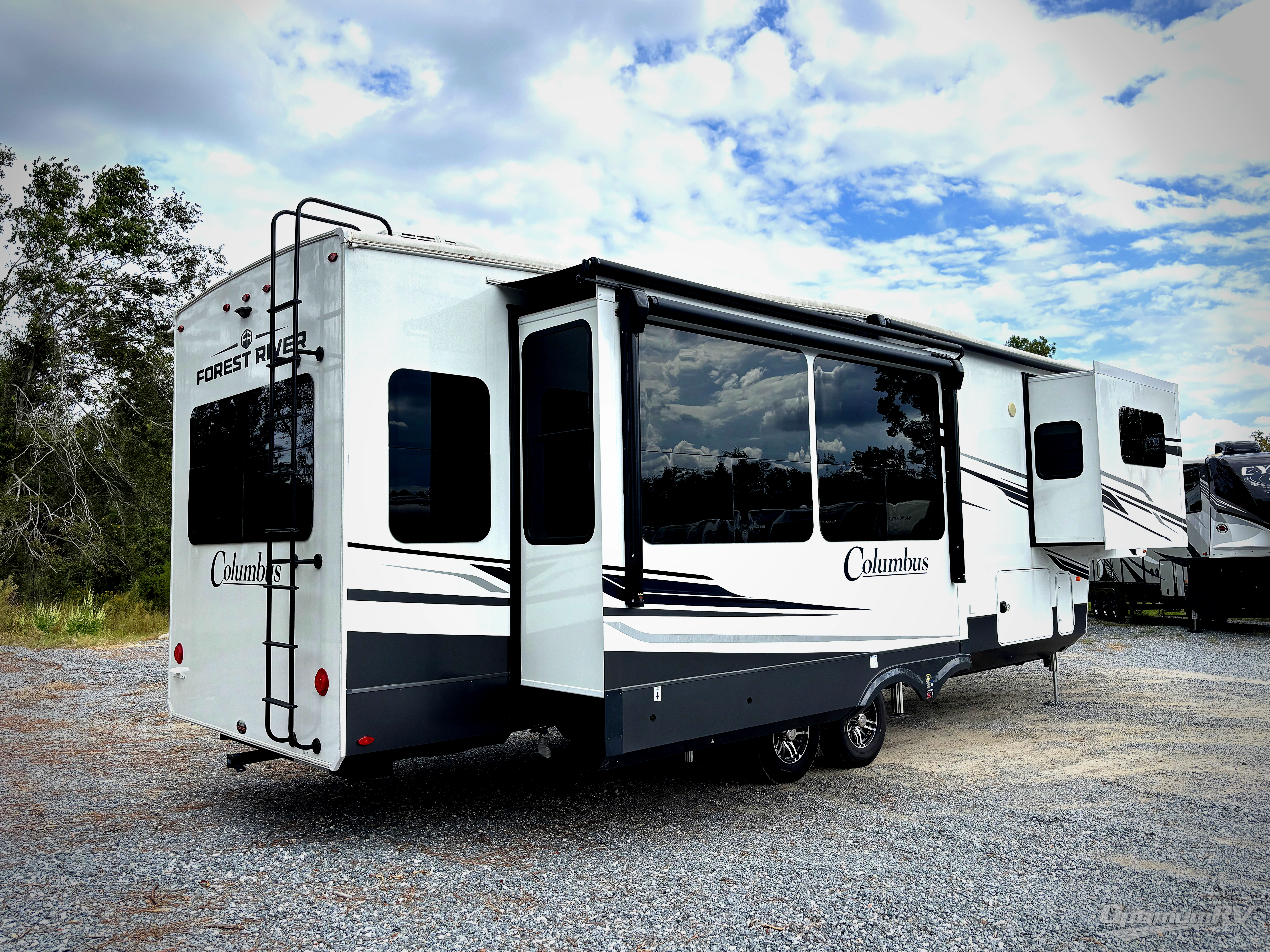 Experience a different camping life with residential furnishings and high end features in each one of these Palomino Columbus fifth wheels! The 101" wide body lets you walk around more throughout and the all-welded aluminum-frame superstructure has a snap-in ceiling molding to hold up through every adventure. Don't leave any of your gear behind either when you can easily store it in the climate controlled drop frame storage area. On the exterior, you'll find a heated utility convenience center, an outside sprayer to keep the dirt outside where it belongs, and magnetic compartment door holds to keep them from falling on you as you grab your items. Plus, there are some modern features that will really seal the deal like the Wi-Fi Booster with 4G LTE capability prep, upgraded true solid-surface countertops, power theater seating with USB charging, and a 260W solar panel for off-grid camping!