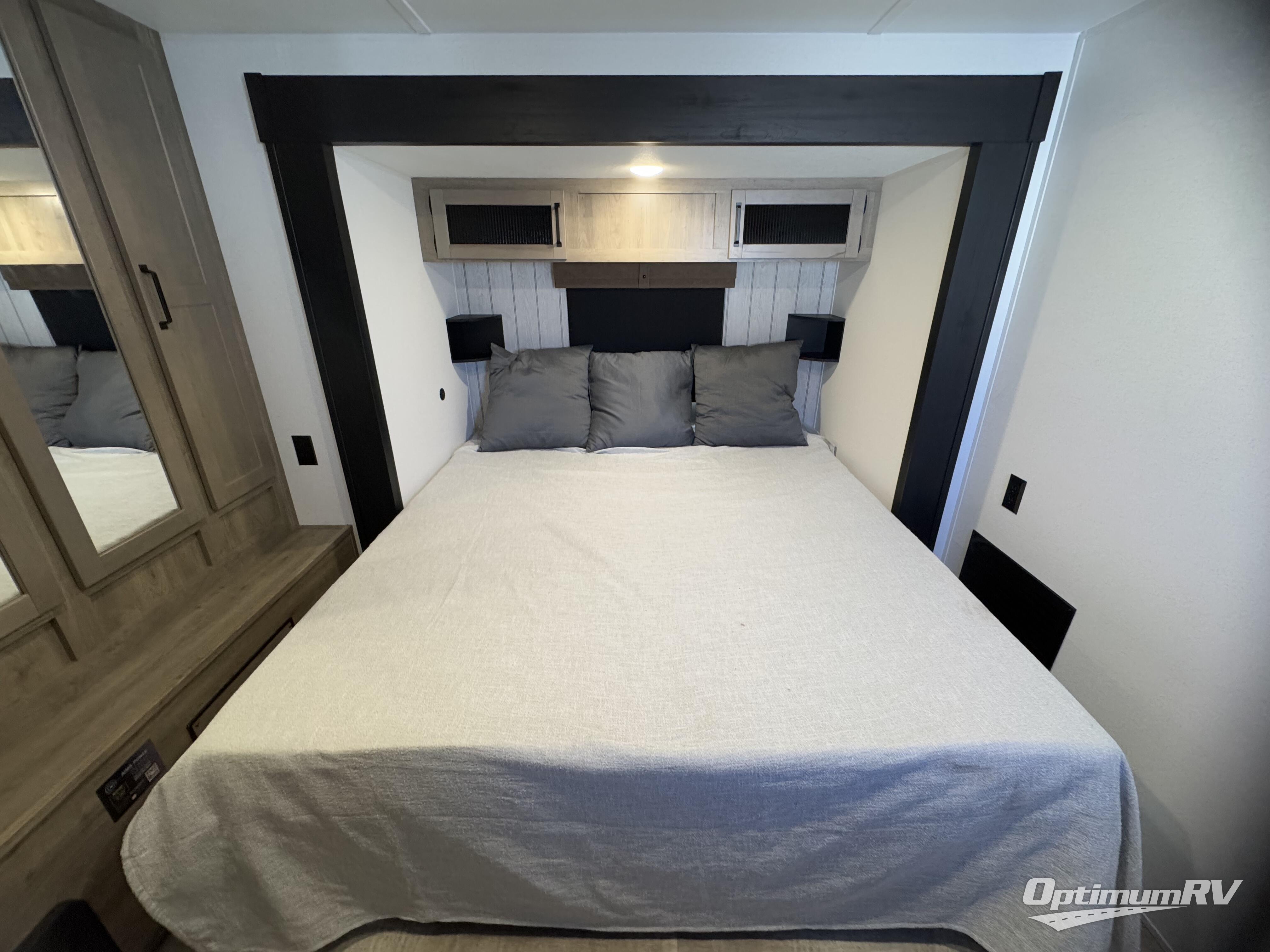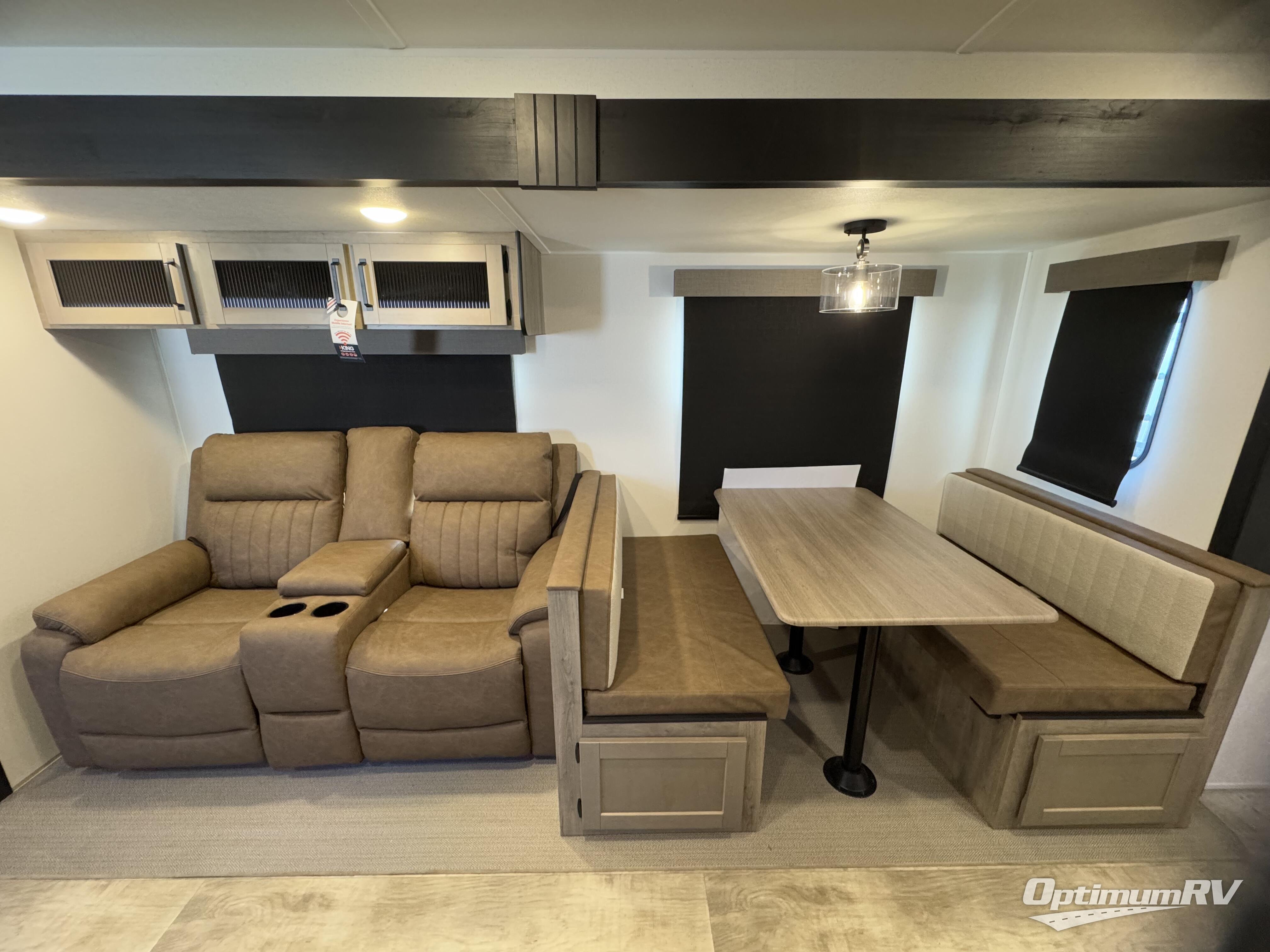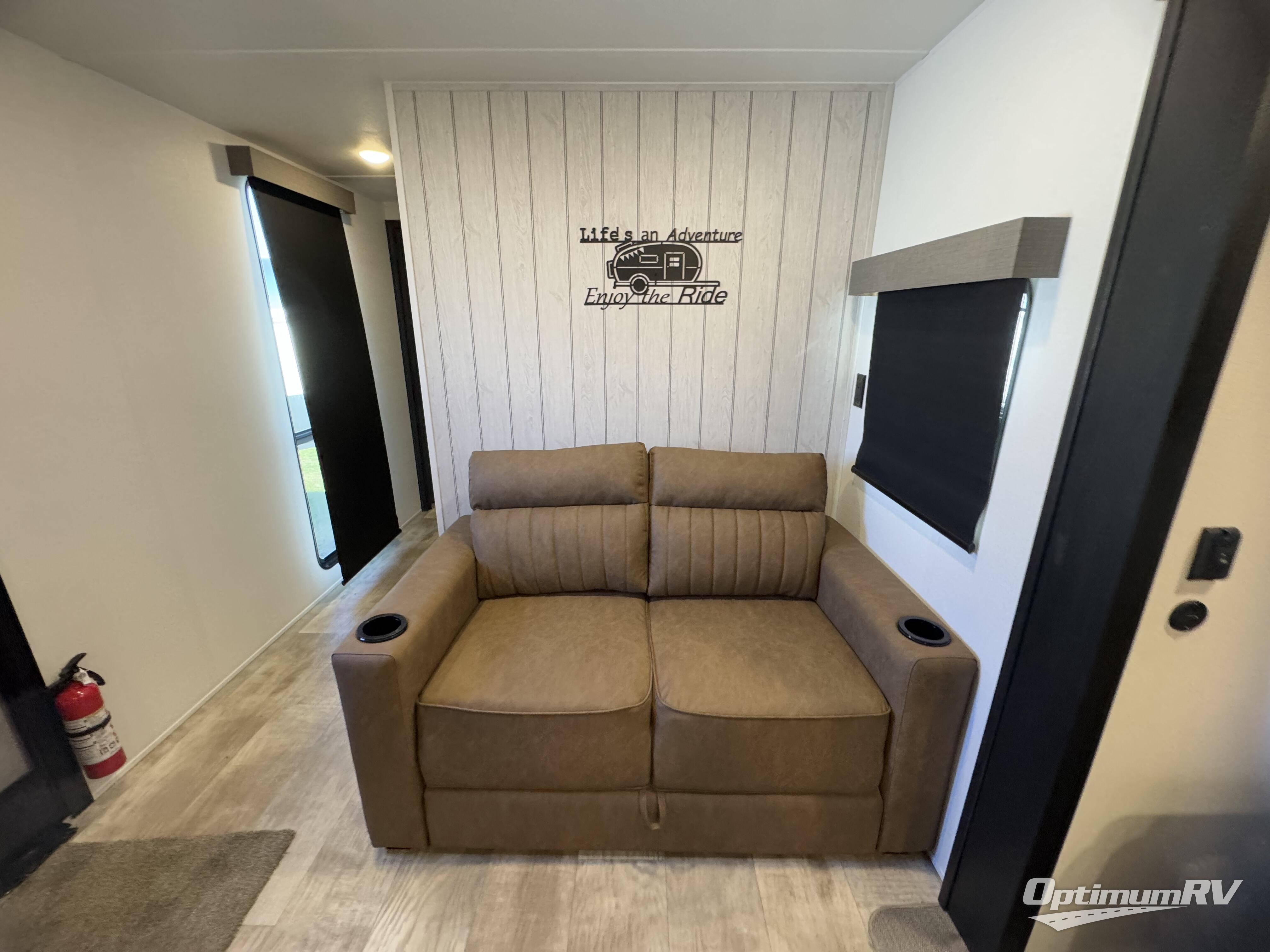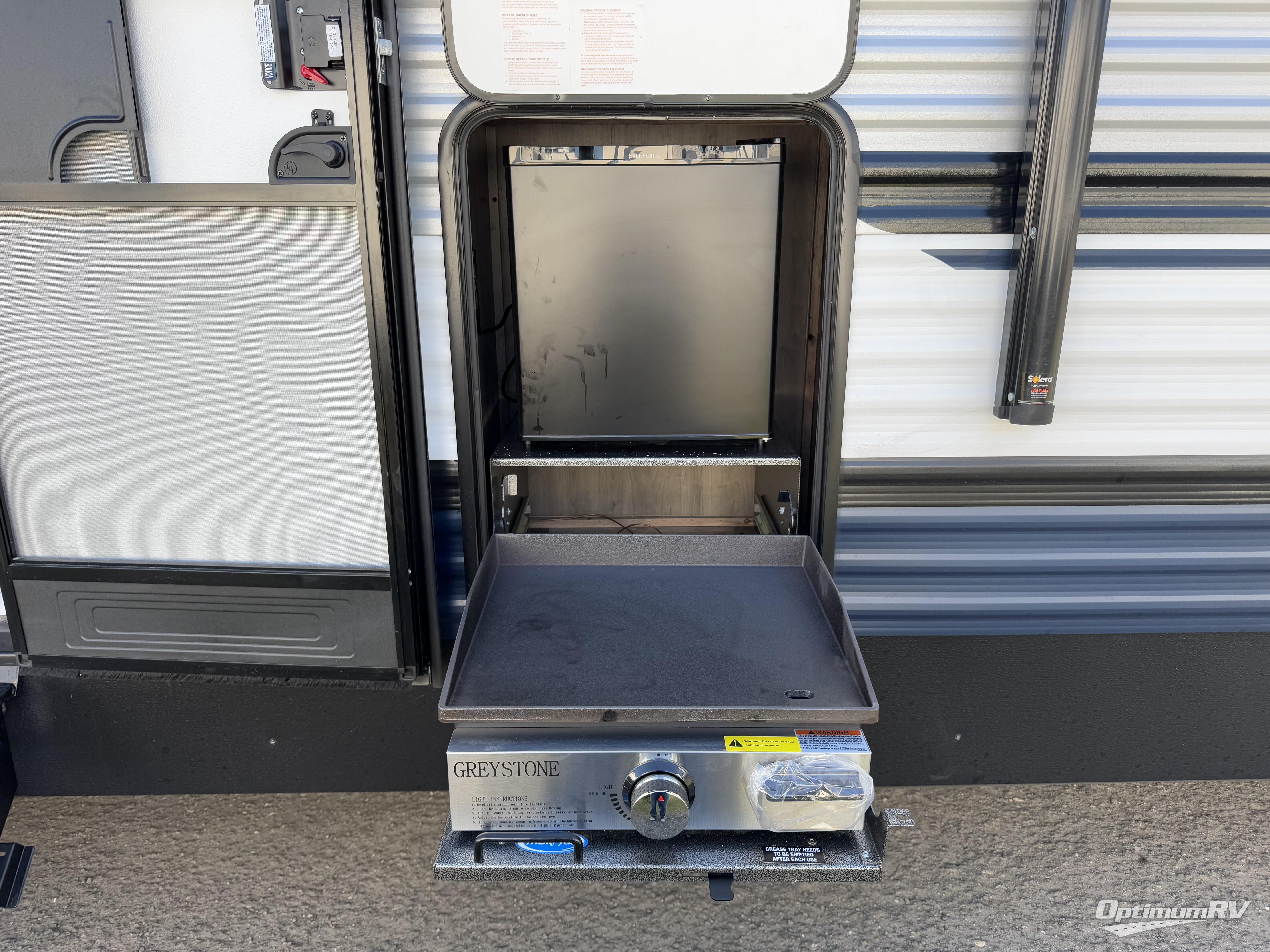 Experience a home away from home with this travel trailer! The front kitchen has everything you will need to prepare your best meals and you can enjoy them at the booth dinette. The rear private bedroom has a 72" x 80" king bed slide across from a dresser, a wardrobe, and a closet with washer and dryer prep. Freshen up in the full bathroom with the 32" x 40" shower and then enjoy a cup of coffee relaxing in one of the two recliners or on the sofa! Choose the optional outside micro kitchen with a griddle for even more convenience!