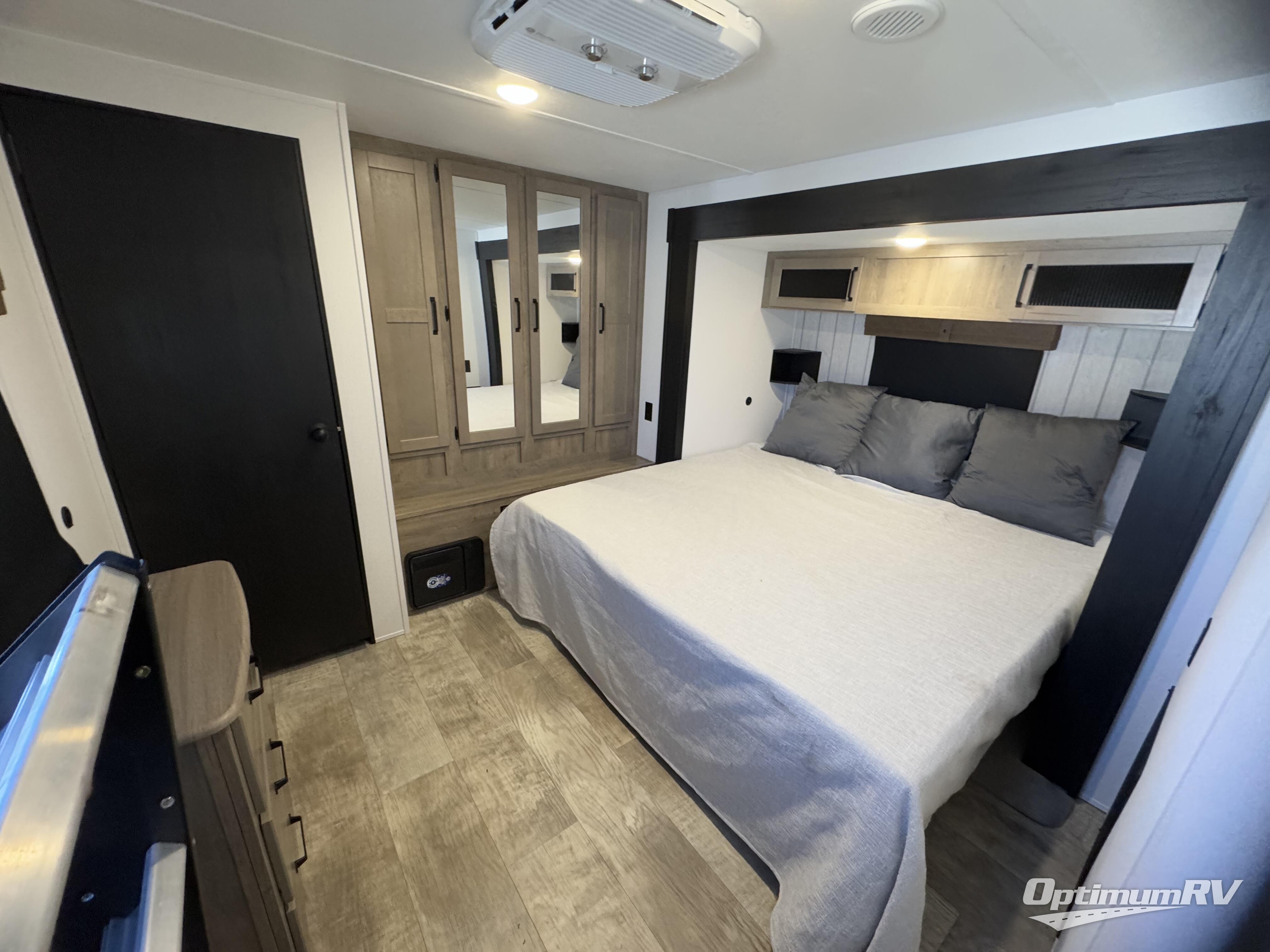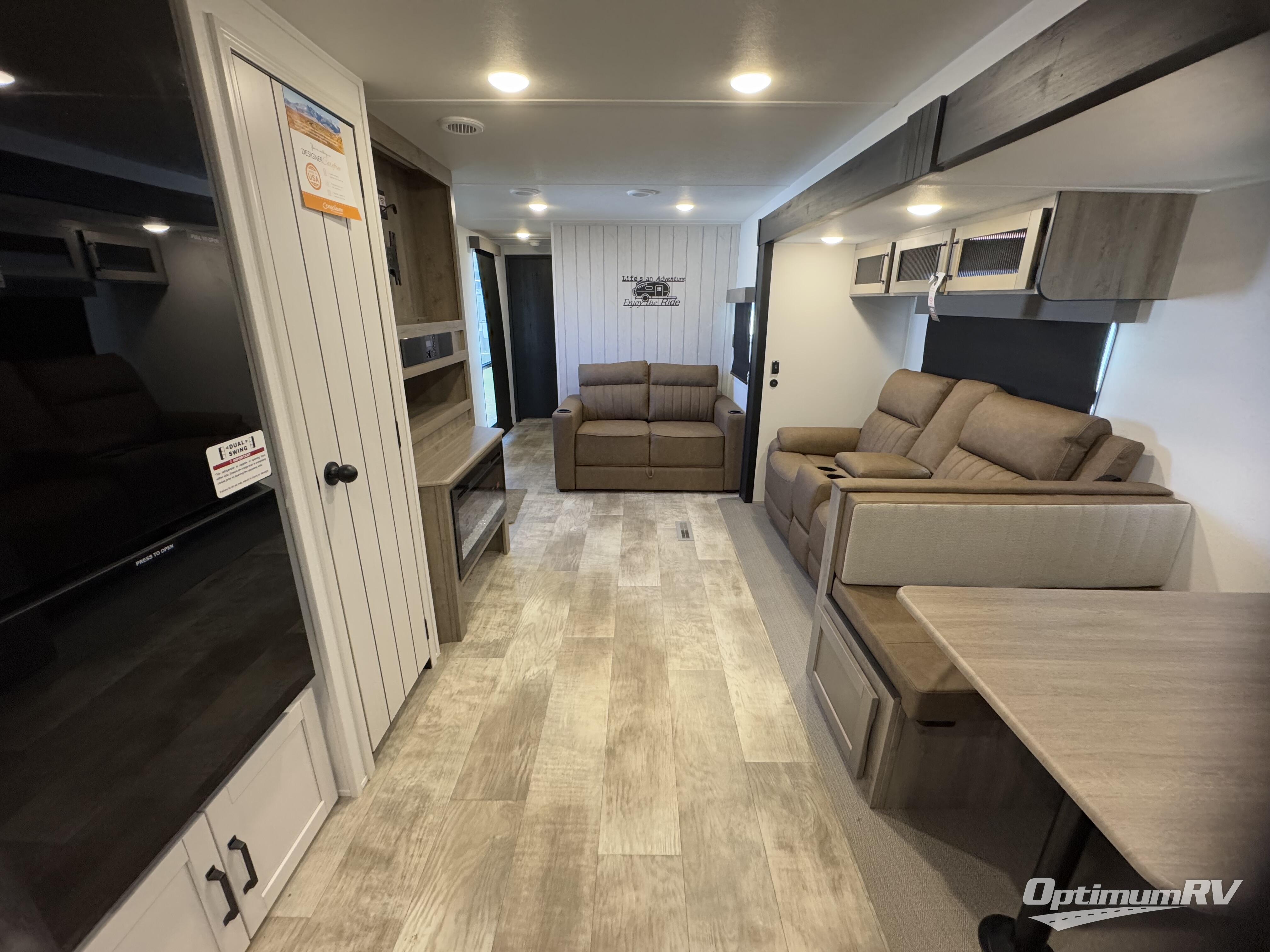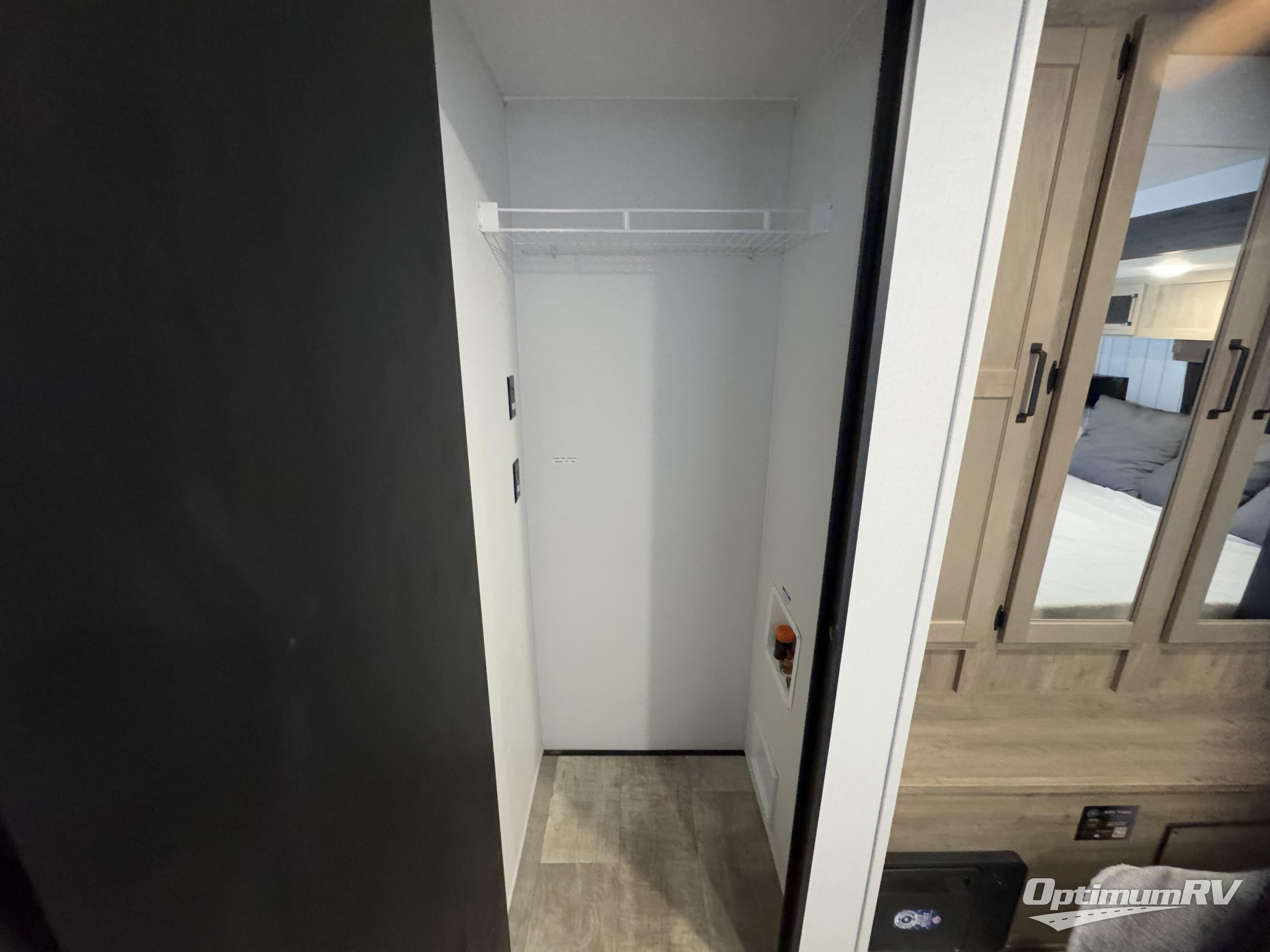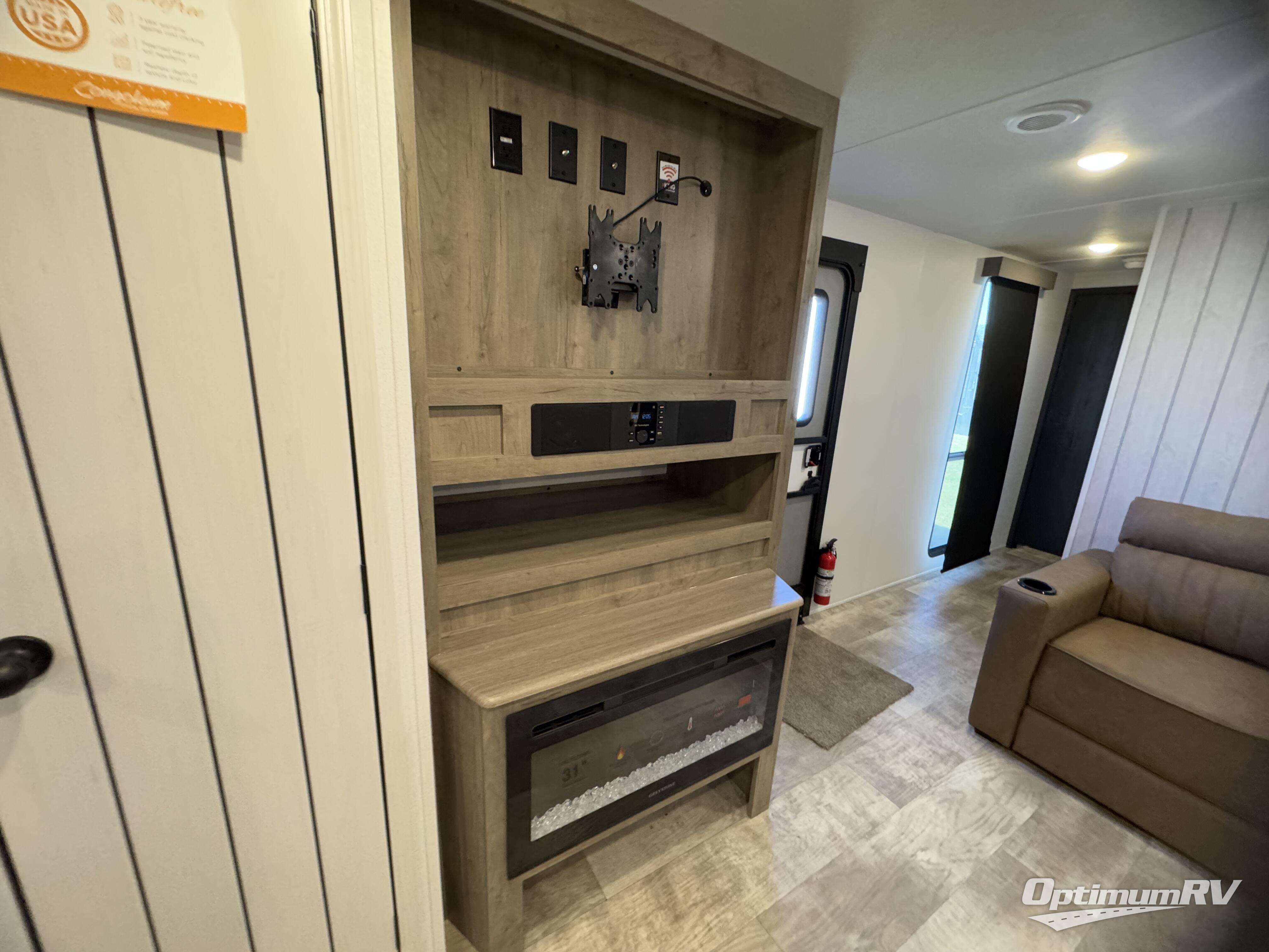 Experience a home away from home with this travel trailer! The front kitchen has everything you will need to prepare your best meals and you can enjoy them at the booth dinette. The rear private bedroom has a 72" x 80" king bed slide across from a dresser, a wardrobe, and a closet with washer and dryer prep. Freshen up in the full bathroom with the 32" x 40" shower and then enjoy a cup of coffee relaxing in one of the two recliners or on the sofa! Choose the optional outside micro kitchen with a griddle for even more convenience!