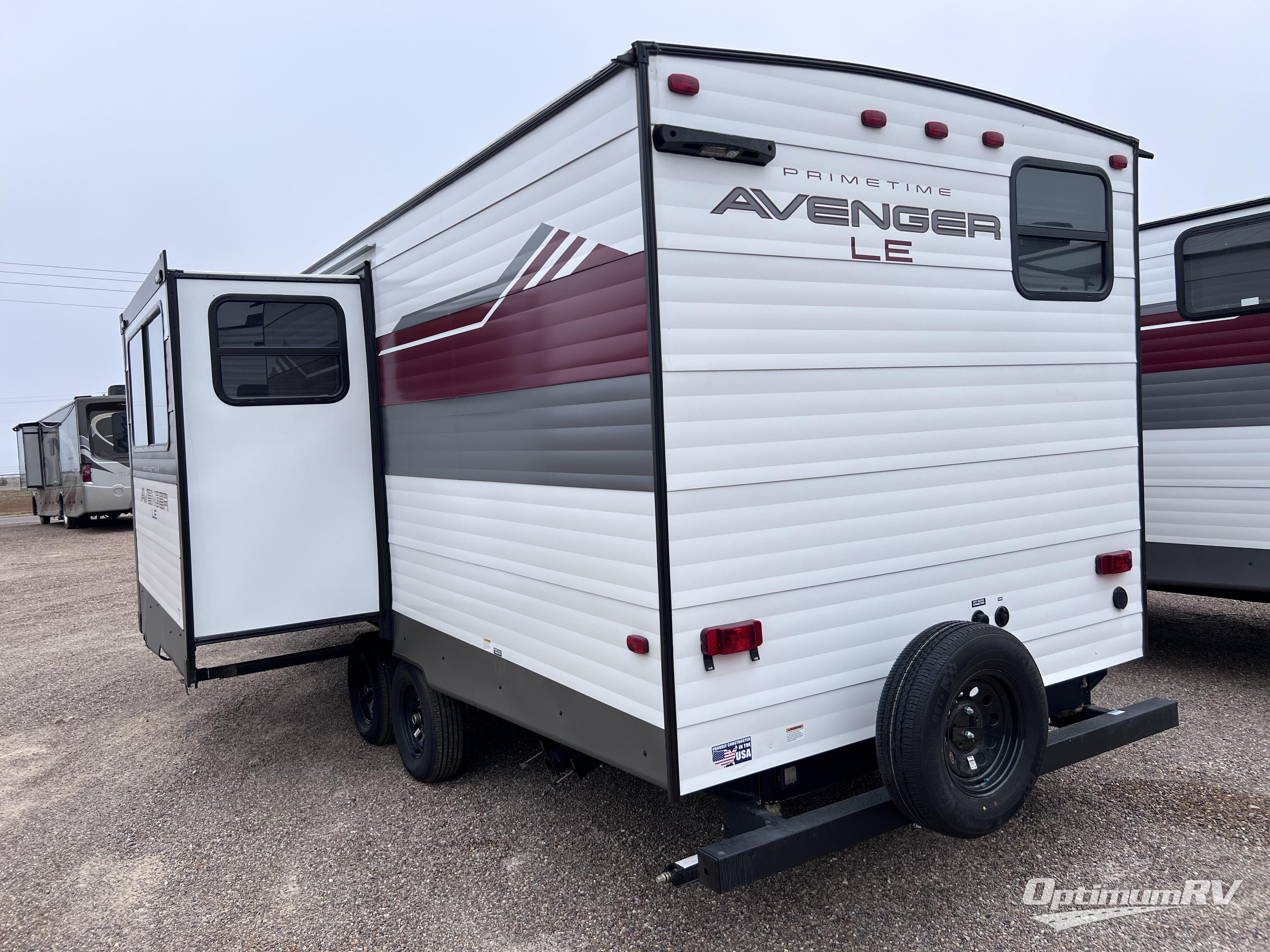 With any Avenger LE travel trailer by Prime Time RV you will enjoy at-home comforts while at the campground! Durable construction begins with an enclosed and heated underbelly, a one-piece roof membrane, and diamond plate front rock guard for added protection against debris during transport. There are also locking magnetic latches on the baggage doors, fully vented windows throughout, four stabilizer jacks, plus solar prep if you want the option to go off-grid. The interior will have you feeling right at home with residential extended ball bearing drawer glides, seamless Carefree Congoleum flooring, an XL single basin kitchen sink, and shower pans in all models that will make it easy to get in and out of the bath. Some of the convenient appliances and equipment you will appreciate are the 15,000 BTU A/C, 12V high-capacity water pump, Slim Profile range hood, and the Winegard 360+ antenna with Wi-Fi prep!