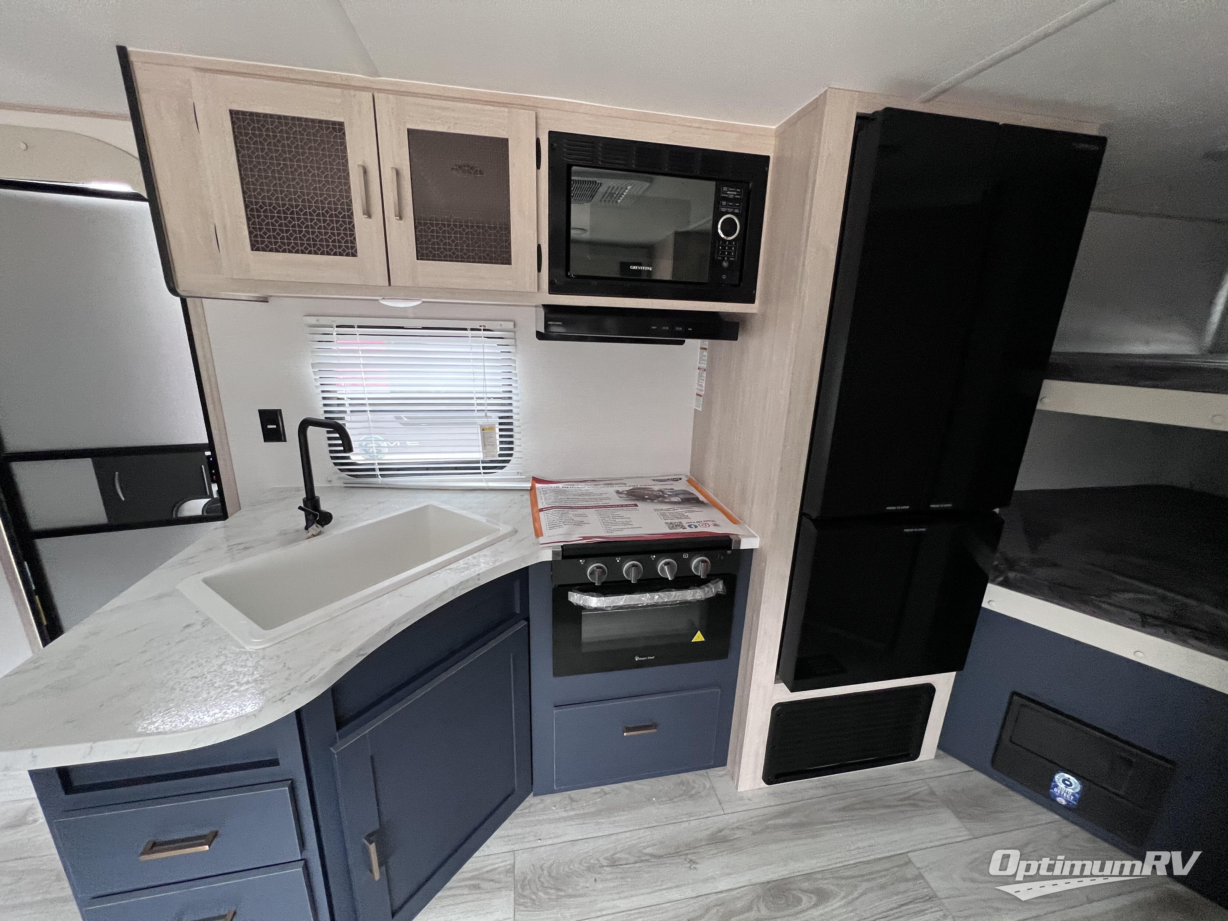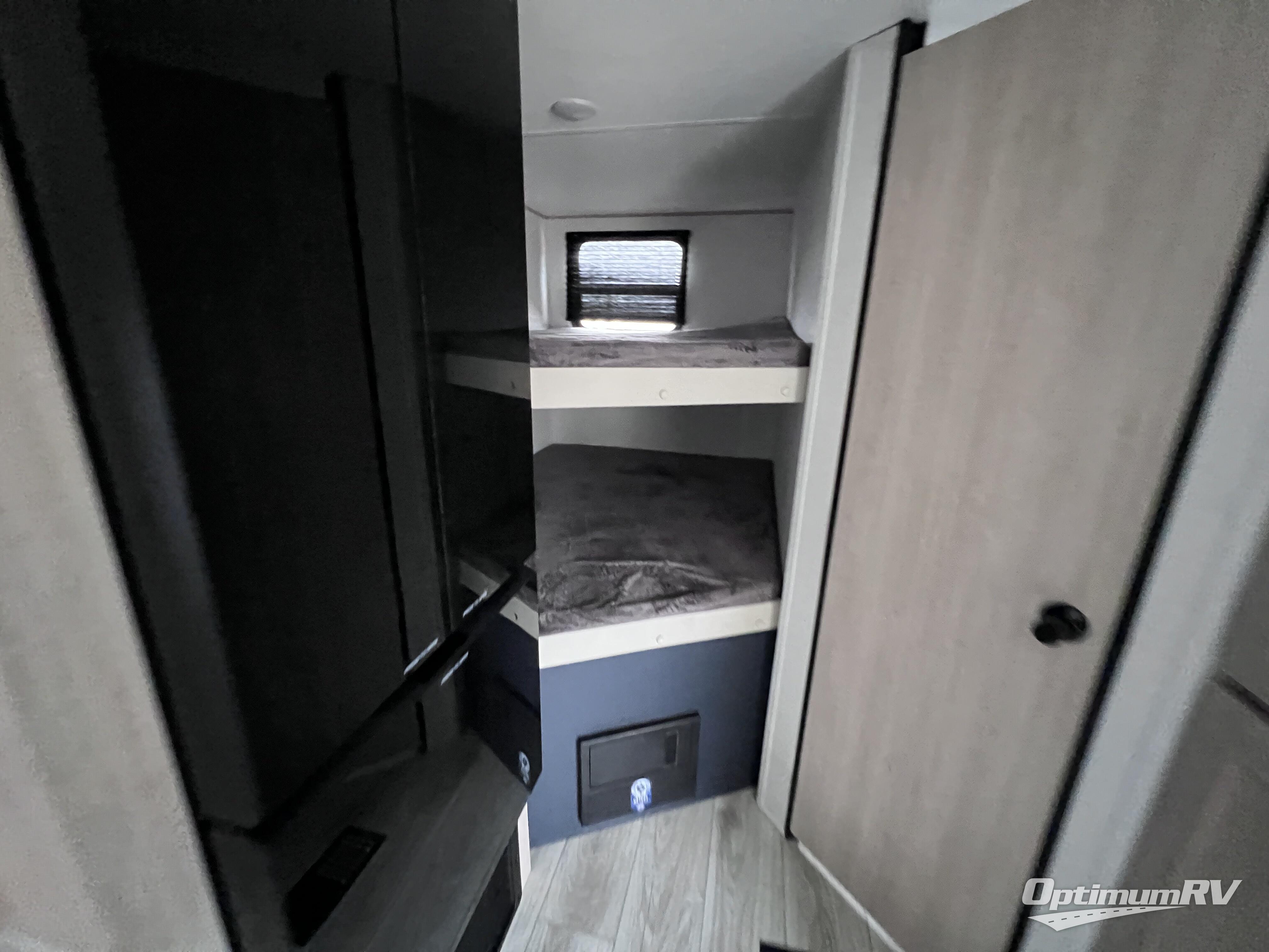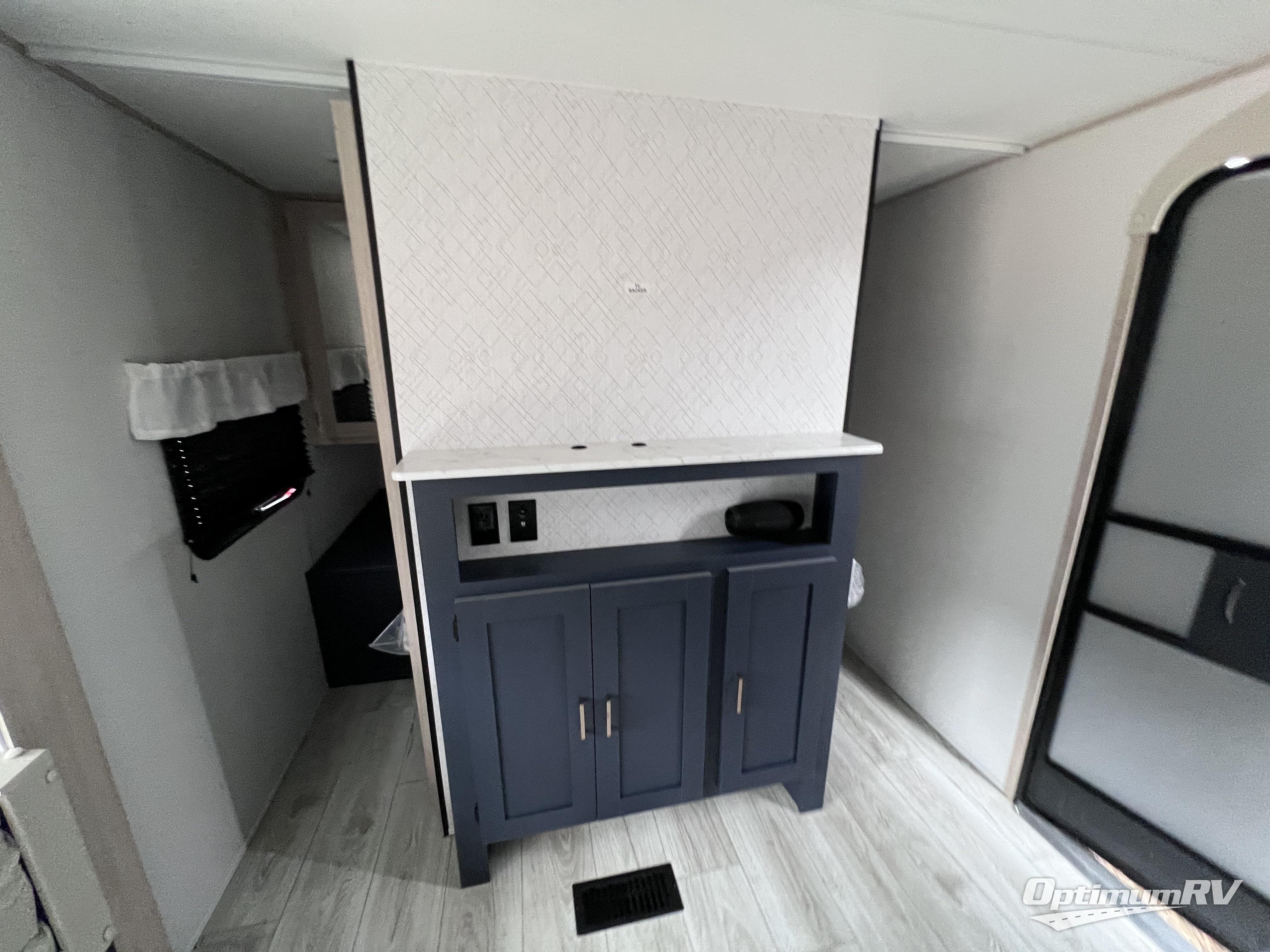 Gather the crew, load up and head out to enjoy a long-weekend at the state park! This trailer offers sleeping accommodations for eight because of the double-size bunks, the U-shaped dinette, and the queen bed. There is a rear corner full bathroom with a medicine cabinet to store personal belongings. You will find full kitchen amenities inside, as well as an outdoor kitchen where you can watch the kids play while making dinner. The single slide provides more living space in the interior, as well as extra sleeping space on the U-shaped dinette.