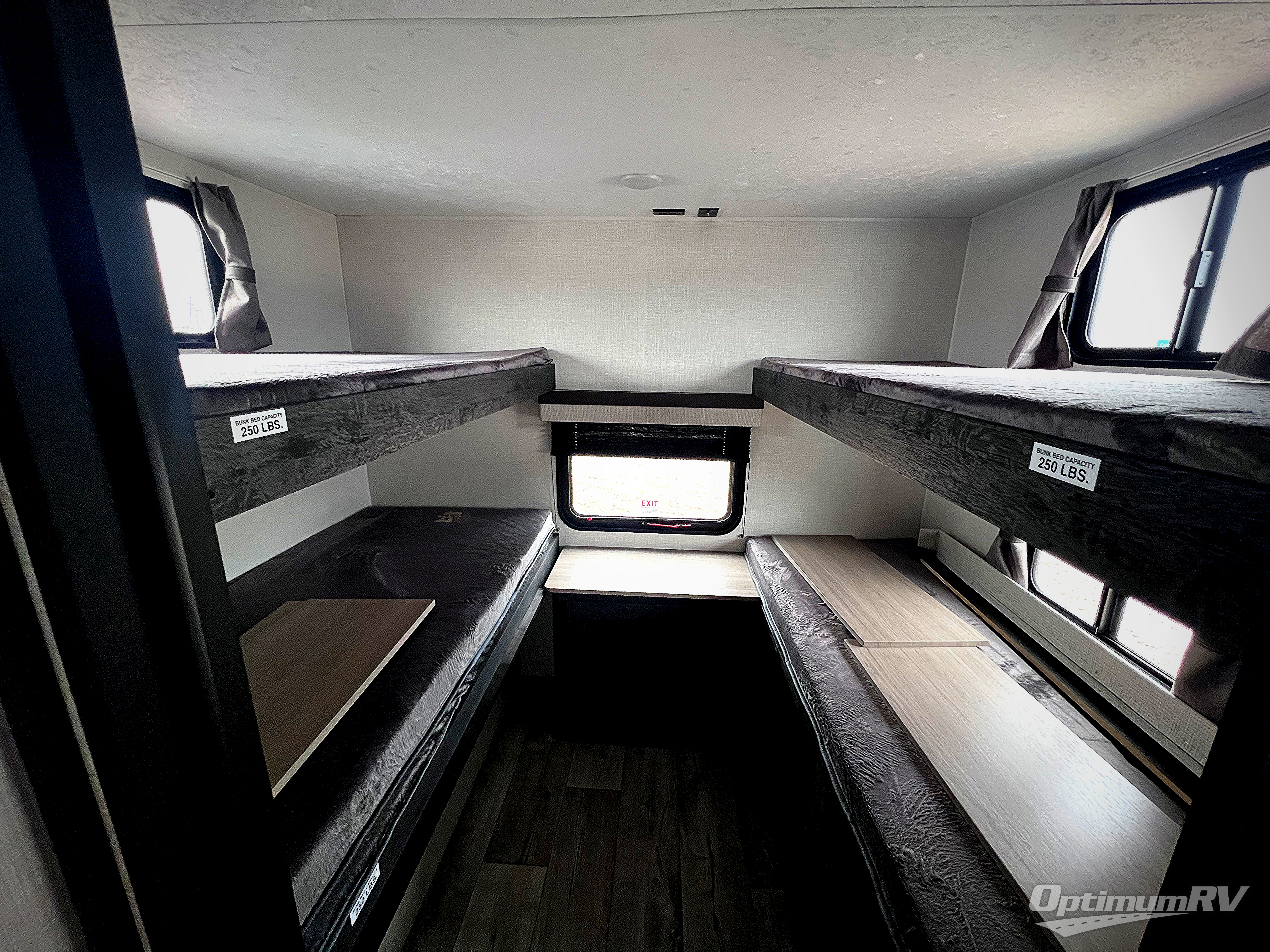 You'll love every minute spent in this spacious travel trailer with a rear private bunkhouse. There are two sets of bunk beds here, and the bottom bunks convert into a king-size bed, giving you options how you want to set up this space. The front private bedroom includes a Sleep Tight queen bed, dual wardrobes, and sliding doors that will help save on space. Your crew can relax on the 70" sofa or Sit N' Slide table within the large slide out and watch a movie with the Smart TV. Since there is an outdoor griddle and refrigerator plus a 20' power awning, you may just find yourselves outside most days!