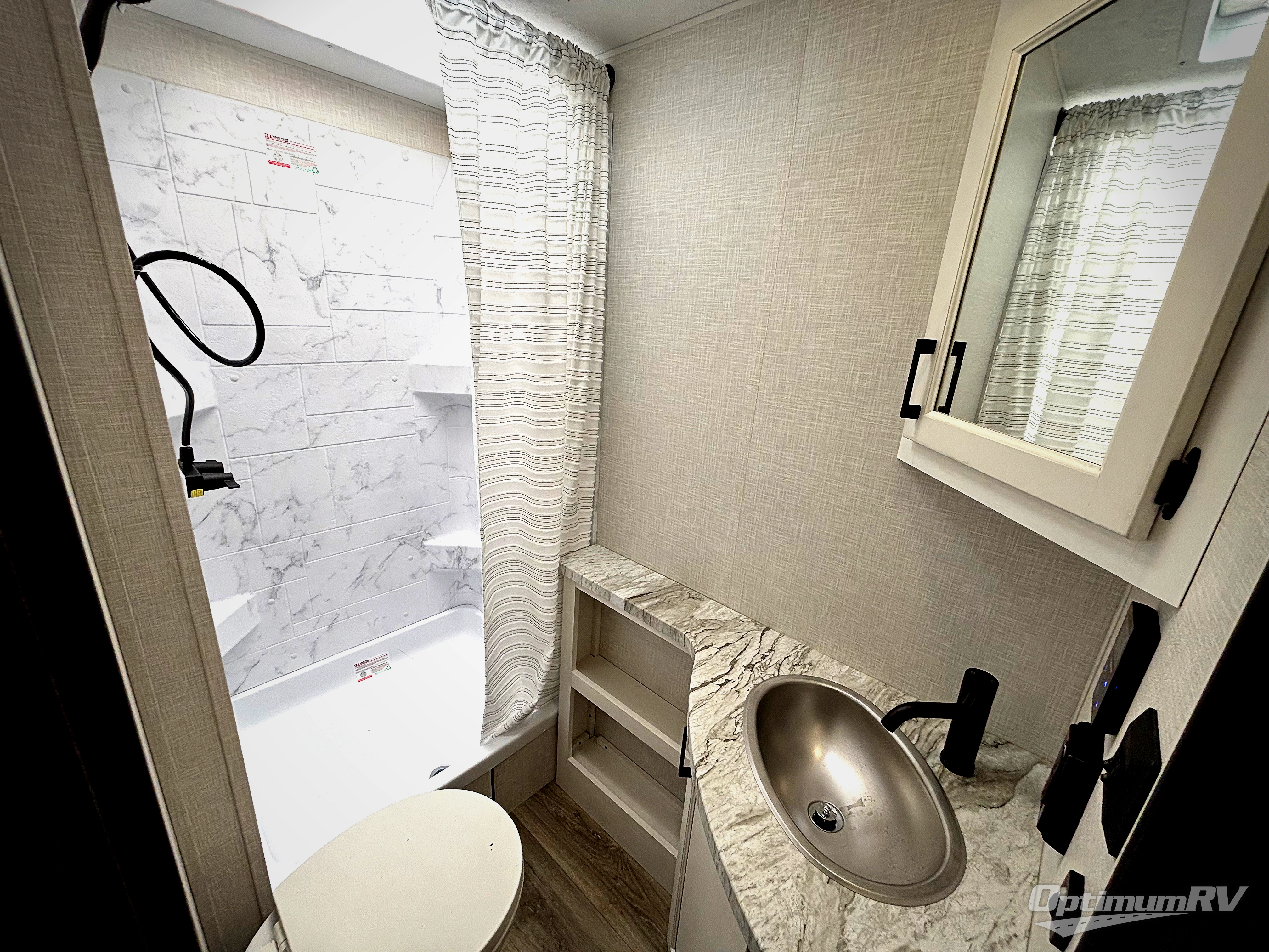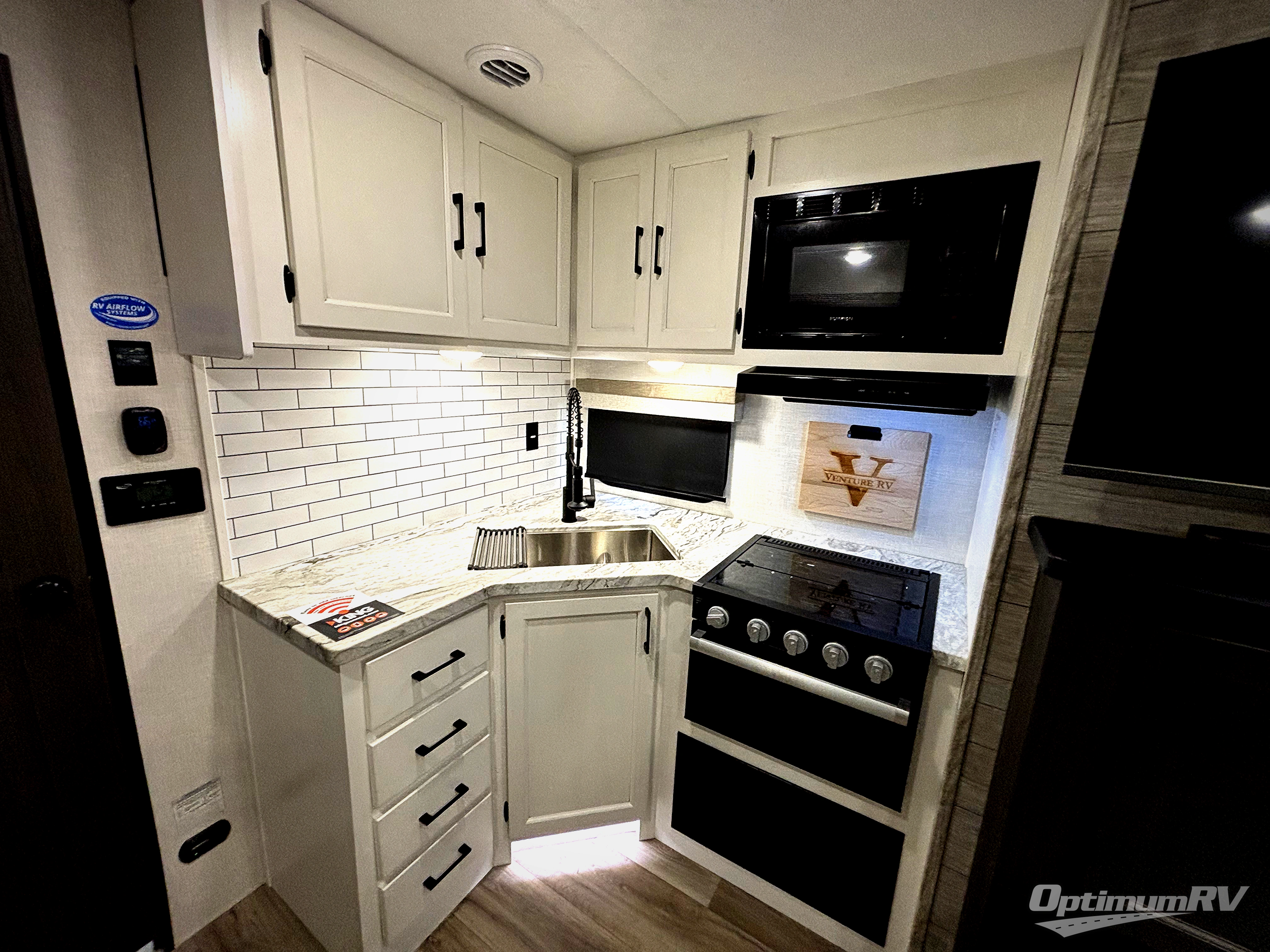 Every Venture RV SportTrek lightweight travel trailer is constructed to offer peace of mind and the comforts of home! Their purposeful residential kitchens are packed with handy features like a Furrion oven and three burner cooktop, a large stainless steel sink with a cover and dish drying rack, plus a 12V refrigerator. You will find plenty of storage throughout, including Safe-Tek hidden storage with a charging center and StorMore nightstands on either side of the bed behind the full-length closets. And the magnetic slam-latch baggage doors and spacious pass-through storage area will hold your outdoor gear in place. They even come with a hot and cold exterior shower and SporTrek's Weather Shield which includes a forced air heated and enclosed underbelly, high output A/C ducting, and more features that will let you extend your camping season. You will also love the new residential upgraded furniture, Serta memory foam mattress, barn style passage doors, and many more comforts!