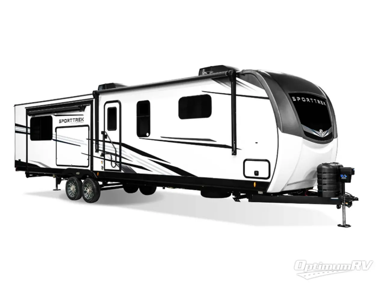 An elegant design and new features come with every one of these Venture RV SportTrek Touring Edition travel trailers! The NXG Huck bolt frame holds these units together and a walkable roof covers them. Heads will turn down the highway and at the campsite with an upgraded graphics package and a painted fiberglass front cap with integrated LED light. The exterior pass-through storage area has slam latch baggage doors with magnetic catches so you don't have to worry about them closing on you and a motion activated light to see your items clearly even at night. Luxury abounds throughout these units, especially with the mandatory Interior Luxury package which comes with solid surface kitchen countertops, designer valances with fabric nightshades, two 30" frameless fireplaces, and Beauflor wood plank flooring that is easy to clean. Come find your favorite model today!