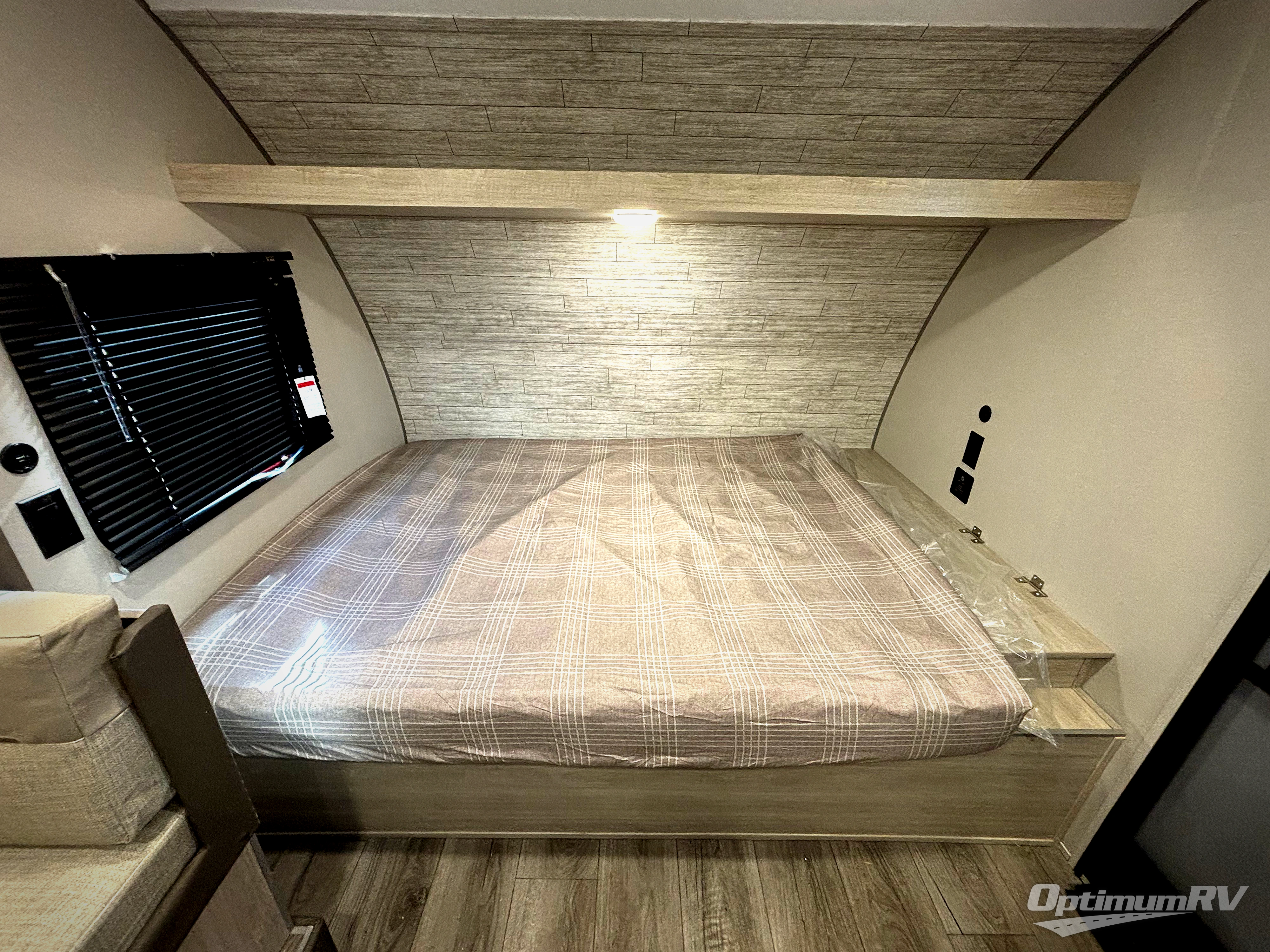 This spacious travel trailer can sleep eight campers each night thanks to the double-size bunks in the back, the U-shaped dinette within the slide out, and the queen bed up front! You can easily make meals for your crew with the two burner cooktop and microwave oven, and leftovers can go in the 10.7 cu. ft. 12V refrigerator! After you've cleaned up in the full bath, head outdoors to relax under the 15' power awning with multicolor LED lights and a remote!