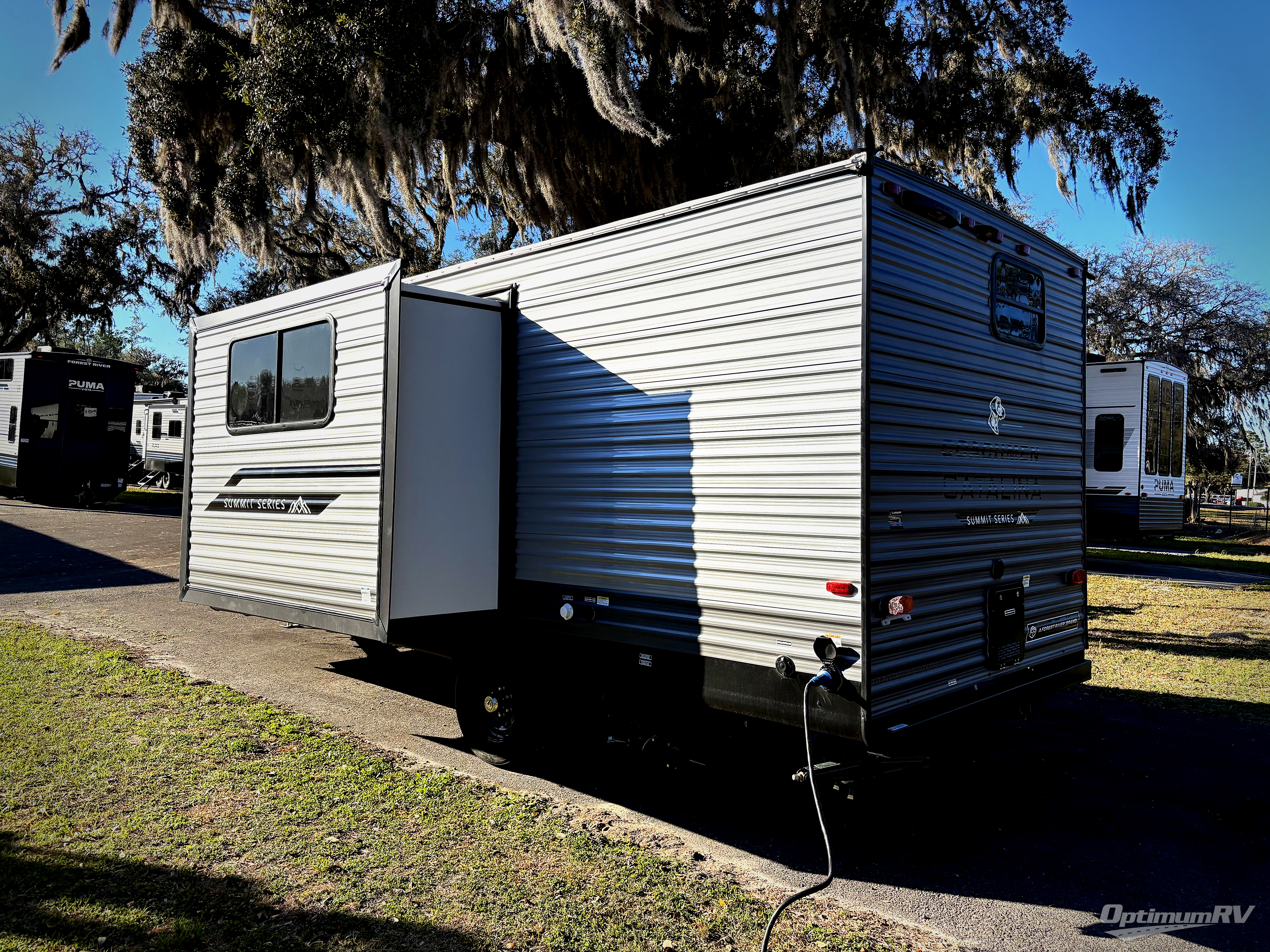 With any Catalina Summit Series 7' by Coachmen RV, you can create an easier adventure with the versatility and simplicity of the shorter lengths and lighter weights! Each includes a premium exterior graphics package, a smooth HD aluminum radius front, and EZ lube axles with leaf spring suspension. The exterior offers a heavy duty standard tongue jack, a diamond plate rock guard to protect against road debris, exterior RG-6 coax cabling and satellite prep, rear view camera prep, and flush mount baggage doors with radius corners for your outdoor gear. Inside, you will enjoy a premium JBL interior speaker, USB charging ports, seamless Thermofoil countertops throughout, a deep basin farm style sink for easy cleanup, and GE kitchen appliances. It's time to choose an affordable and maneuverable single axle trailer today!