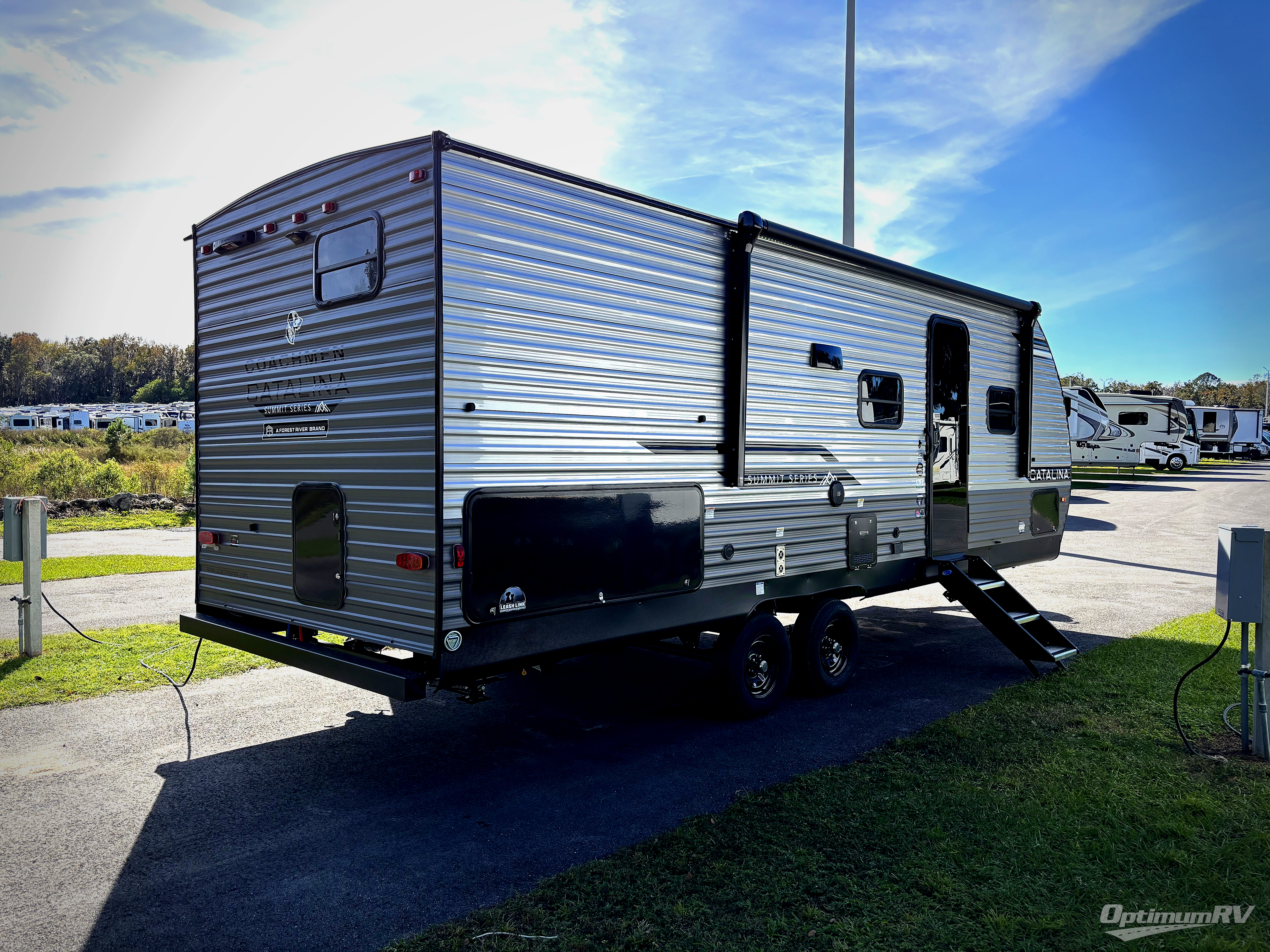 With any Catalina Summit Series 8 by Coachmen you will enjoy an affordable travel trailer packed with at-home comforts! The solid construction includes a Norco electromagnetic powder coated chassis, a seamless Alpha roof membrane, and full length frame outriggers for maximum support and durability. EZ lube axles with leaf spring suspension and self-adjusting brakes provide smooth towing from home to campground, and the premium exterior graphics package is sure to turn heads as you travel down the highway. You will love the features included, such as a JBL Aura Cube media center, magnetic baggage door latches, 4,000 lumen interior touch lighting, and the list goes on!