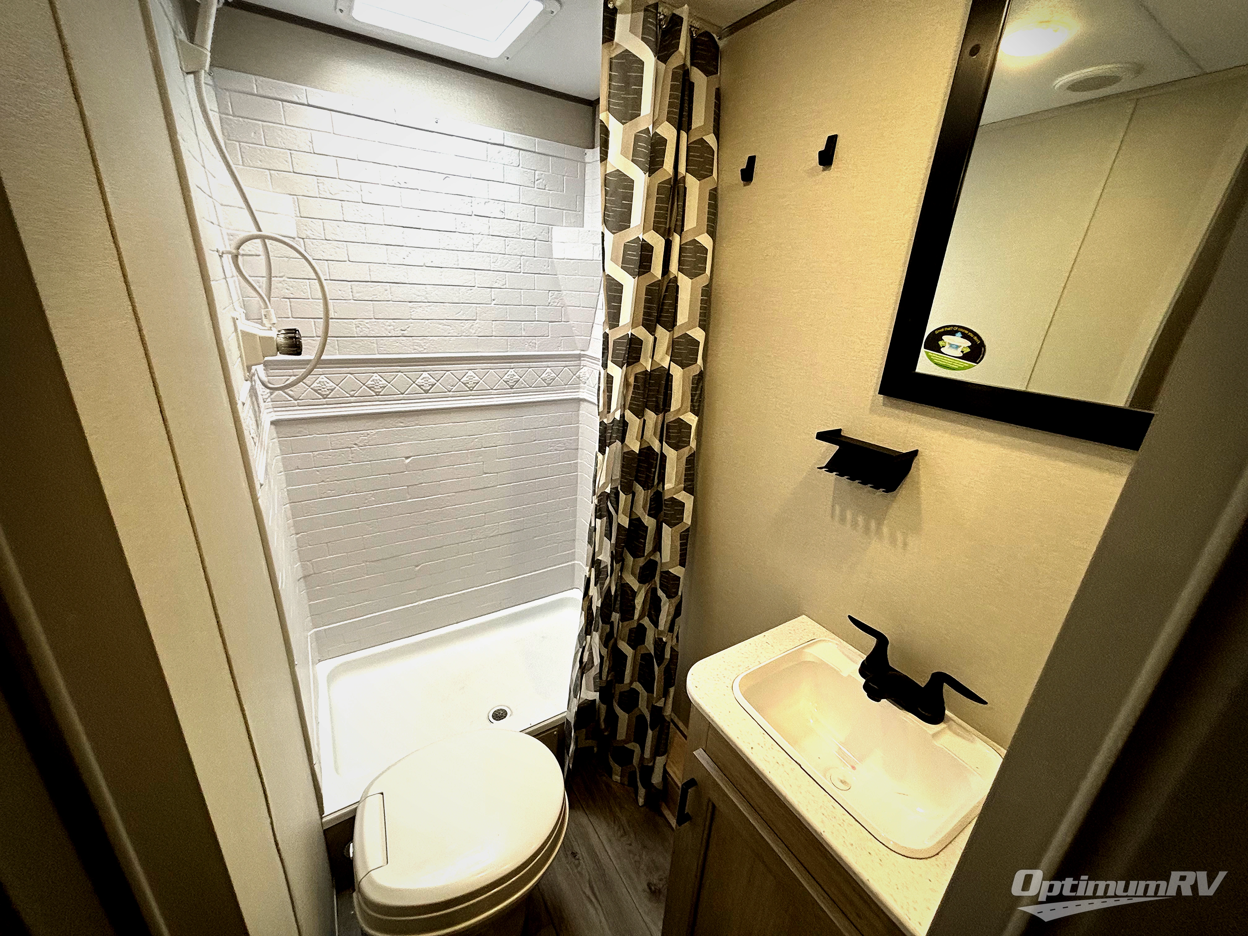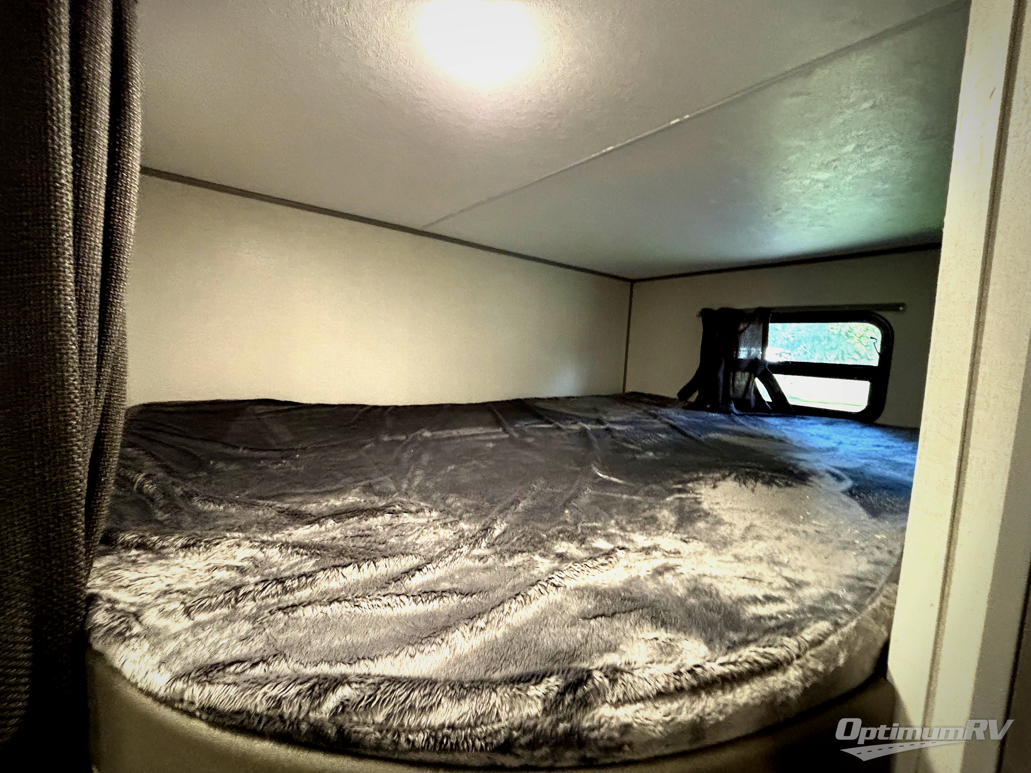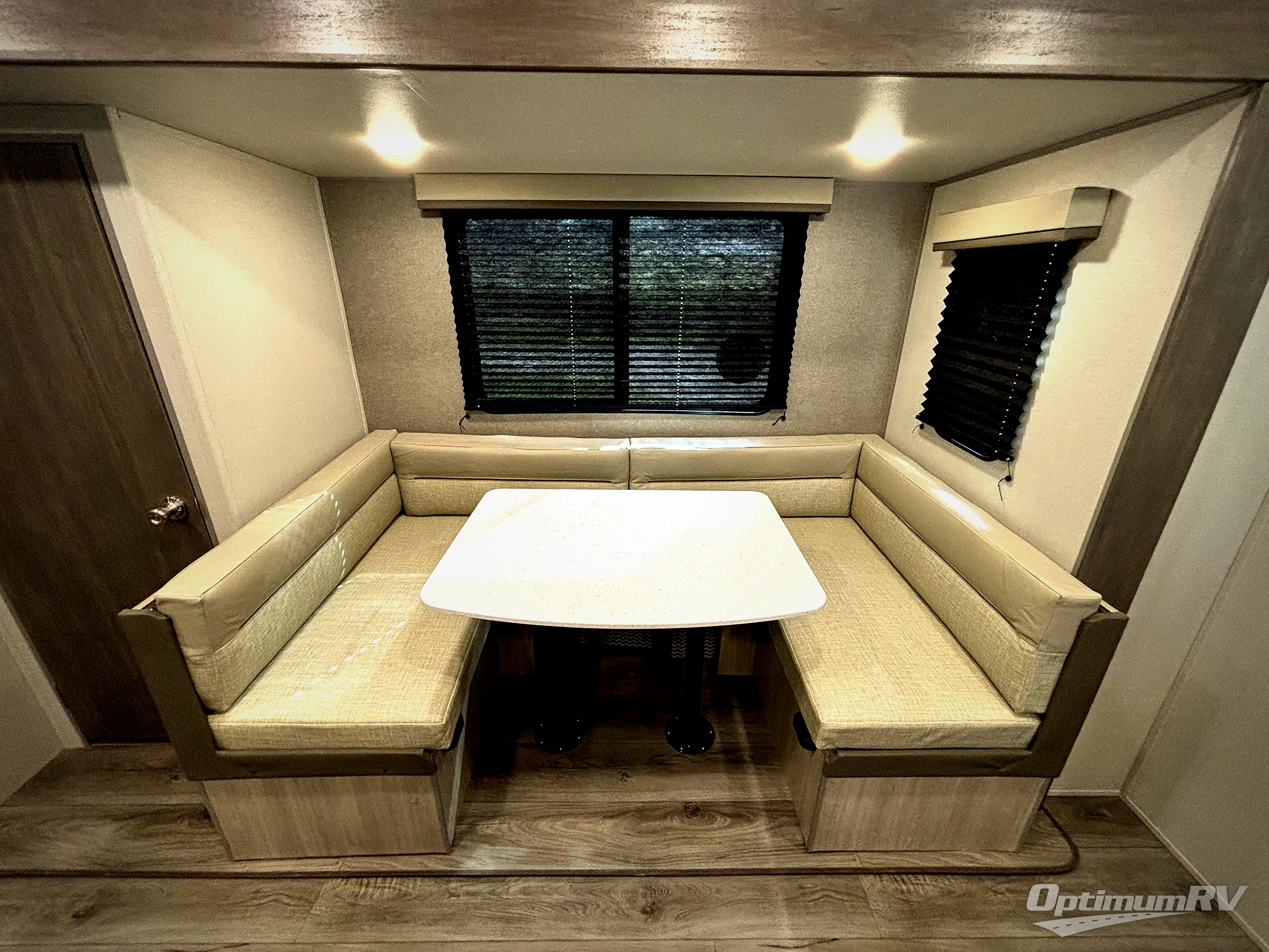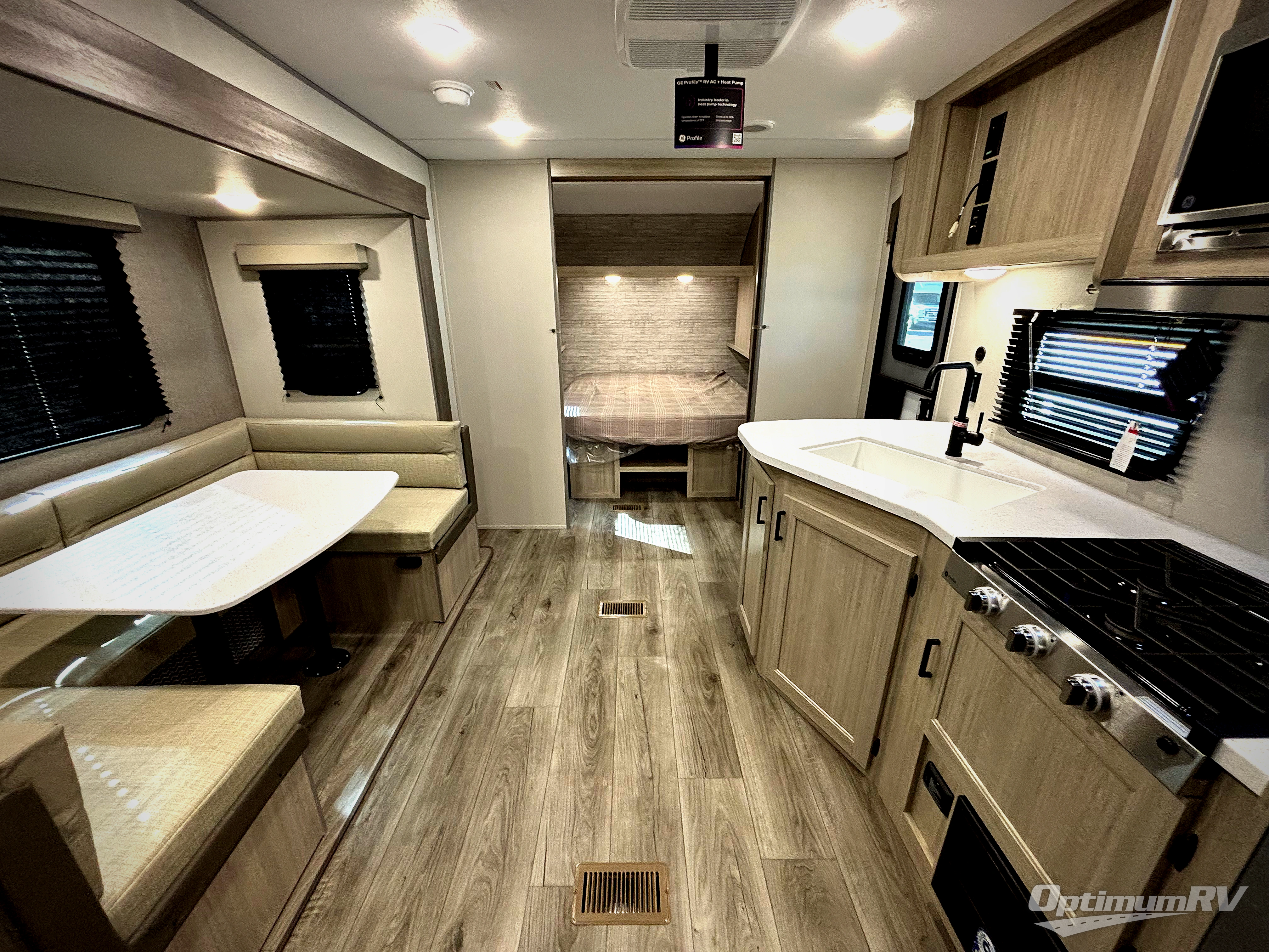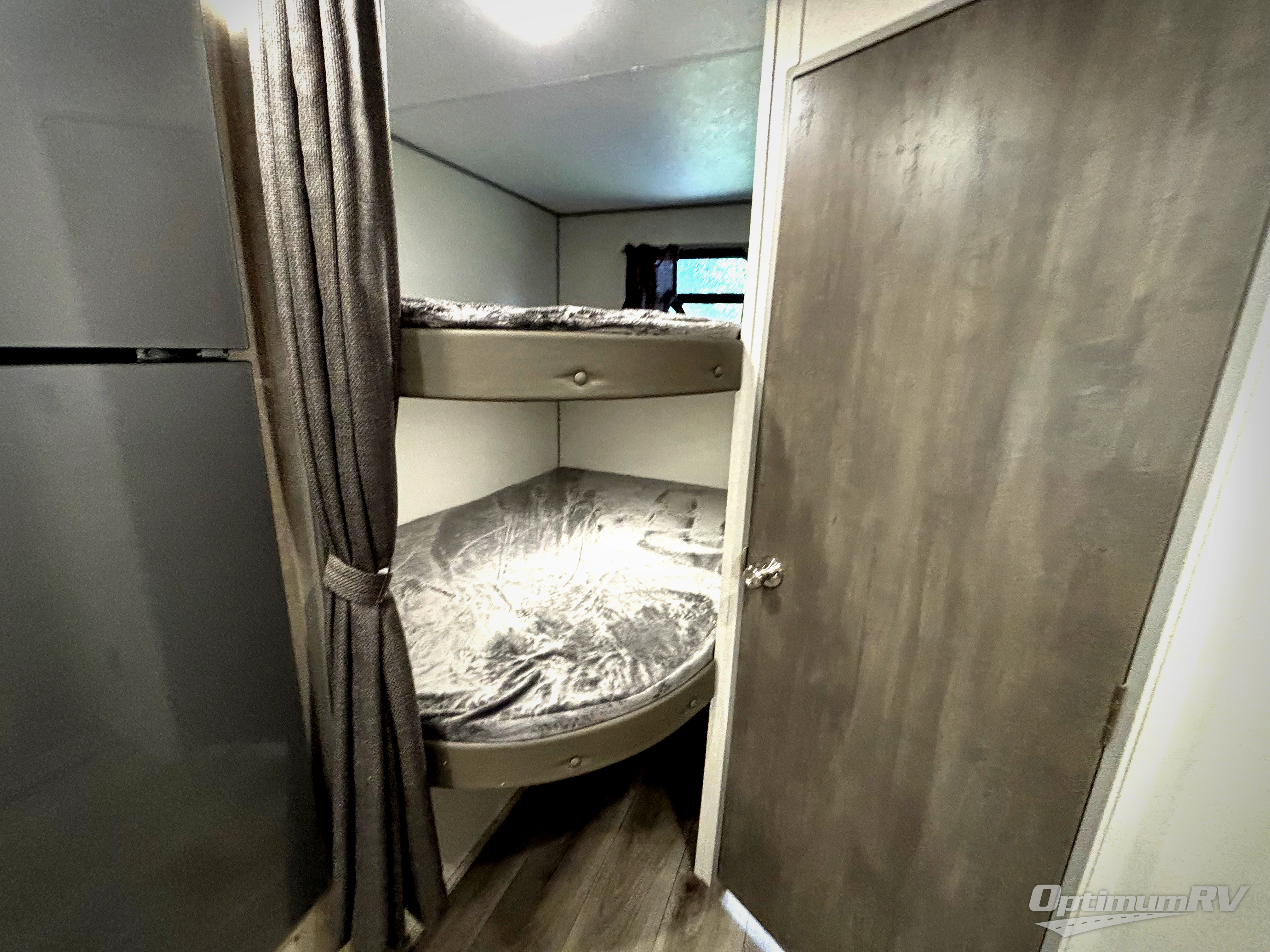 This is the perfect mid-size travel trailer for you and your family! The double-size bunks offer a comfortable sleeping space for the kids and you will have your own private sleeping space with a queen bed in the front bedroom. Freshen up each day in the rear corner bathroom with the tub/shower and a mirror to get ready each morning. You can prepare your best home cooked meals with the GE stainless three burner cooktop and GE stainless 10.7 cu. ft. 12V refrigerator, then enjoy them together at the u-shaped dinette. There is also a large pantry to store all your goods. Don't leave any of your outdoor gear behind either, thanks to the front pass-through storage area and the exterior outside storage area. You could even add the optional outside camper kitchen to grill the catch of the day on the pull out griddle!