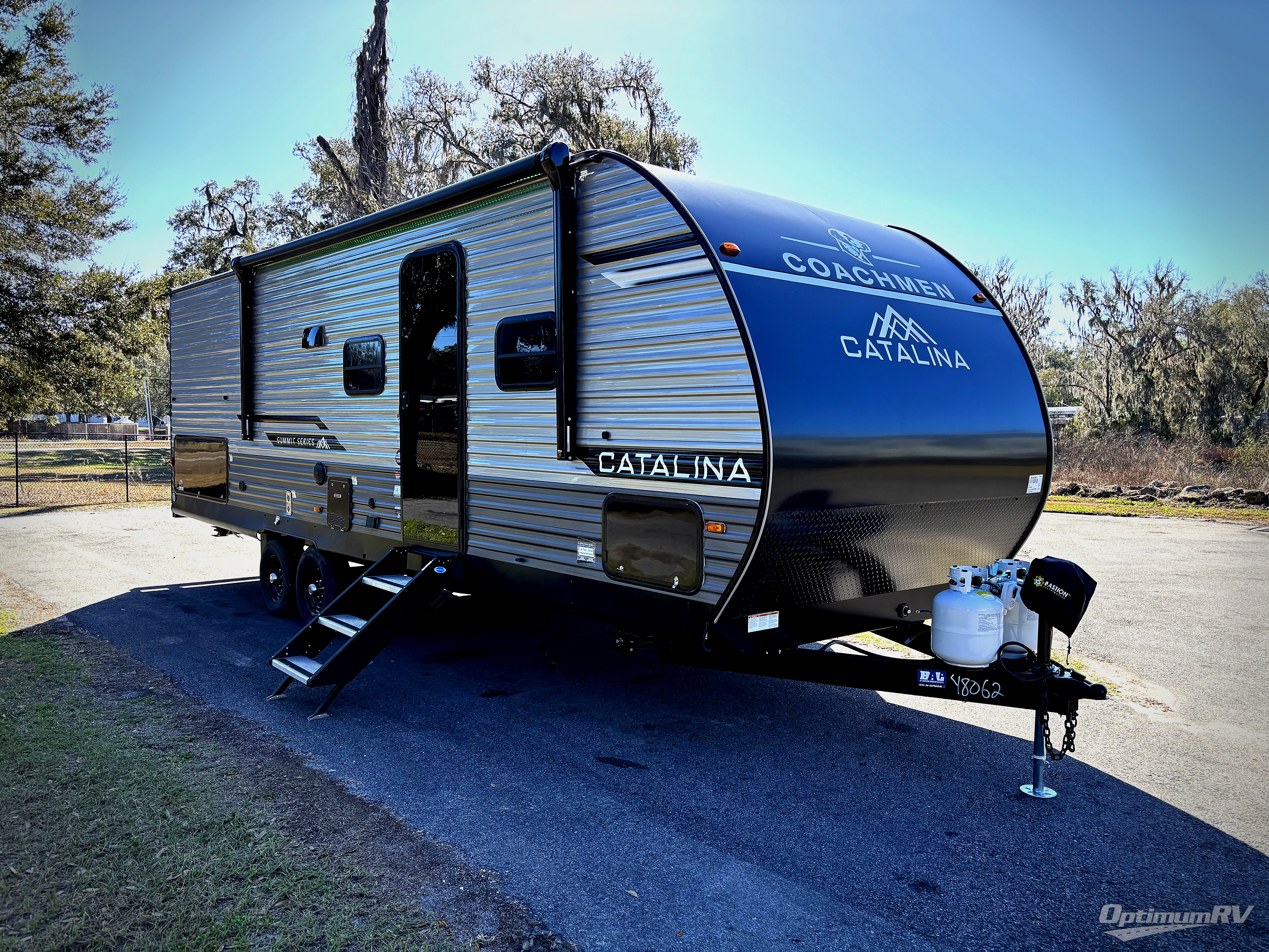 With any Catalina Summit Series 8 by Coachmen you will enjoy an affordable travel trailer packed with at-home comforts! The solid construction includes a Norco electromagnetic powder coated chassis, a seamless Alpha roof membrane, and full length frame outriggers for maximum support and durability. EZ lube axles with leaf spring suspension and self-adjusting brakes provide smooth towing from home to campground, and the premium exterior graphics package is sure to turn heads as you travel down the highway. You will love the features included, such as a JBL Aura Cube media center, magnetic baggage door latches, 4,000 lumen interior touch lighting, and the list goes on!