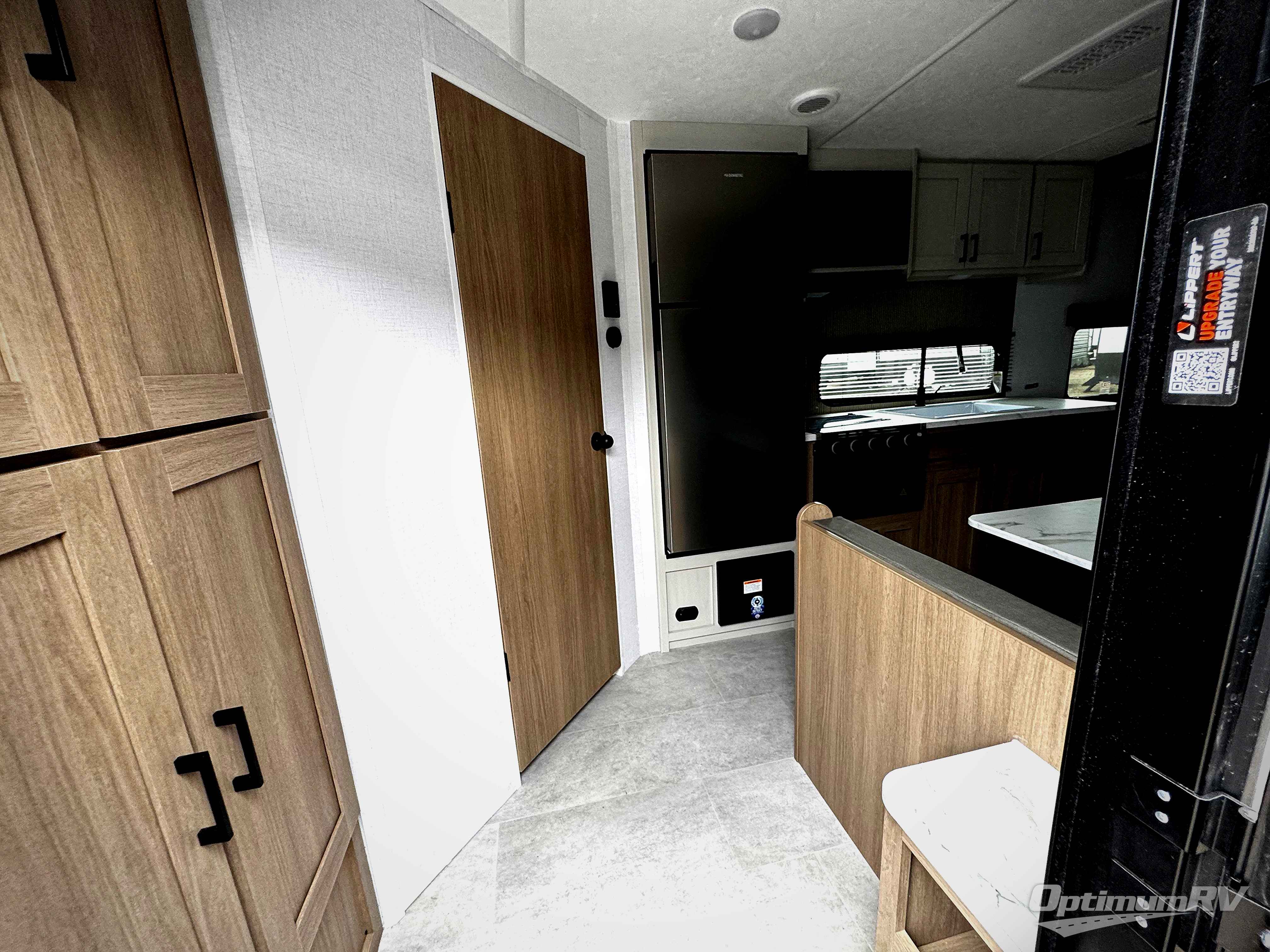 Whatever reason you camp, this lightweight trailer allows you to easily tow to your campsite, and enjoy comforts of home such as your own residential queen bed, wardrobe storage, and a full bathroom with a shower. The booth dinette provides both seating space and sleeping space for a guest. The cook will have an oven and a microwave to make meals, and a 10 cu. ft. 12V refrigerator for cold items, plus a galley sink with high rise faucet to keep the dishes clean.