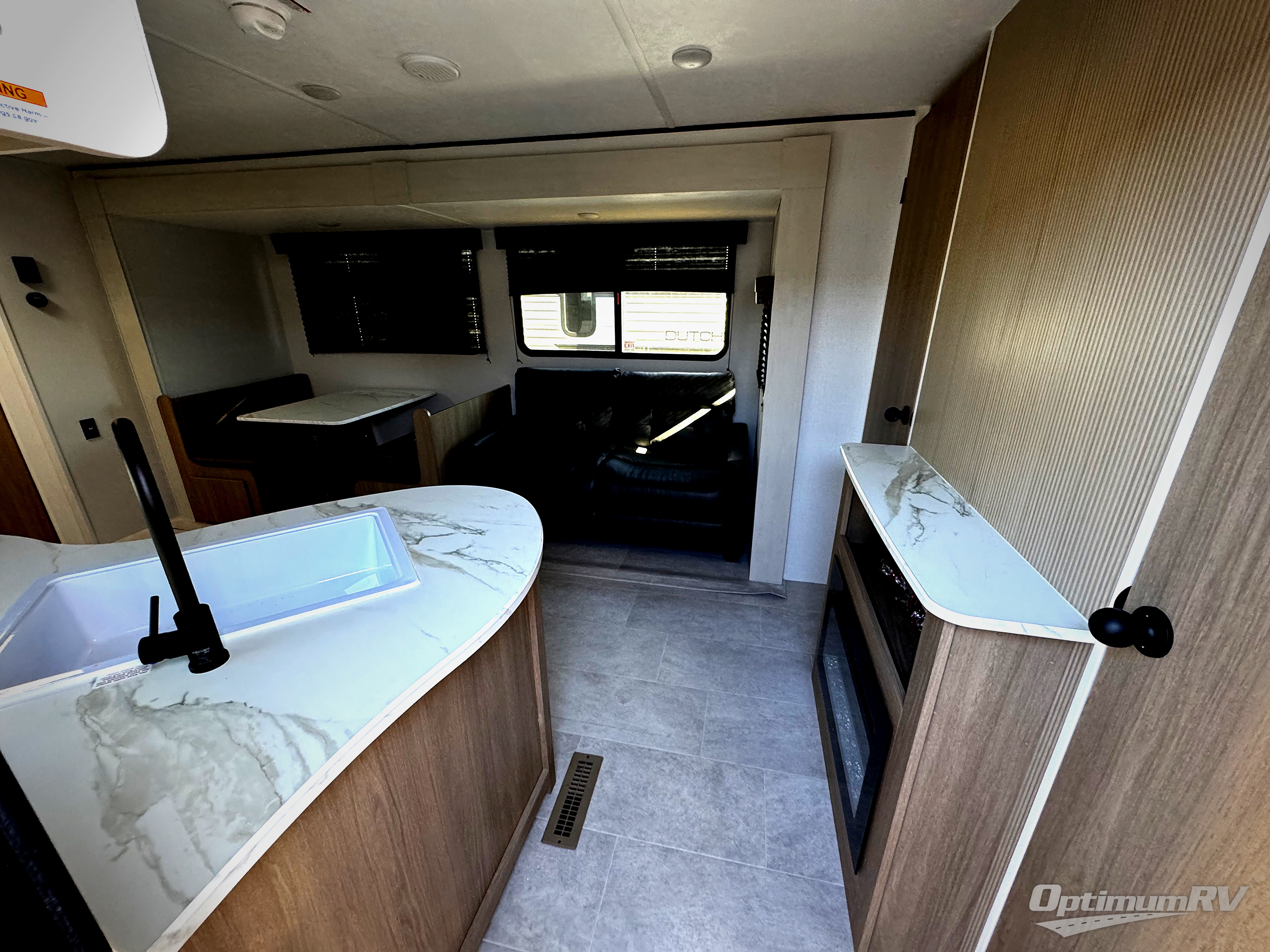 Get ready for fun and relaxation at the campgrounds with this trailer in your campsite. You can fish in the river, hike the trails and relax under the power awning before heading inside to enjoy the comforts of home. You will also enjoy having double access to the private bedroom which offers a residential queen bed and dual closets, plus the full bathroom will keep you refreshed after outdoor fun. The double-size bunks offer sleeping for four, and the furniture doubles as extra sleeping space. The cook will have full amenities including a 10 cu. ft. 12V refrigerator to store lots of cold items. And the large slide gives everyone more floor space.