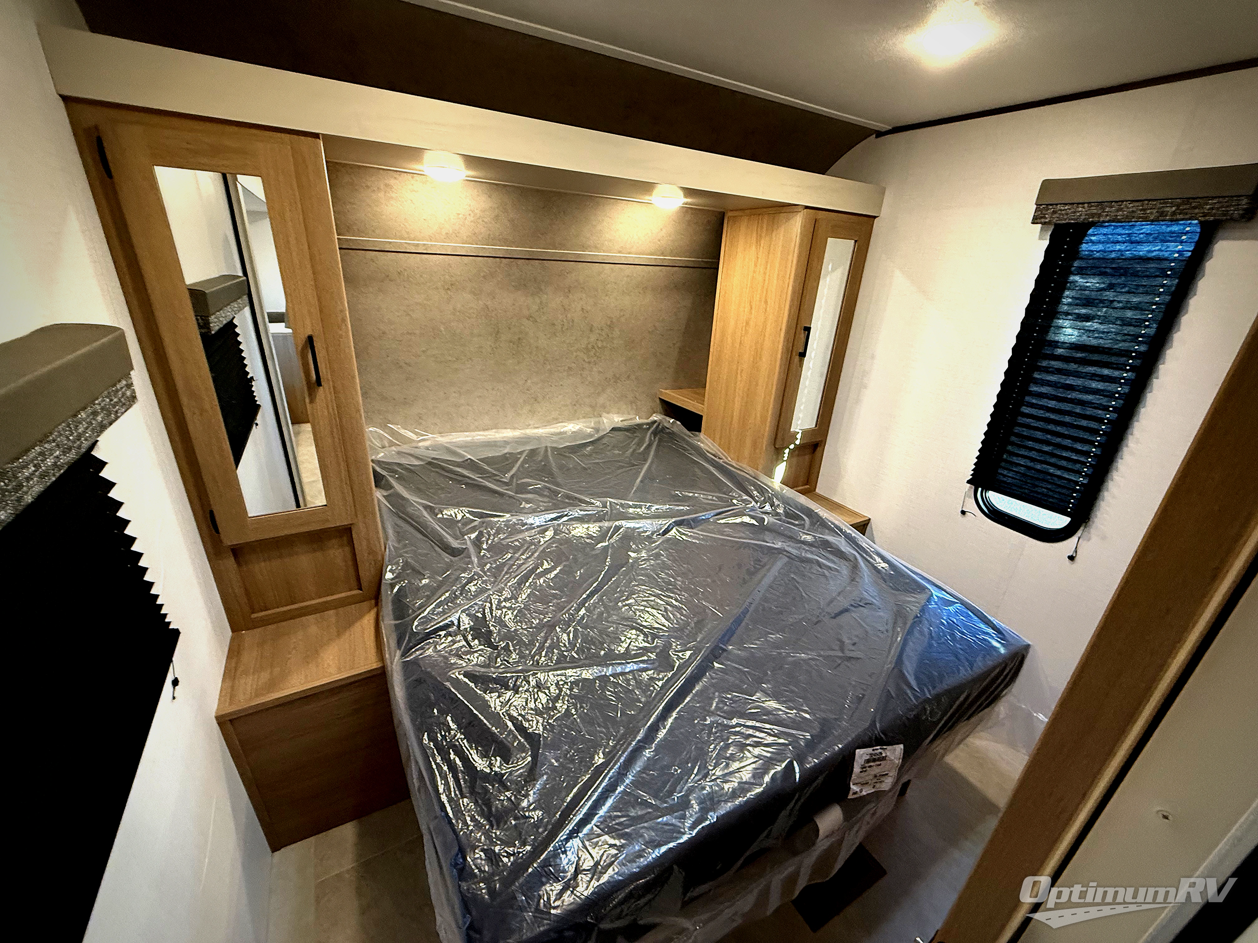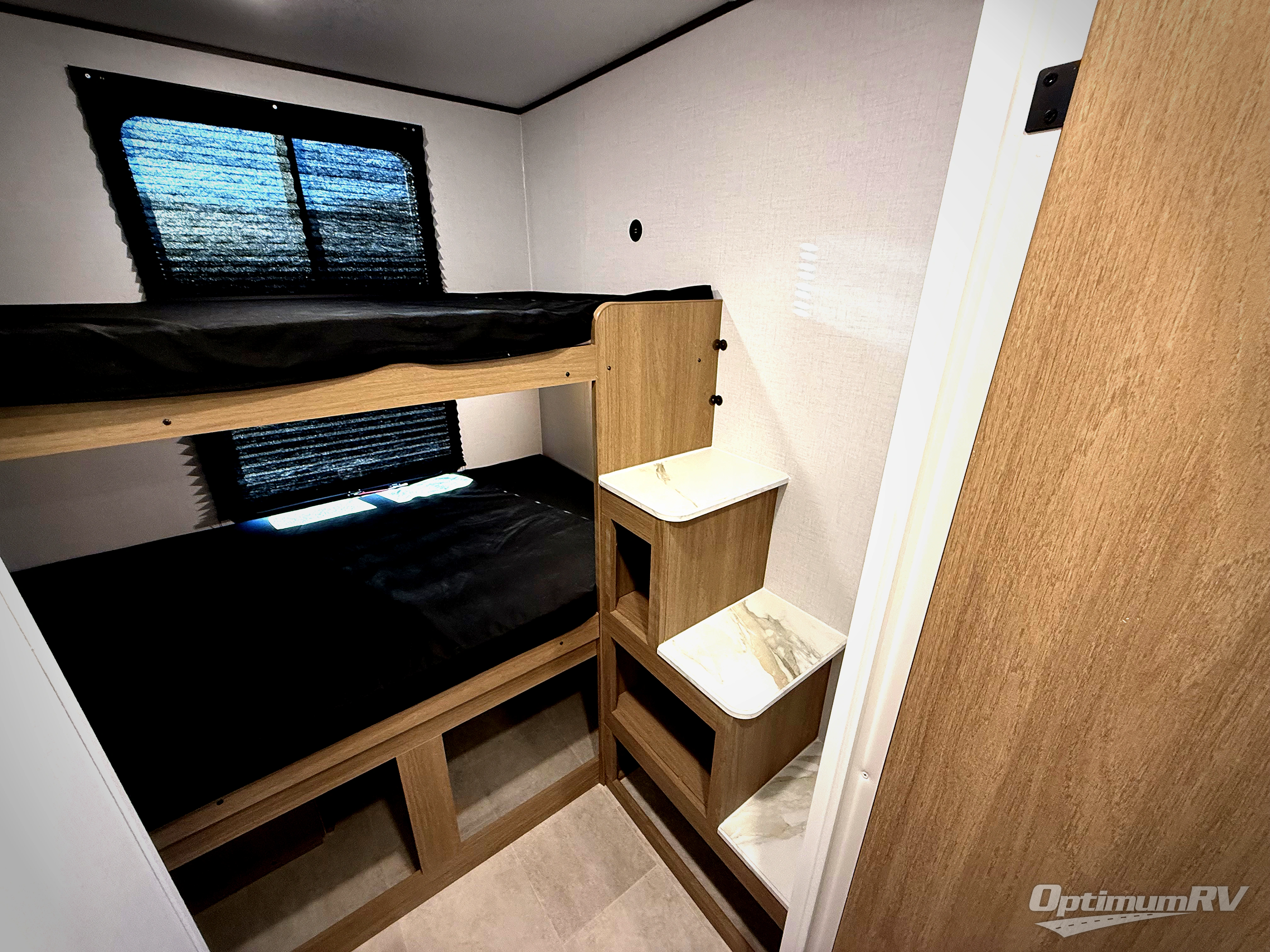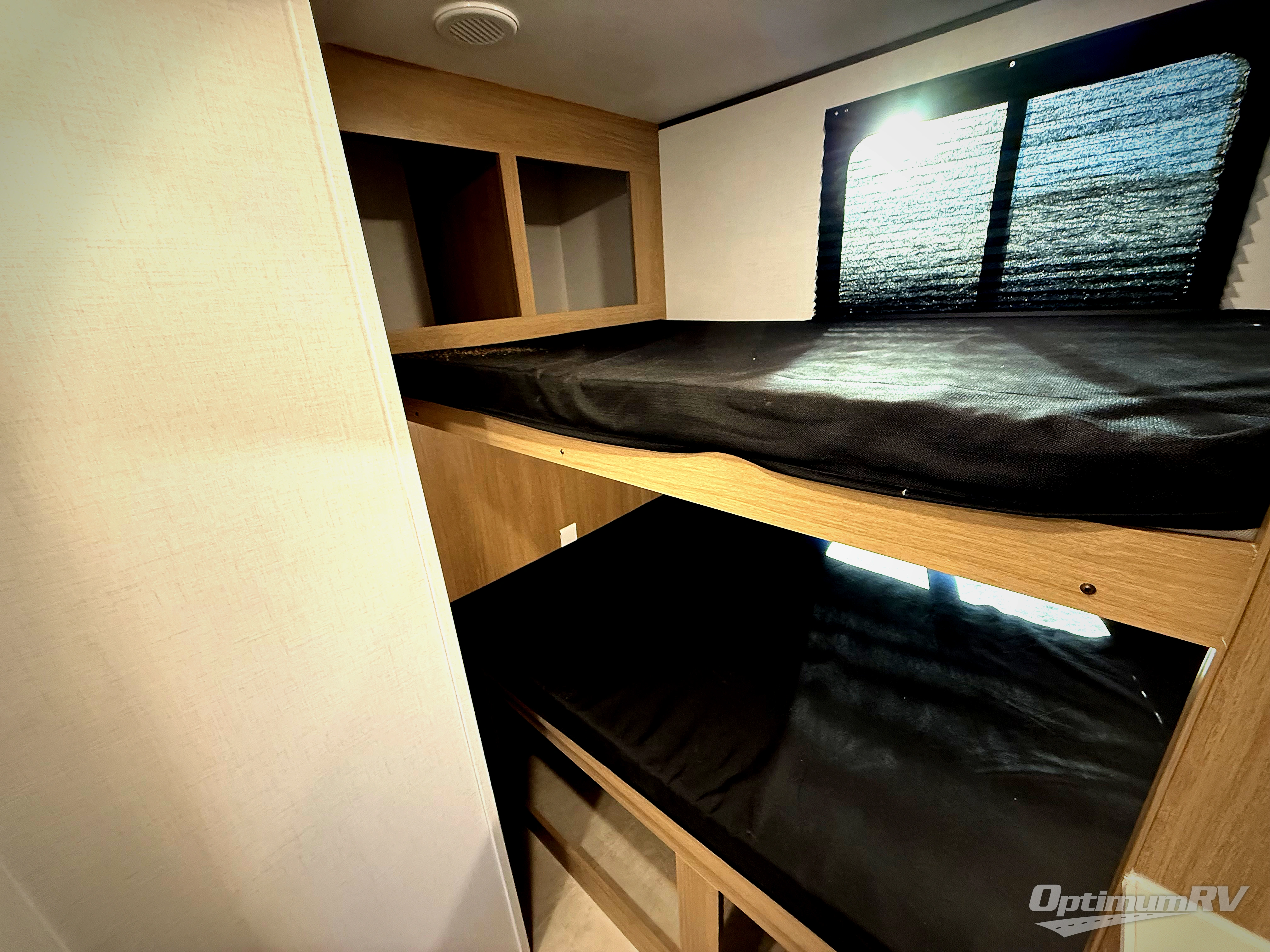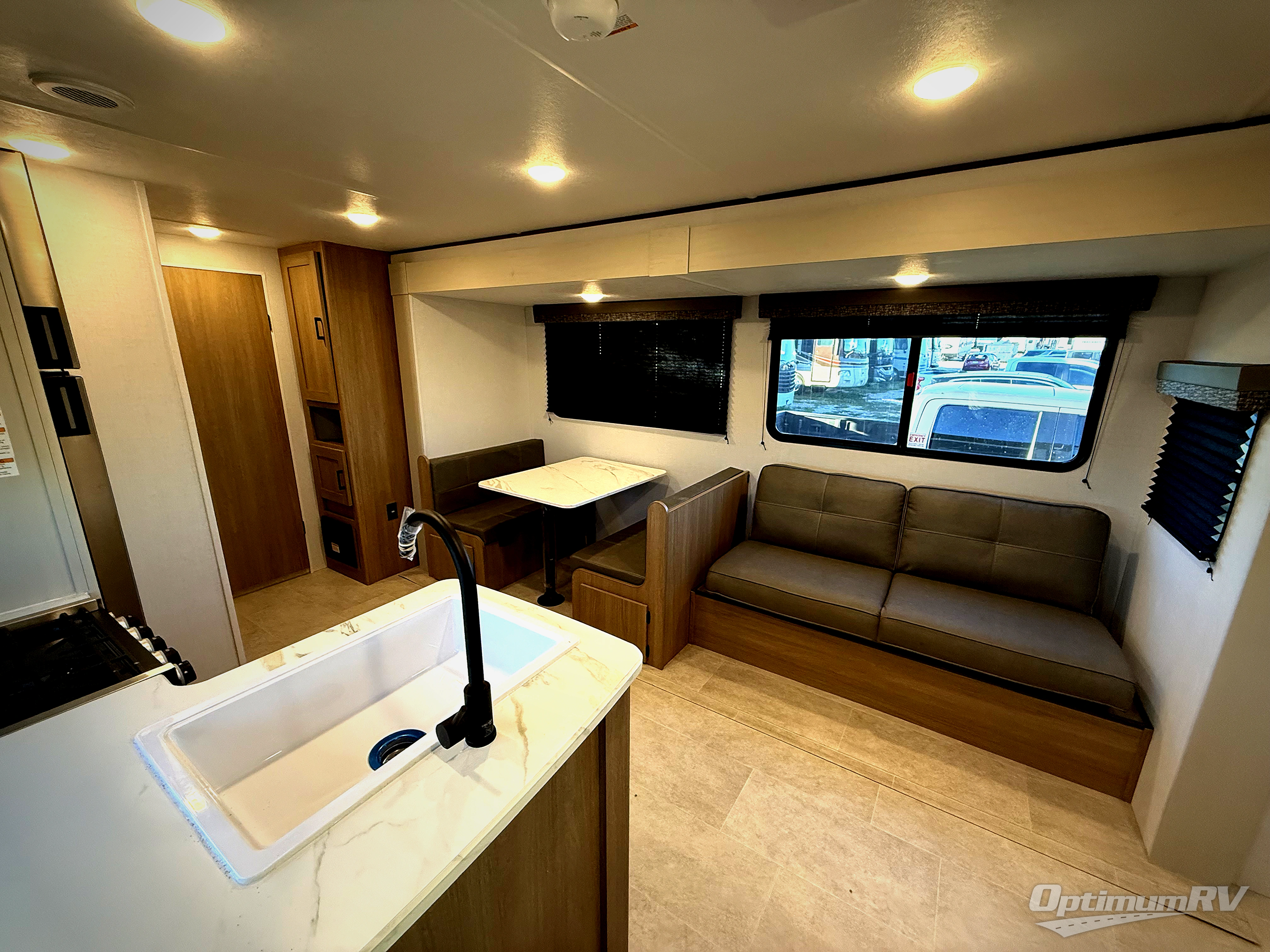 This travel trailer is one your whole crew will love! There is a rear private bunkhouse with double-size bunks for the little ones, a front private bedroom for you, and a booth dinette and jackknife sofa for even more sleeping space! The chef has their choice to cook indoors on the three burner range and microwave oven, or head outdoors to cook on the outdoor kitchen! The full bath will let everyone clean up each day, and the fireplace and large slide out will make your space feel more like home. And don't overlook the pass-through storage and 16' power awning with LED lights!