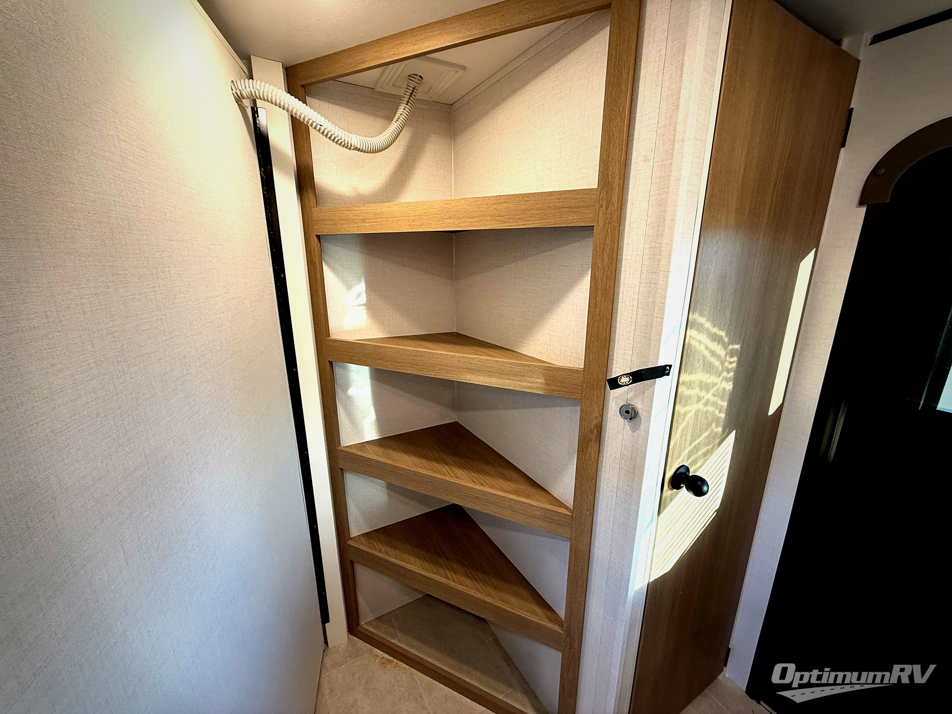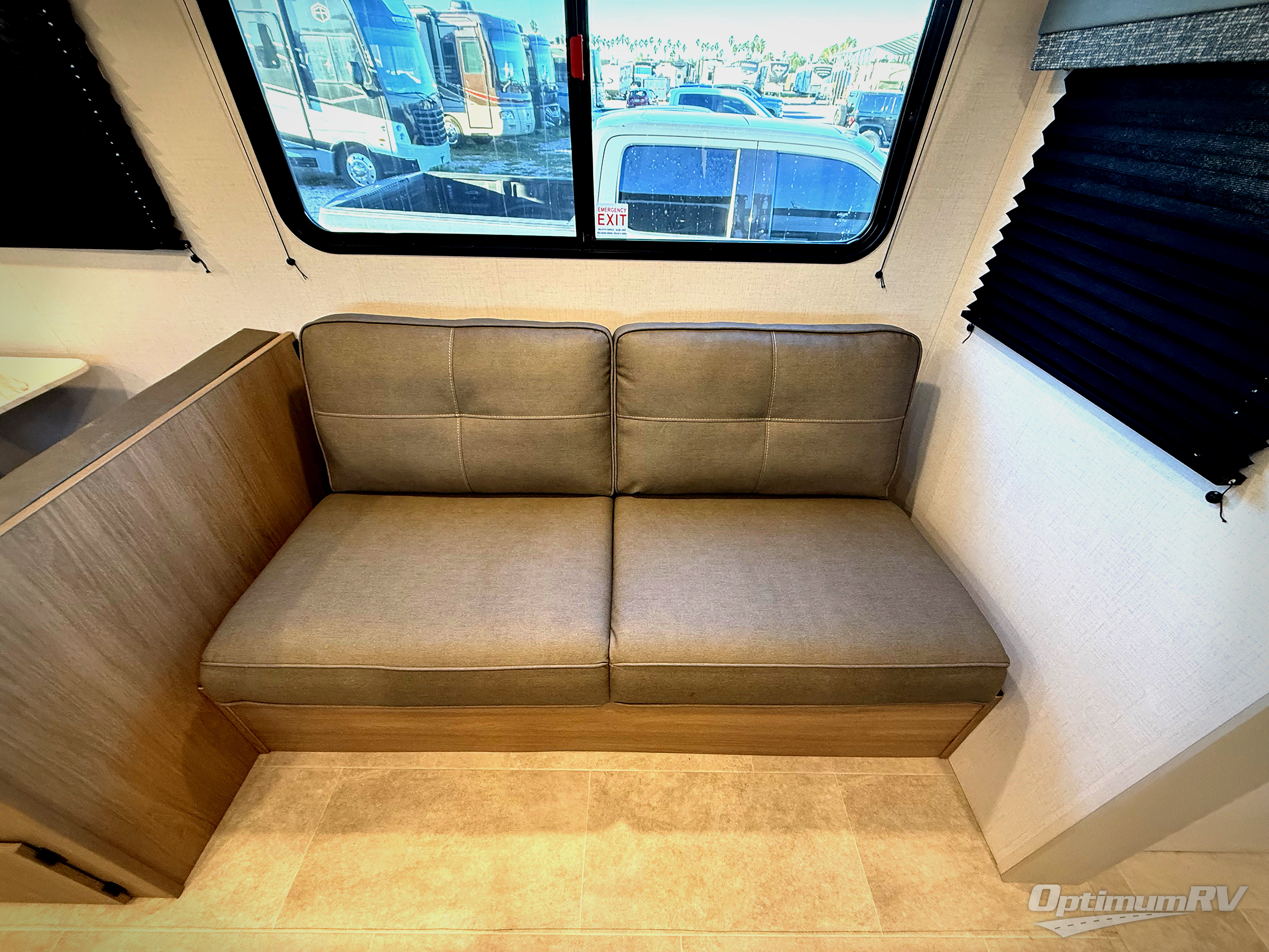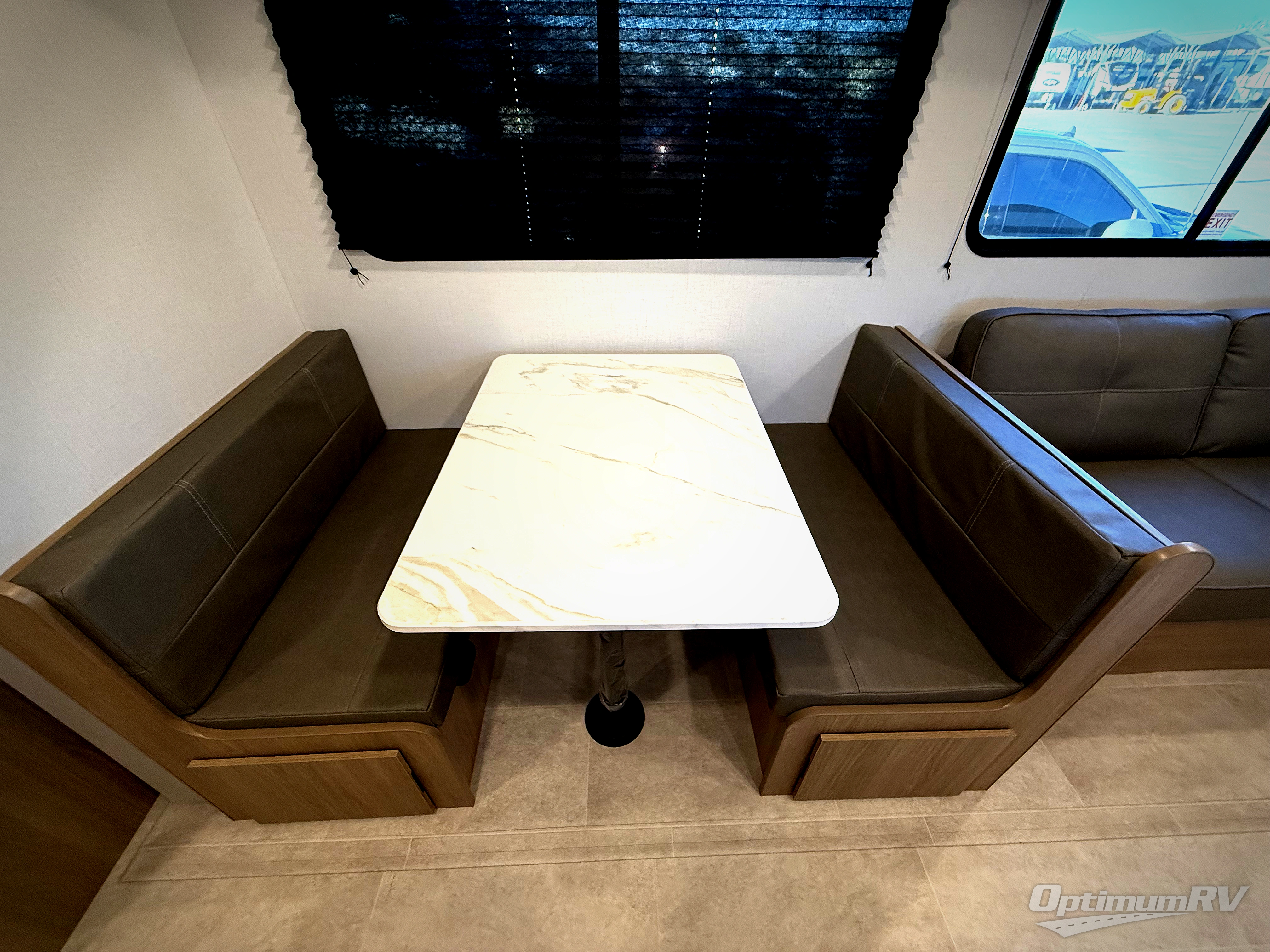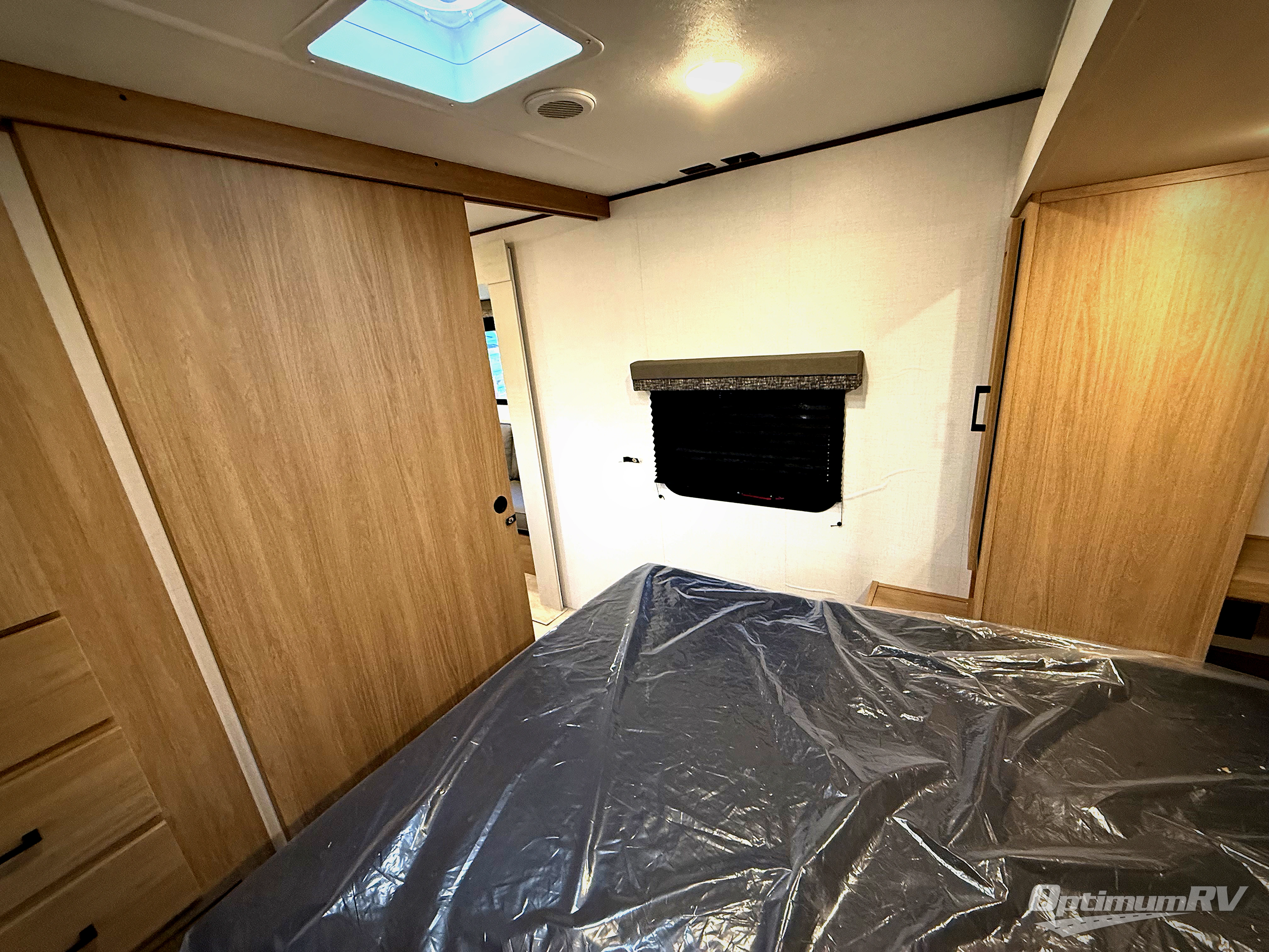 This travel trailer is one your whole crew will love! There is a rear private bunkhouse with double-size bunks for the little ones, a front private bedroom for you, and a booth dinette and jackknife sofa for even more sleeping space! The chef has their choice to cook indoors on the three burner range and microwave oven, or head outdoors to cook on the outdoor kitchen! The full bath will let everyone clean up each day, and the fireplace and large slide out will make your space feel more like home. And don't overlook the pass-through storage and 16' power awning with LED lights!