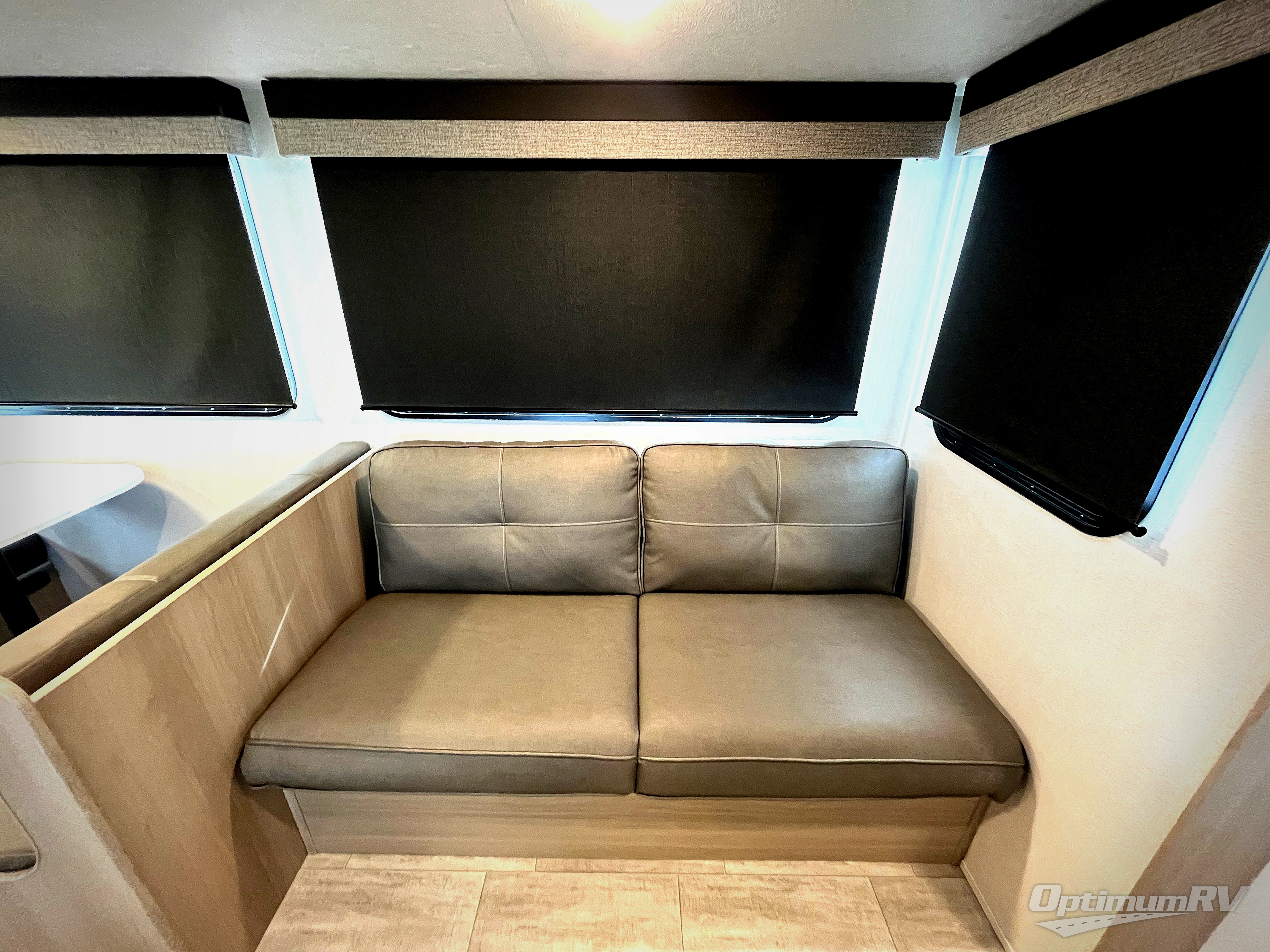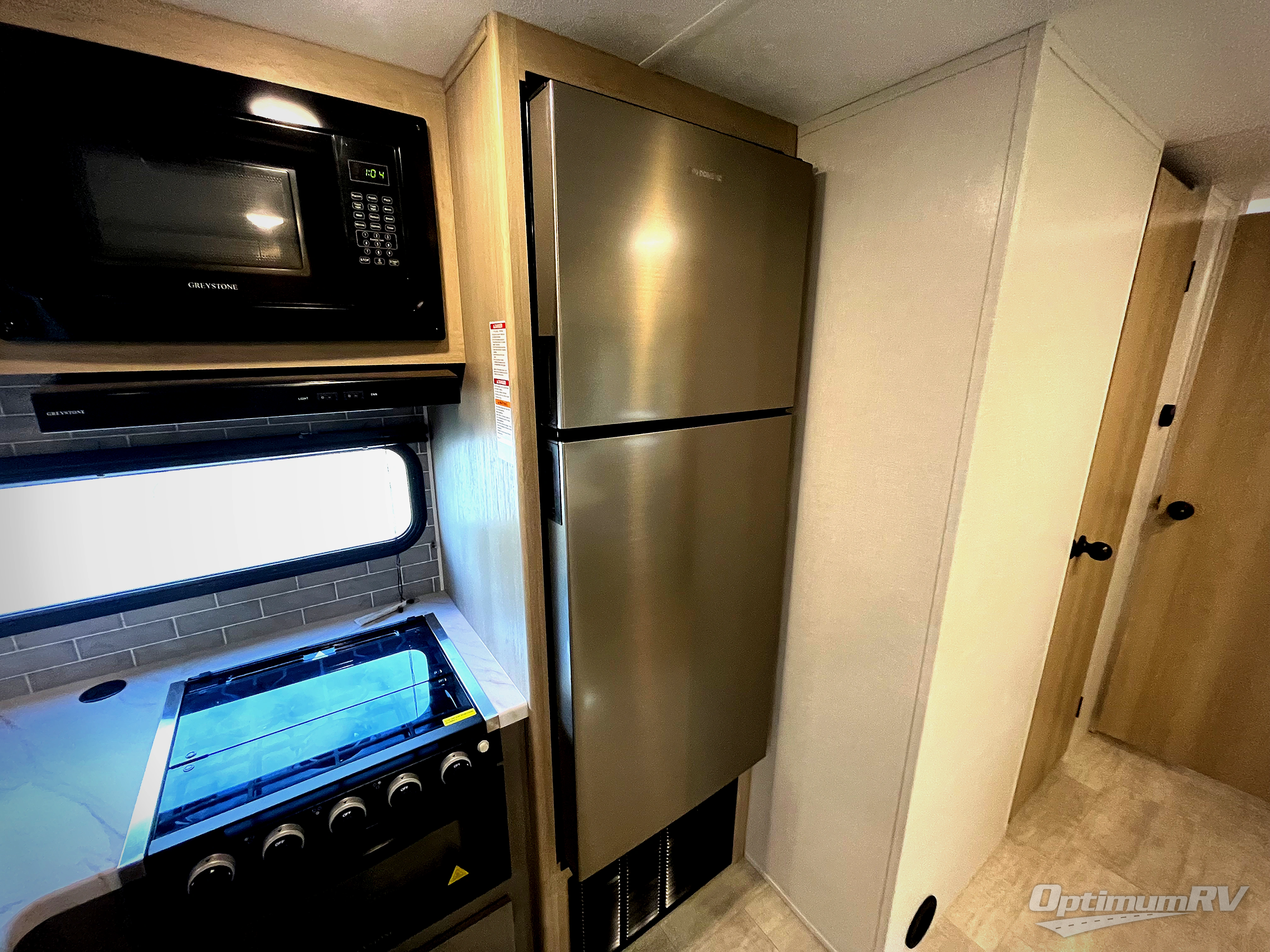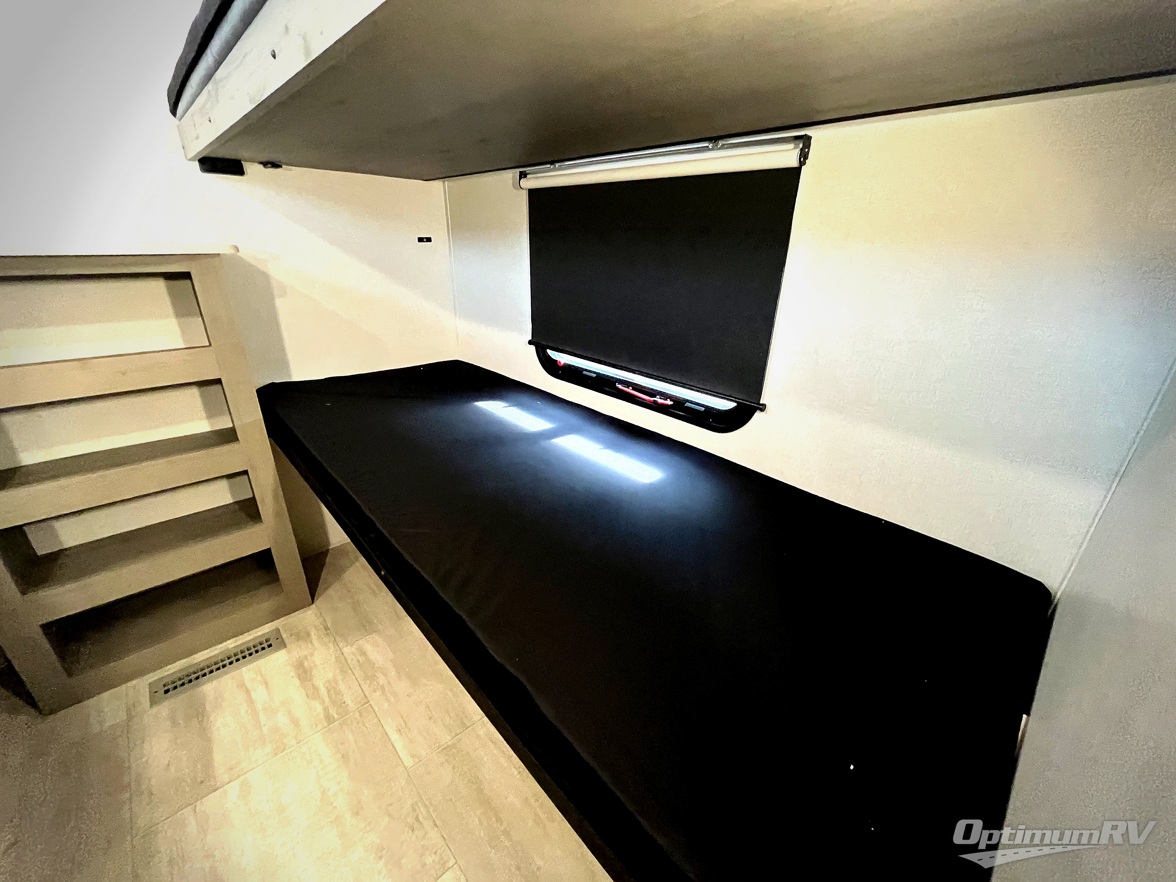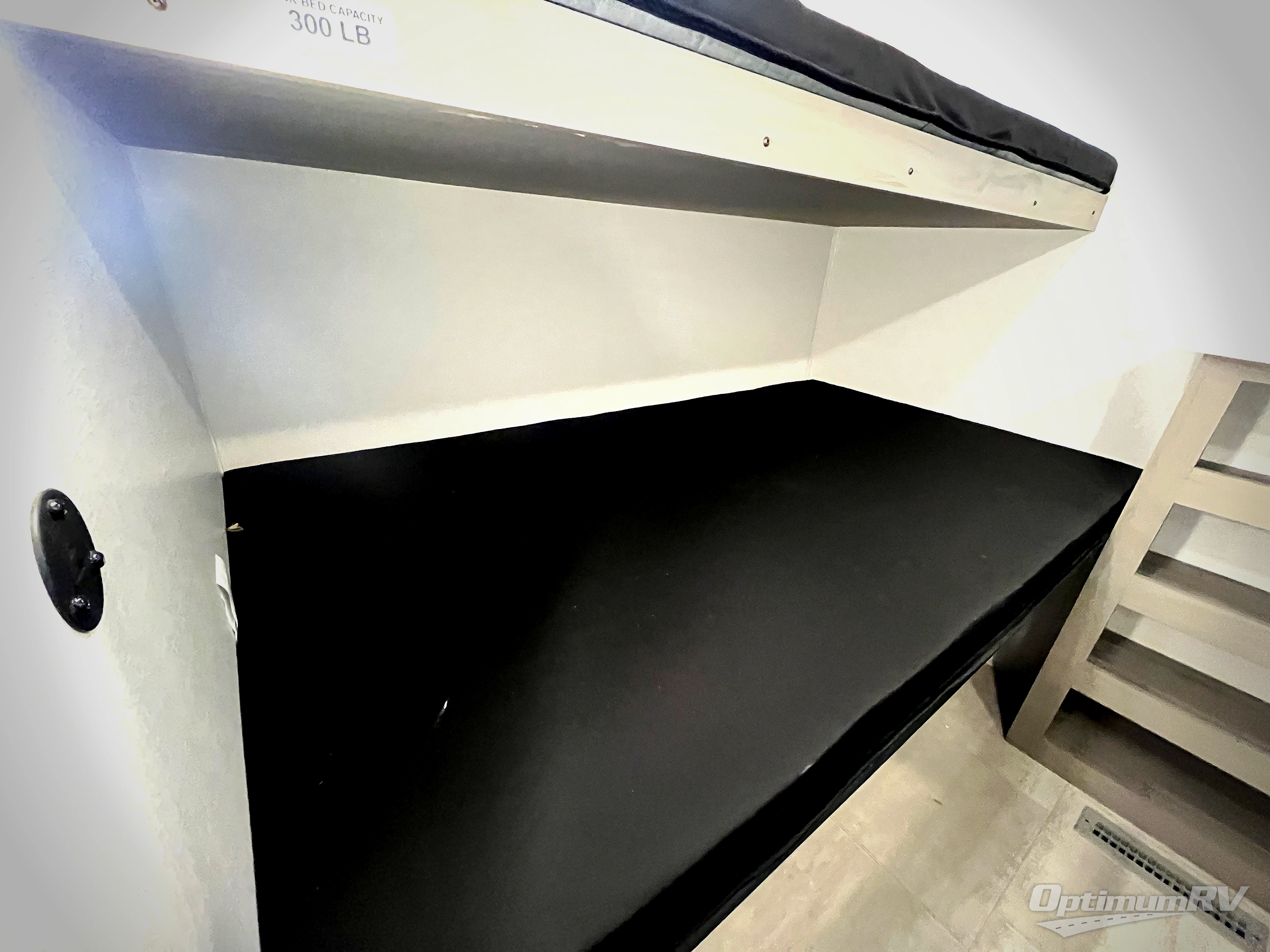 This travel trailer is perfect for weekend excursions or extended getaways at your favorite state park. You will have your own queen bed up front with storage space for your things, and the rear private bunkhouse will be perfect for guests. Here, you'll find a set of bunk beds plus a fold-up bunk over a booth dinette so there is a place to eat or play games back here. The full kitchen will let you cook meals each day, and the 10 cu. ft. refrigerator will keep your food fresh. Outside, a 14' power awning will provide some shade, and an outdoor refrigerator will keep cold drinks close by!